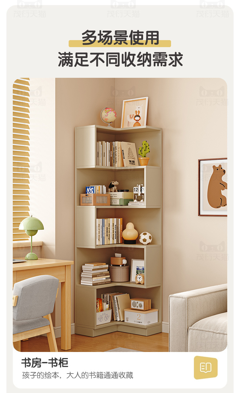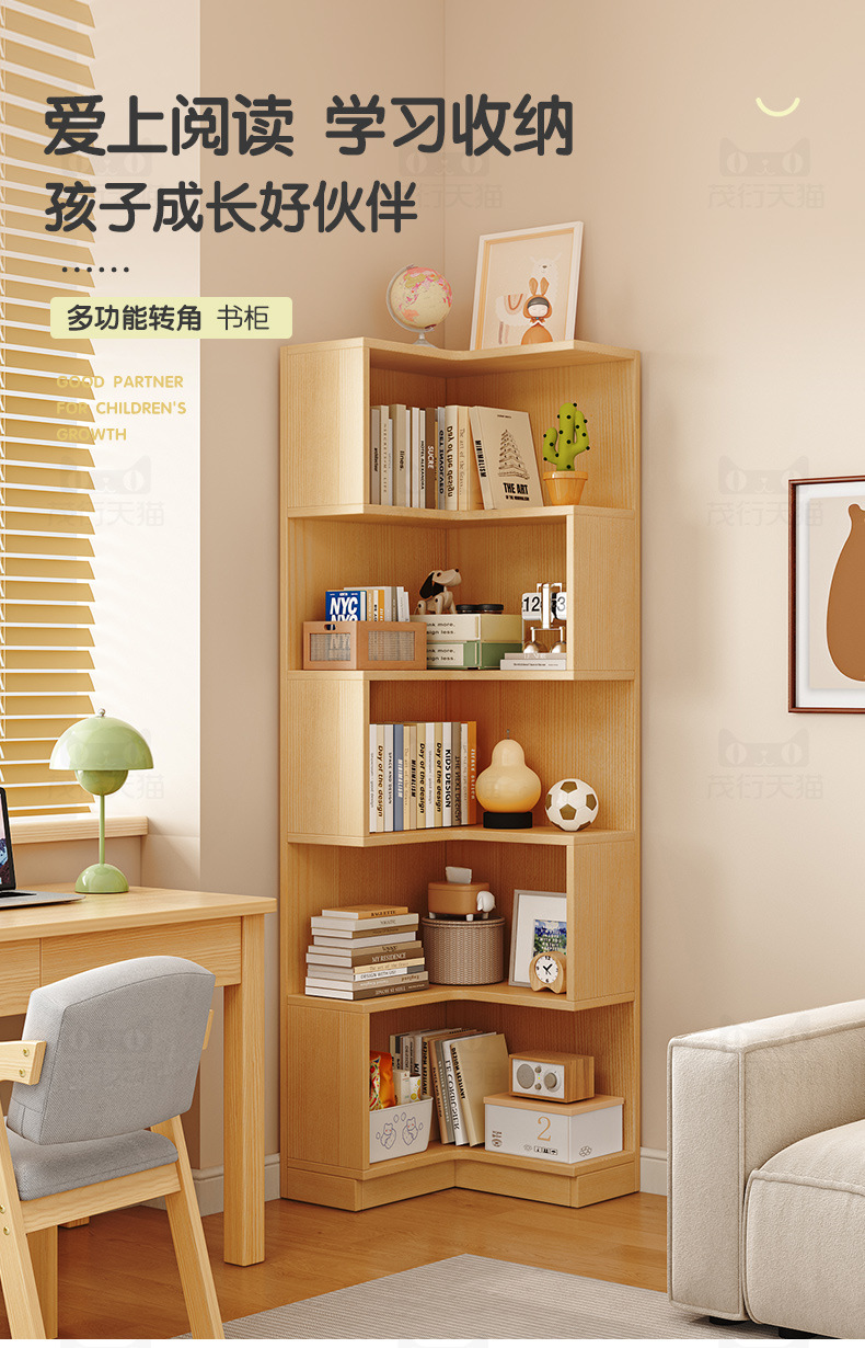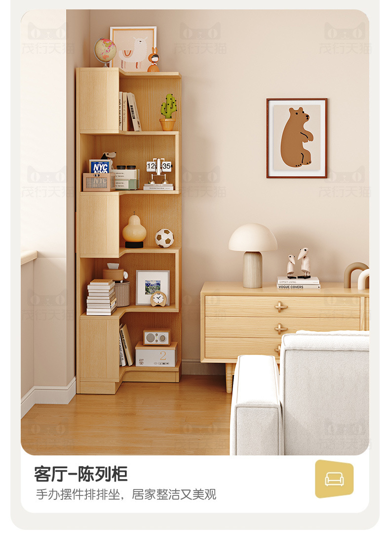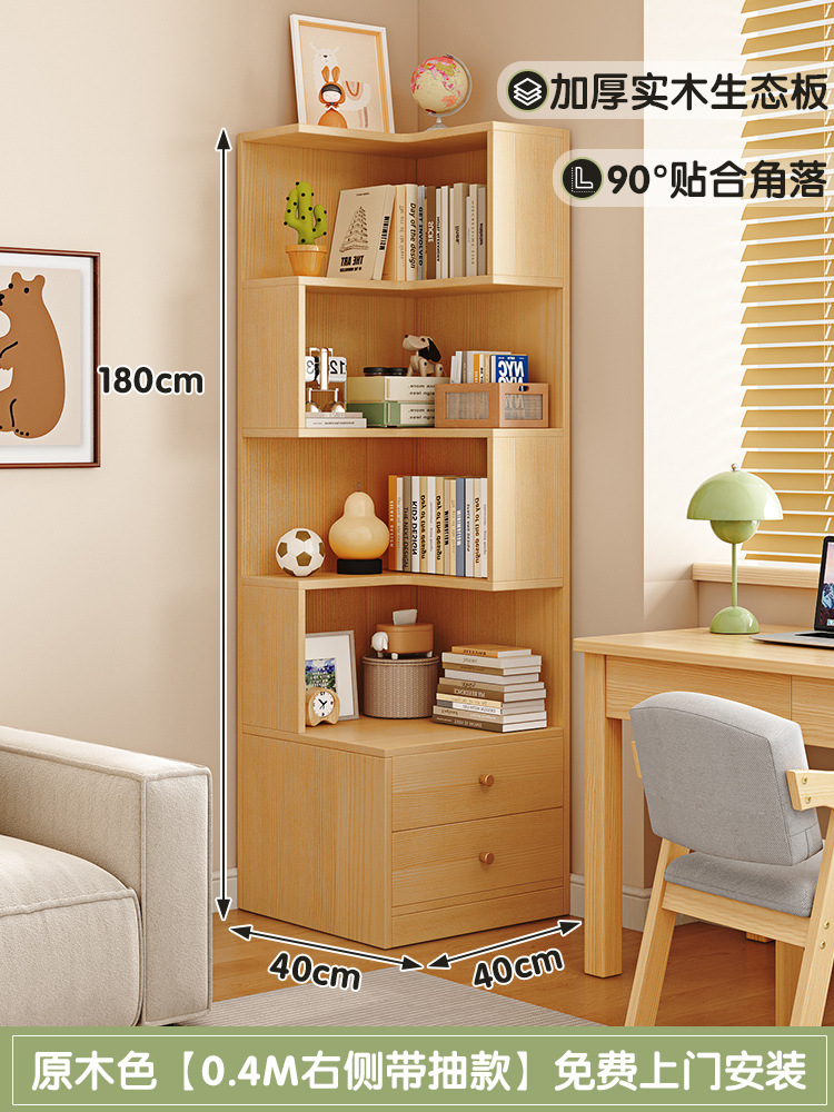 원목 코너 책장, 수납장, 일체형 책장, 바닥부터 천장까지 이어지는 다층 수납장, 코너 캐비닛, 소형 및 좁은 s^스토어 가기