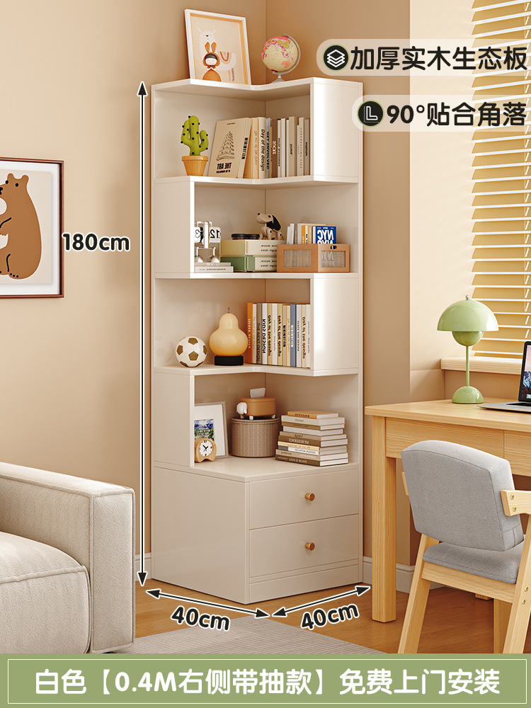 • 왼쪽에 서랍이 있는 0.4m 코너 책장 [로그 컬러]