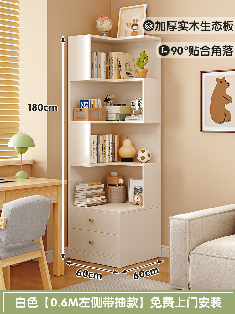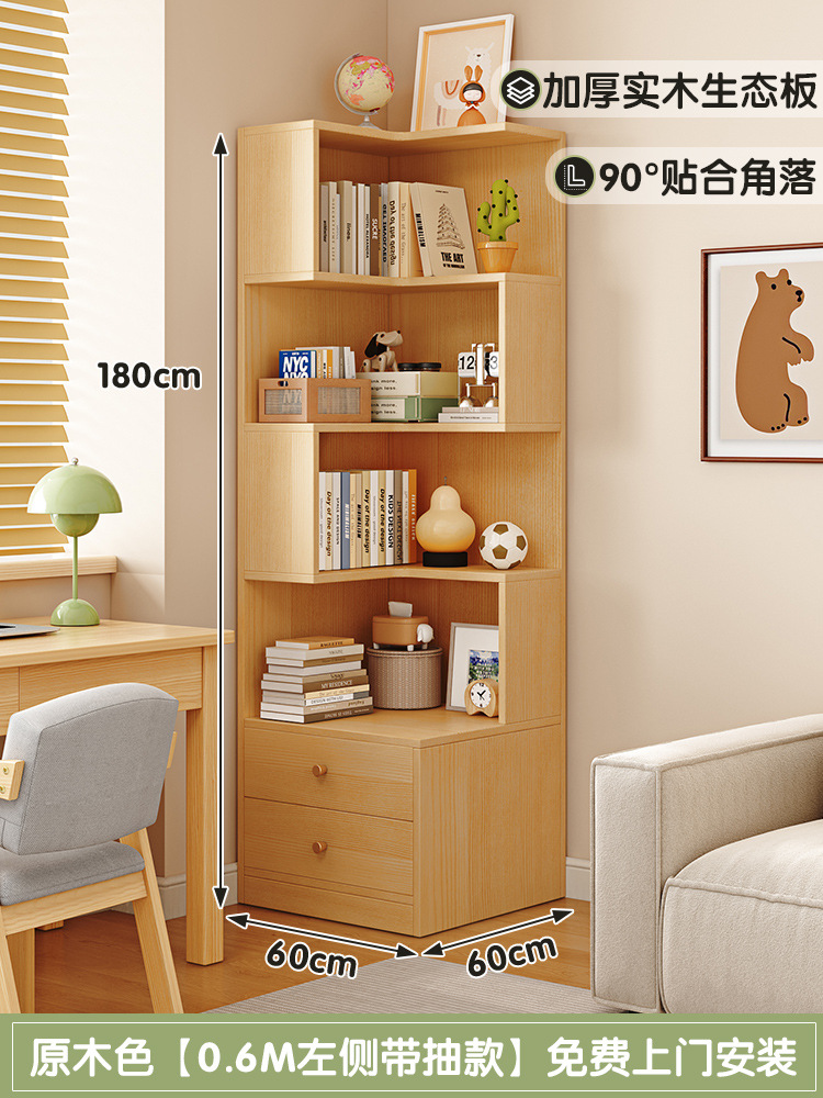 • 왼쪽에 서랍이 있는 0.6m 코너 책장 [로그 컬러]