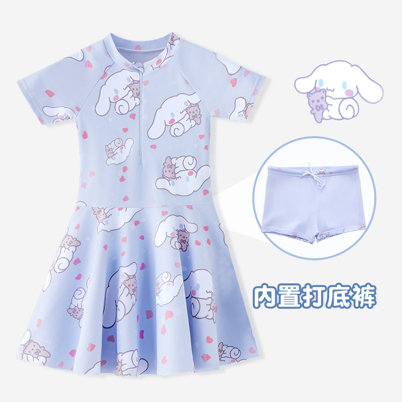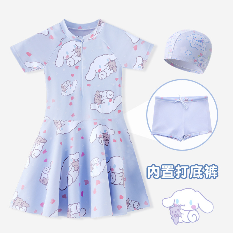 새로운 스타일 분할 소녀 만화 인쇄 수영 모자 반팔 수영복 선스크린 휴일 해변 아기 여자 수영복스토어 가기