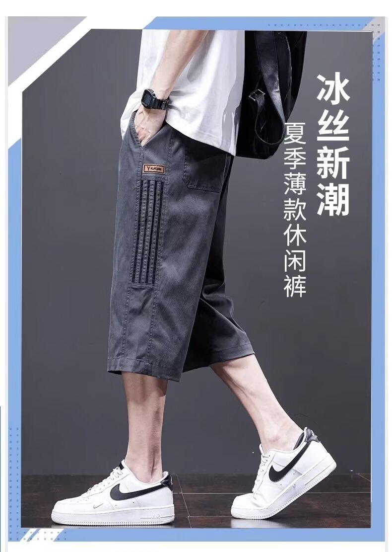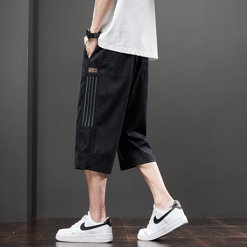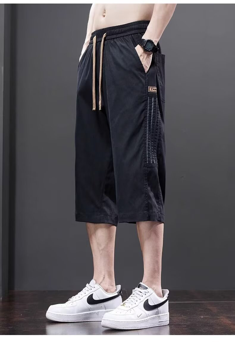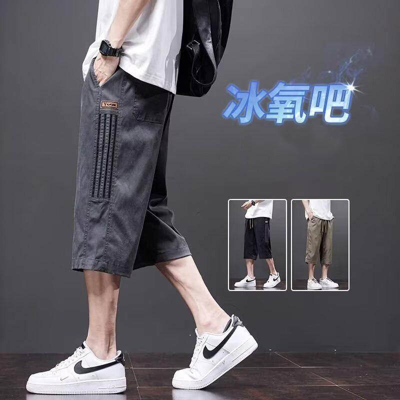 Yingxu 남성 캐주얼 바지 한국 스타일 학생 여름 얇은 크롭 바지 루즈 스트레이트 바지 스포츠 비치 롱 바지스토어 가기