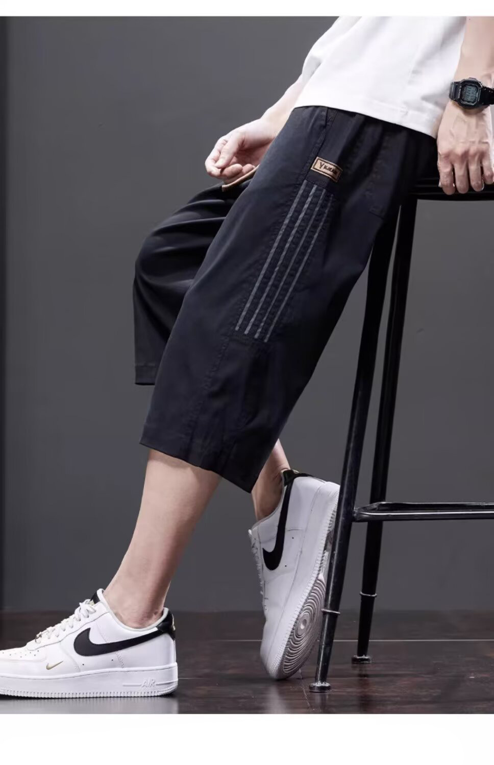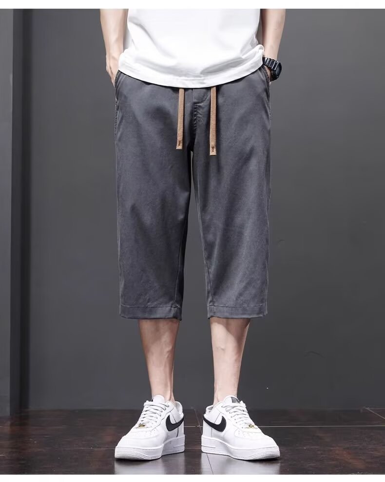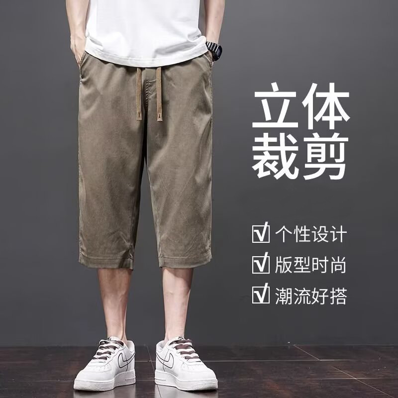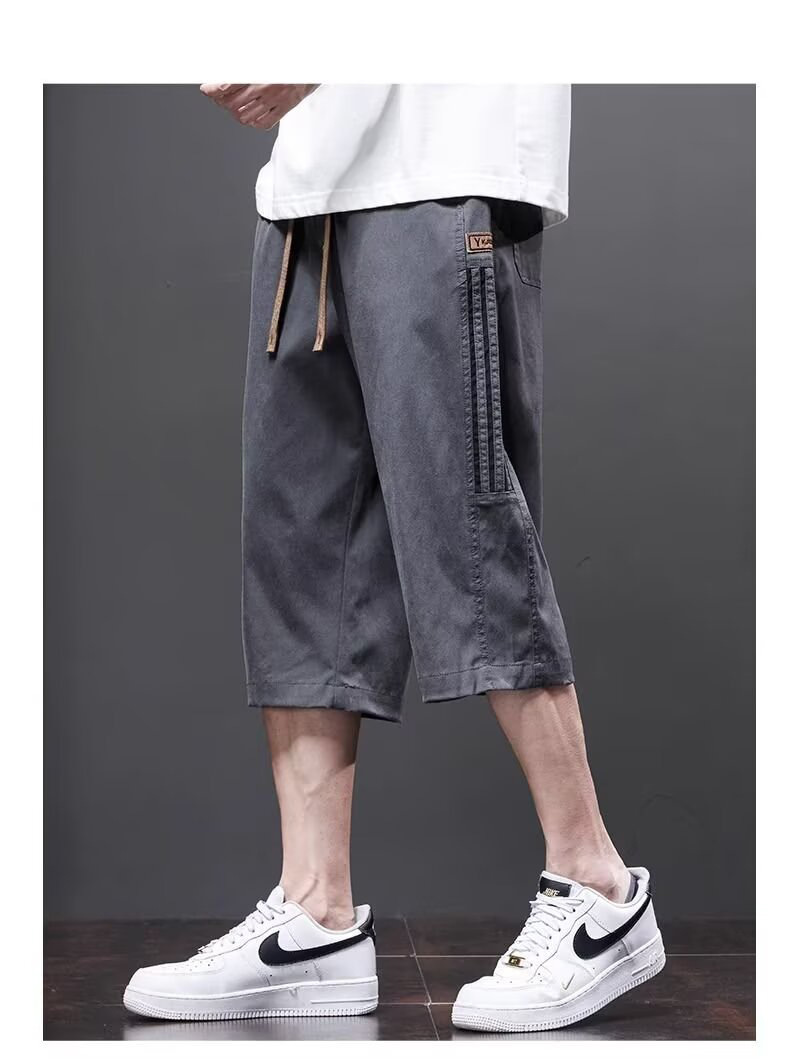 Yingxu 남성 캐주얼 바지 한국 스타일 학생 여름 얇은 크롭 바지 루즈 스트레이트 바지 스포츠 비치 롱 바지스토어 가기