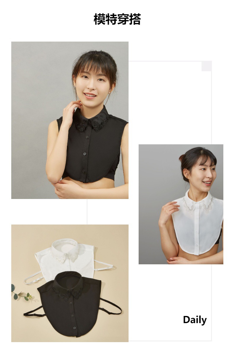 여성용 중공 비즈 쉬폰 가짜 칼라, 다용도, 연령 감소, 스웨터 셔츠, 가짜 칼라, 크로스보더 공장 직접 공급스토어 가기