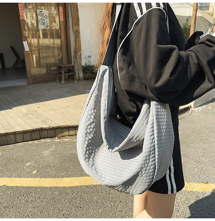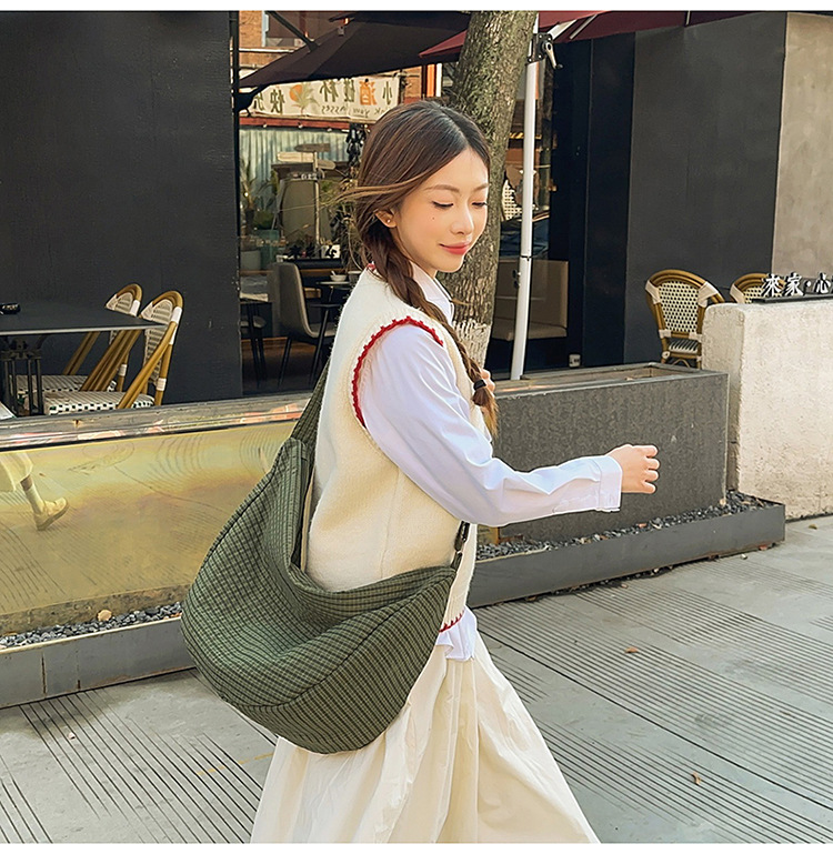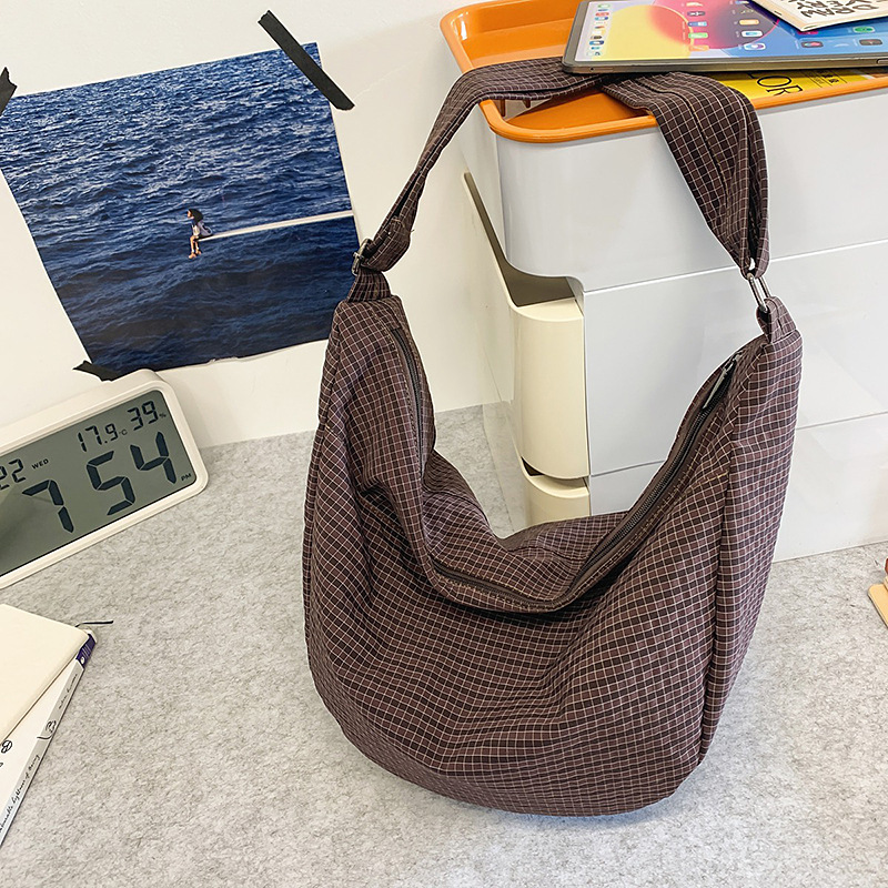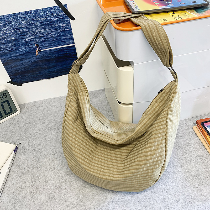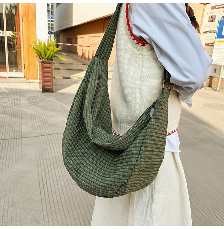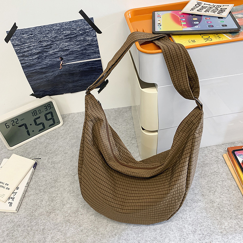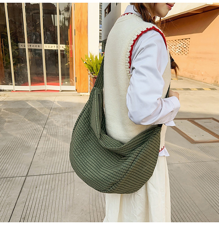 일본 복고풍 격자 무늬 만두 가방 2025 봄과 여름 대용량 게으른 스타일 가방 여성을위한 패션 숄더 백 크로스 바디 백스토어 가기