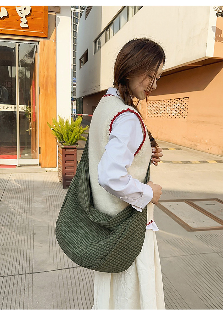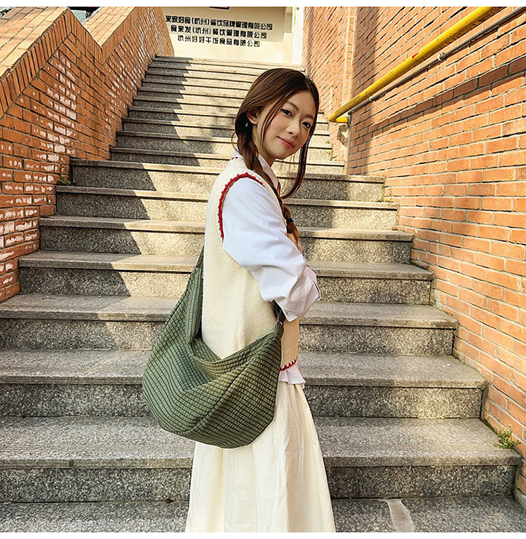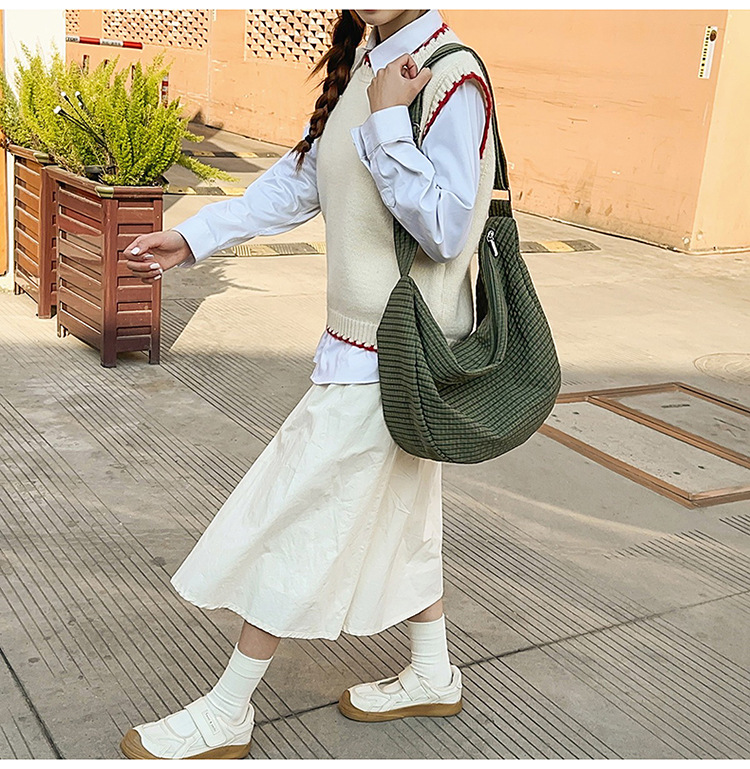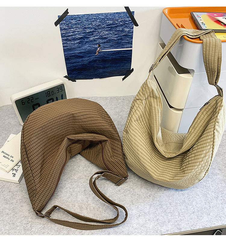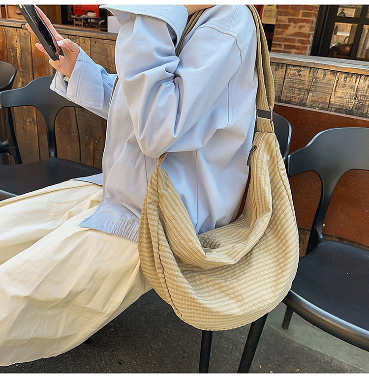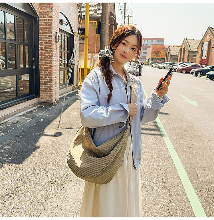 일본 복고풍 격자 무늬 만두 가방 2025 봄과 여름 대용량 게으른 스타일 가방 여성을위한 패션 숄더 백 크로스 바디 백스토어 가기