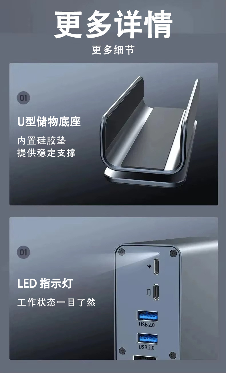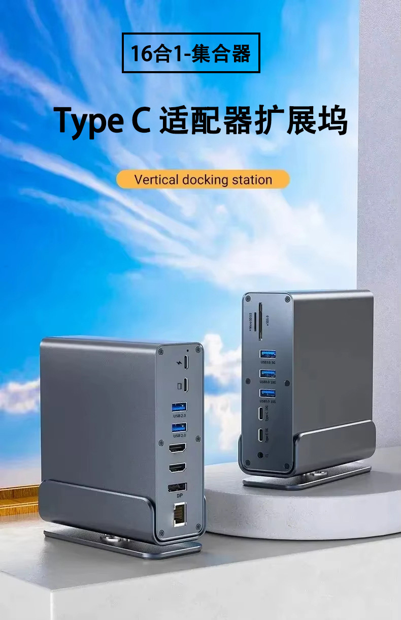 Type-C 도킹 스테이션 16-in -1 호환 Thunderbolt 4 기가비트 포트 데스크탑 수직 USB 멀티 인터페이스 스플리터