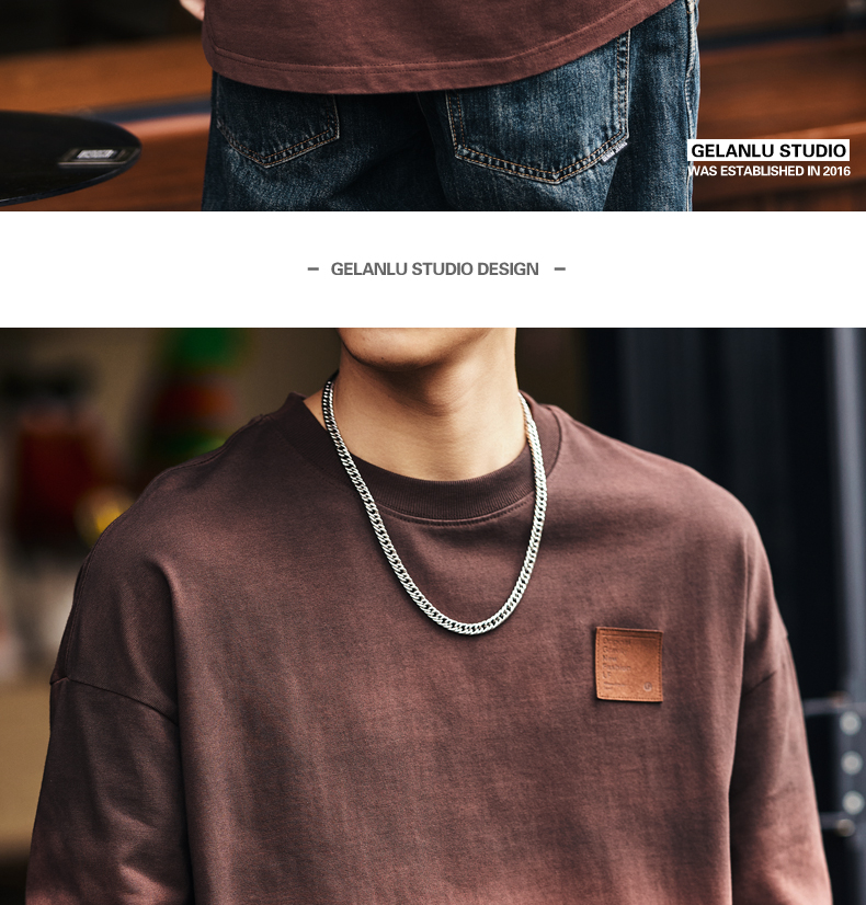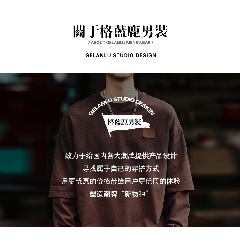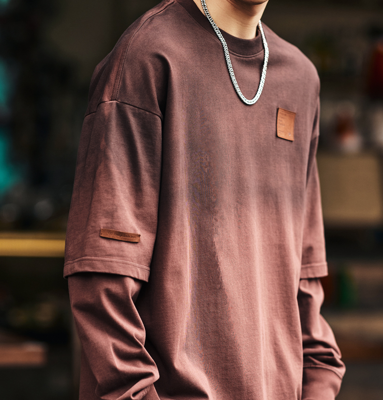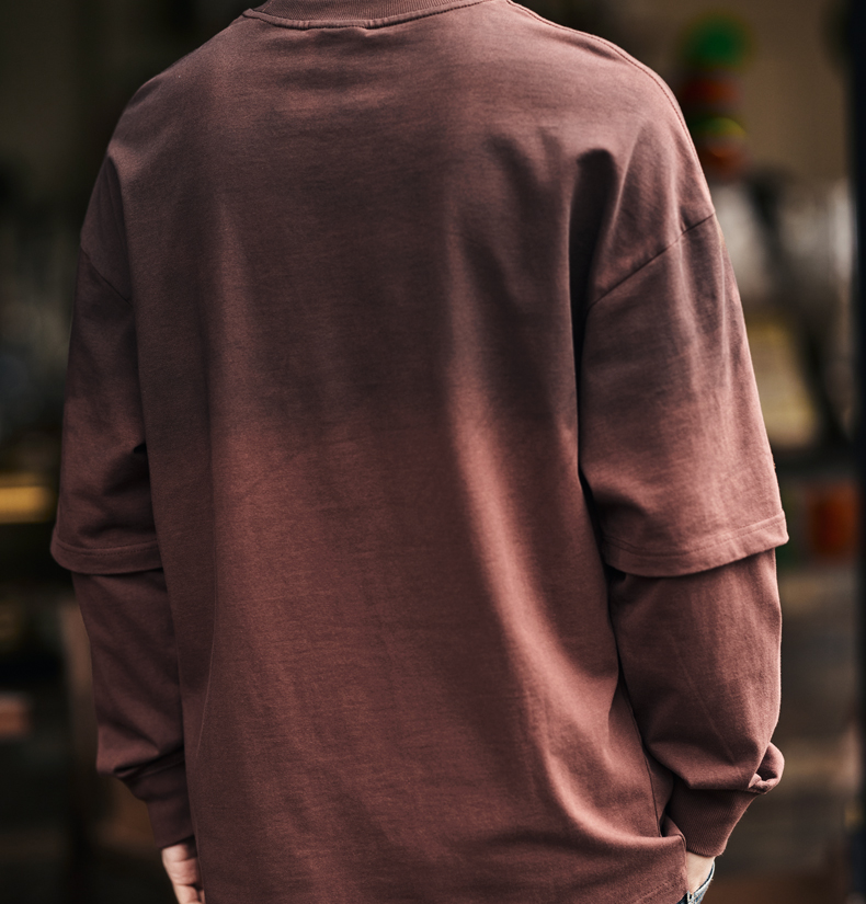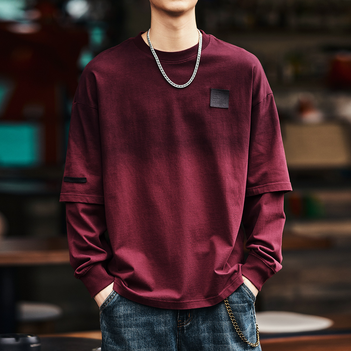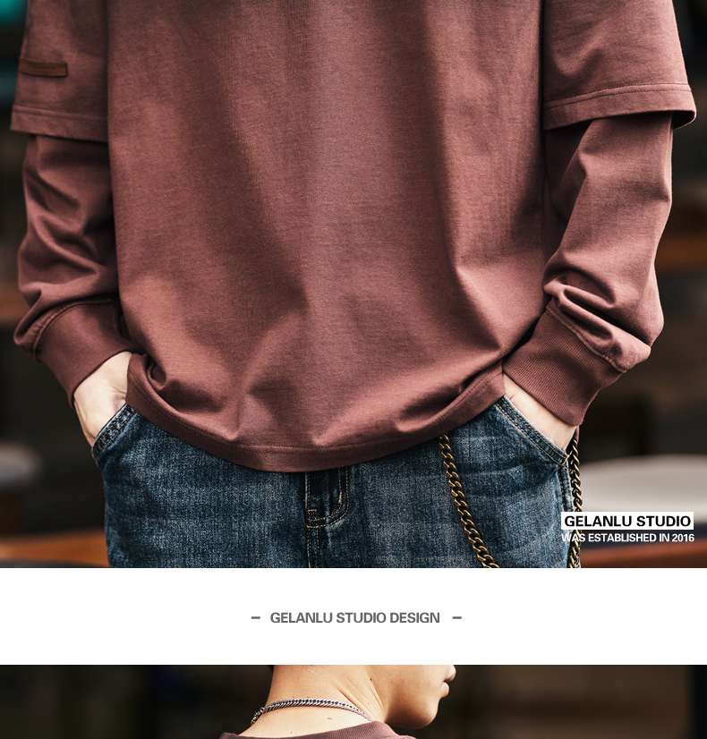 Gelan Deer 빈티지 그라디언트 와시 가짜 투피스 긴팔 티셔츠 남성용 봄과 가을 트렌디 브랜드 루즈 캐주얼 티셔츠