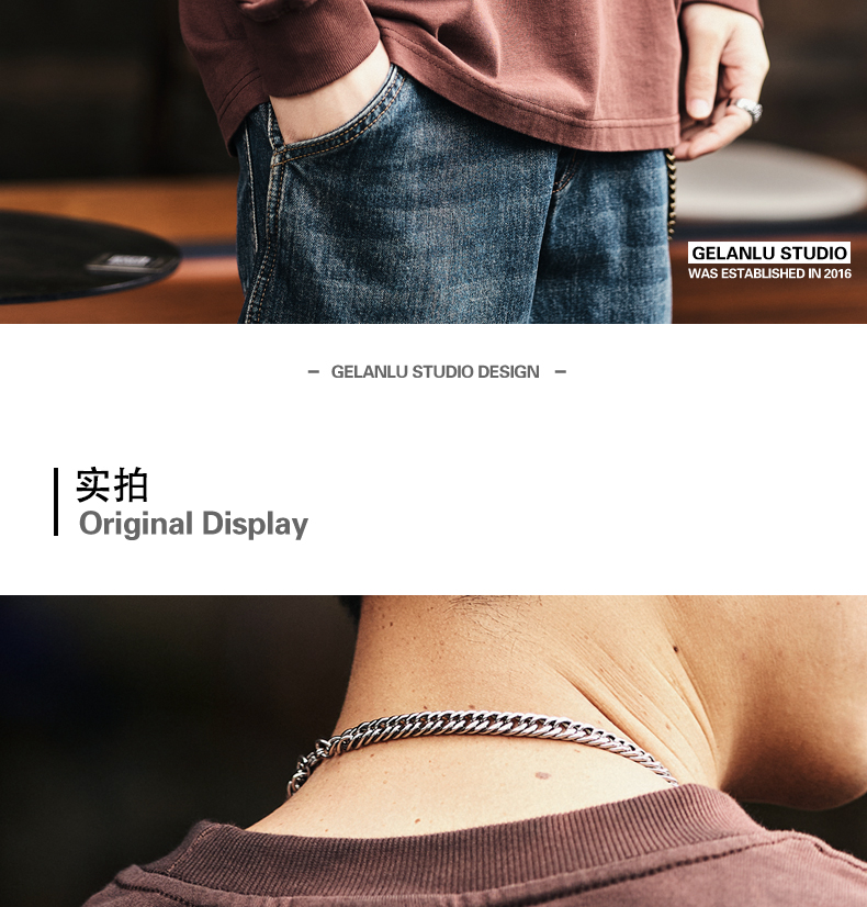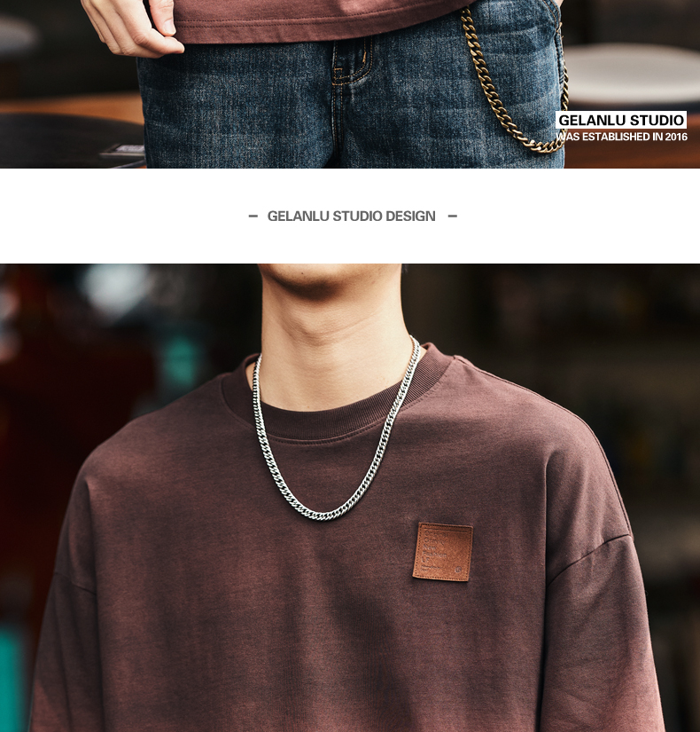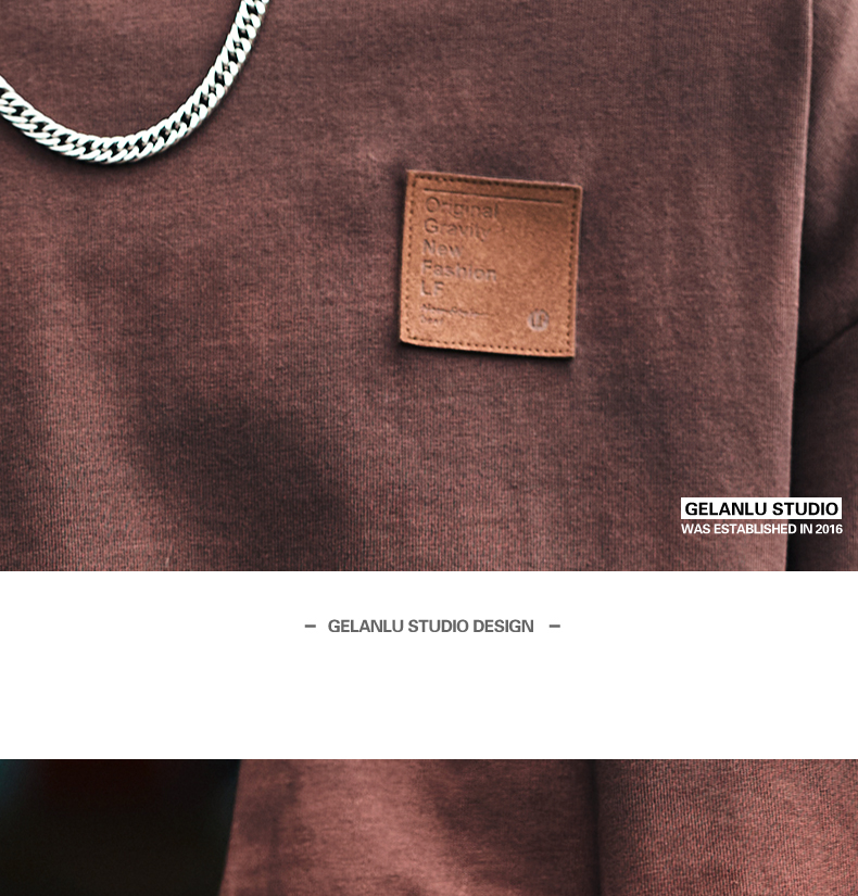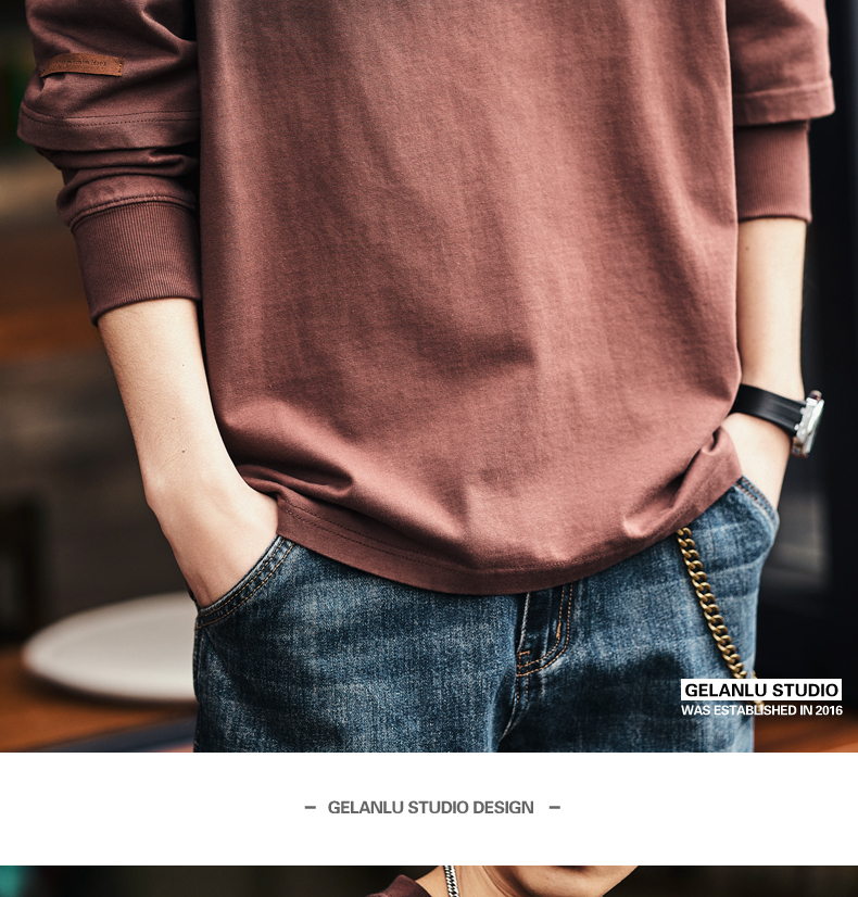 Gelan Deer 빈티지 그라디언트 와시 가짜 투피스 긴팔 티셔츠 남성용 봄과 가을 트렌디 브랜드 루즈 캐주얼 티셔츠스토어 가기