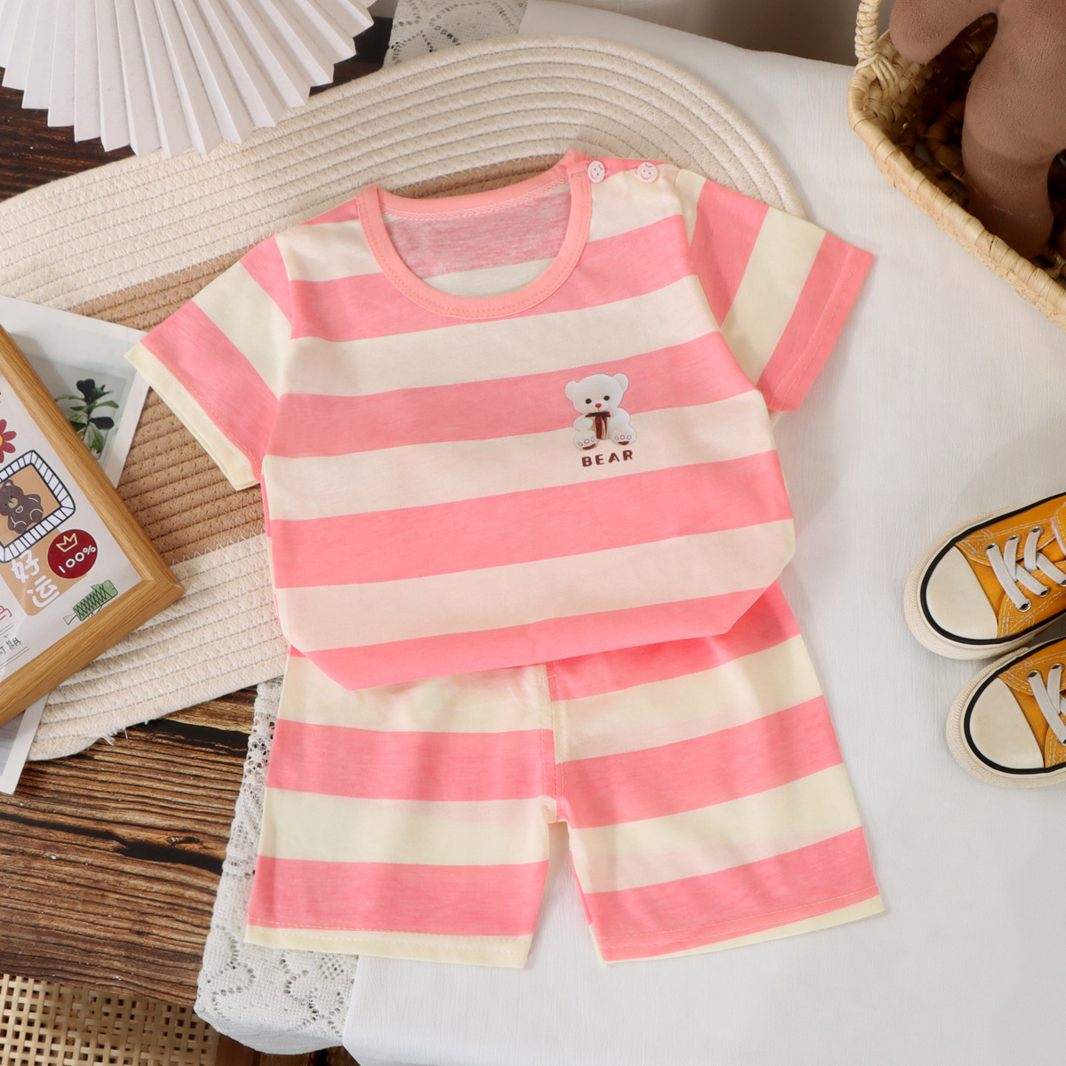 2025 새로운 어린이 짧은 소매 세트 면화 소년 아동복 소녀 반바지 스포츠 홈 의류 세트 여름 땀 천