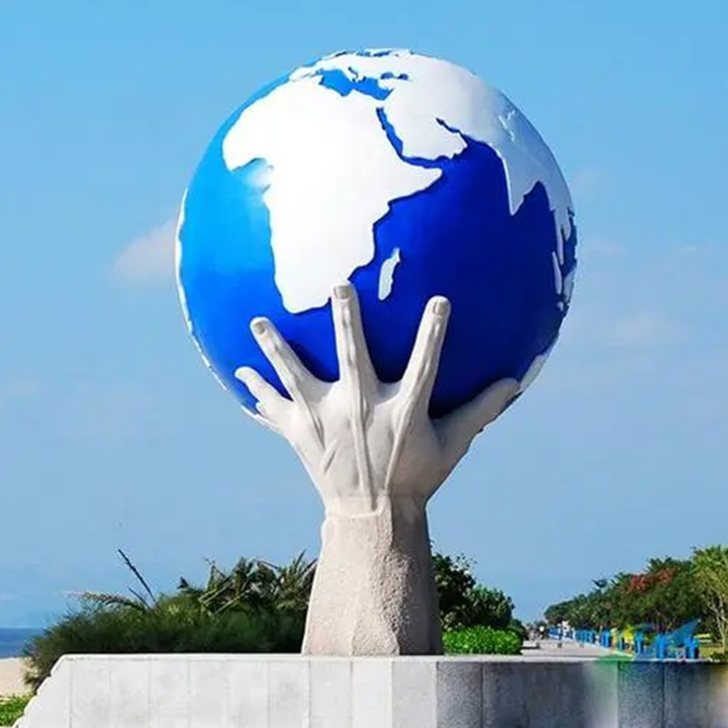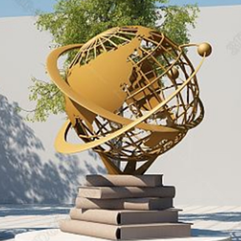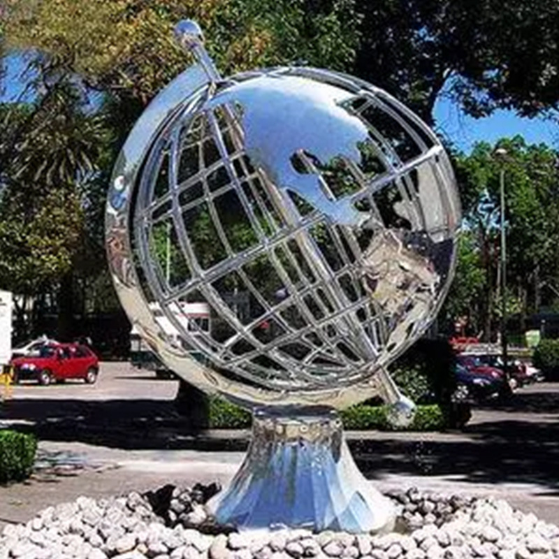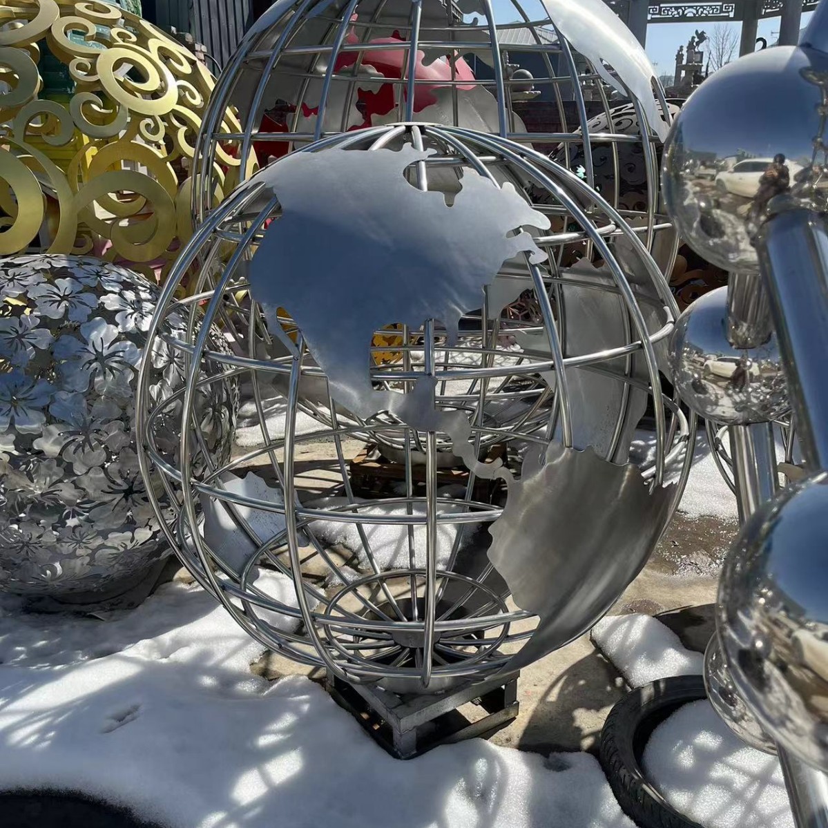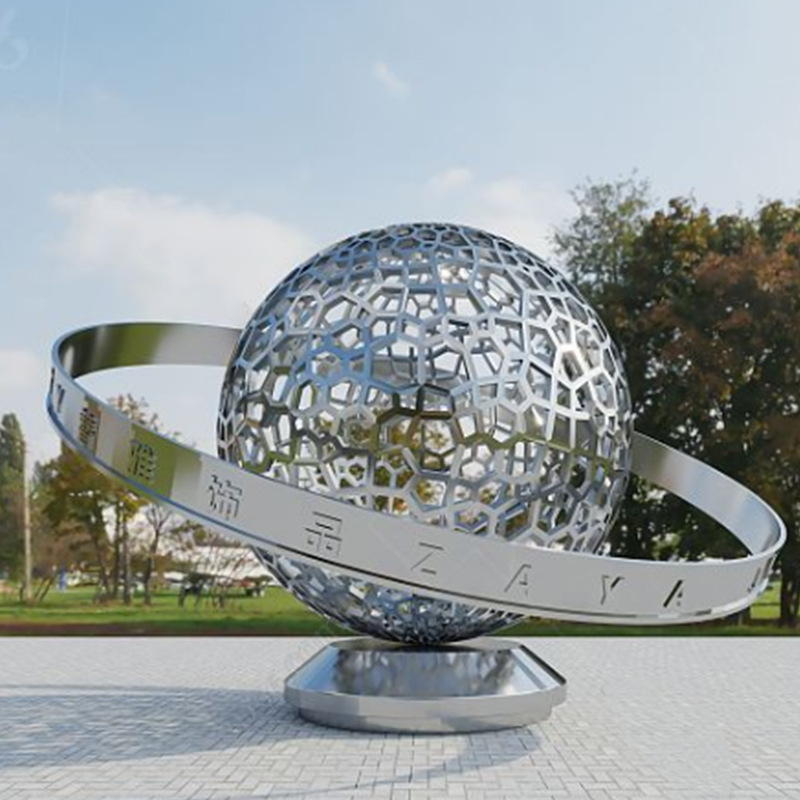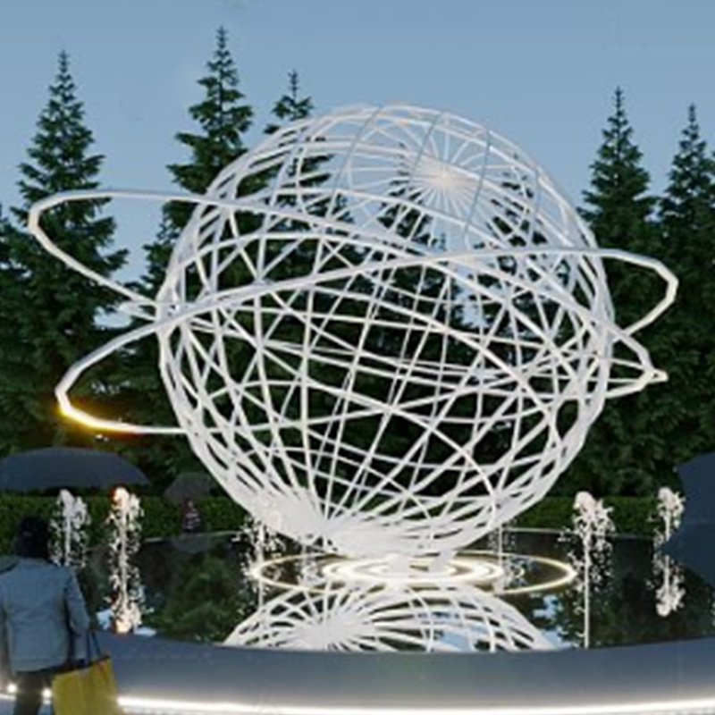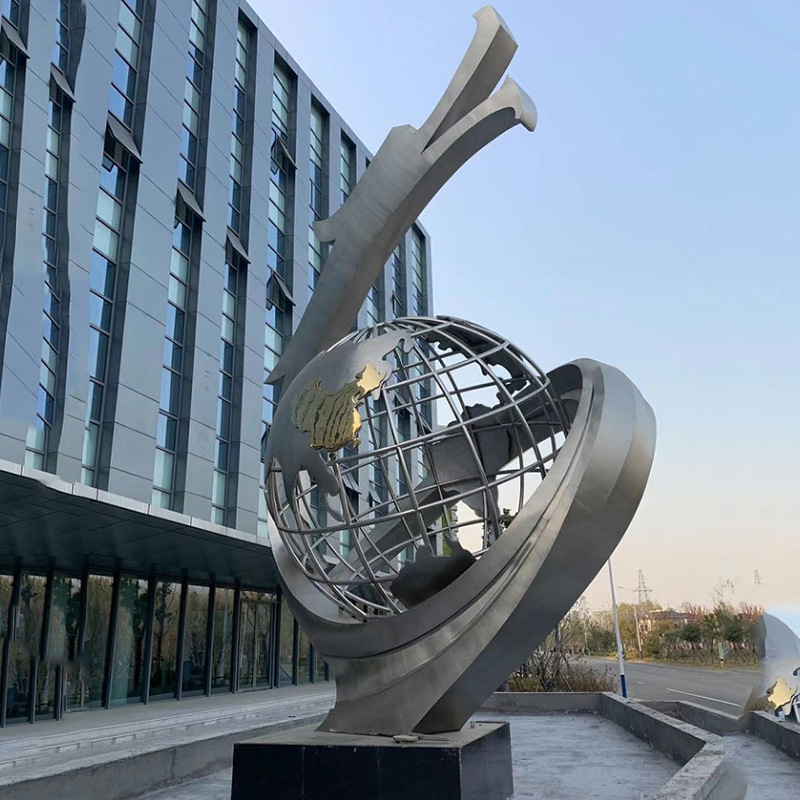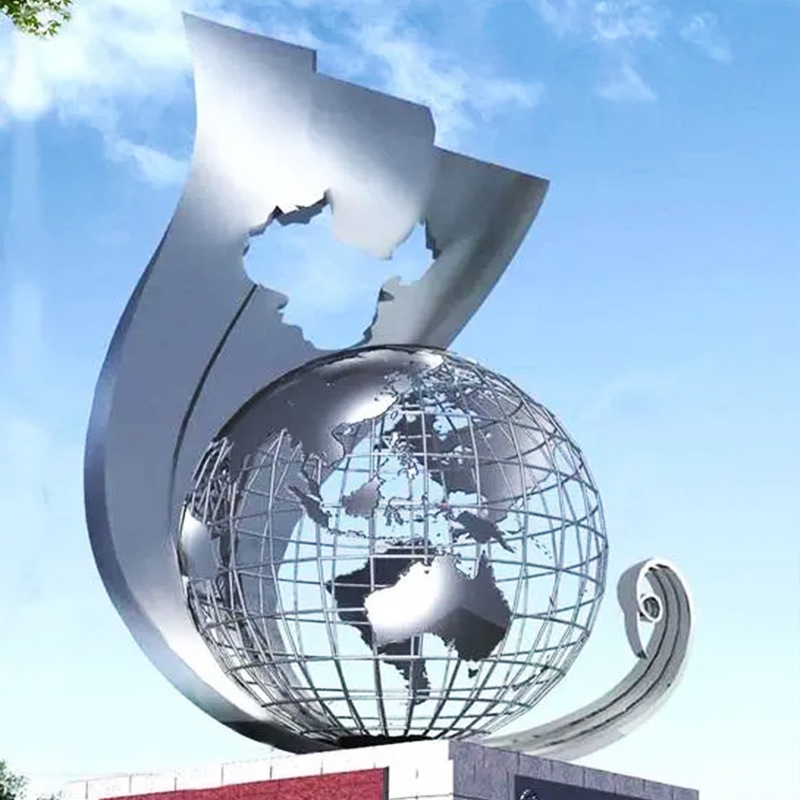 대형 스테인레스 스틸 중공 지구 조각 맞춤형 야외 조경 정원 흰색 스틸 추상 캠퍼스 테마 장식품스토어 가기
