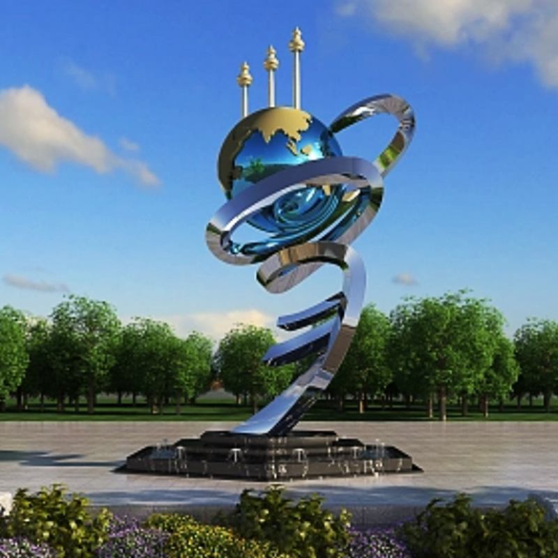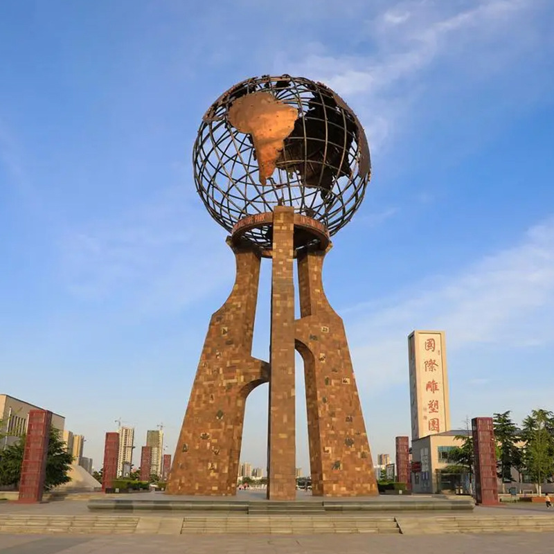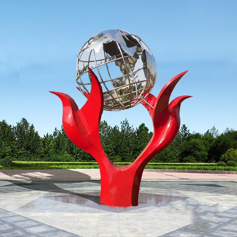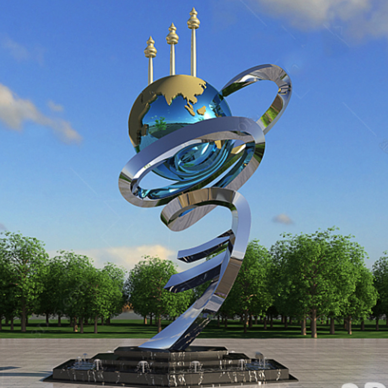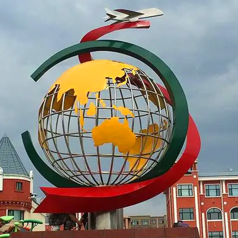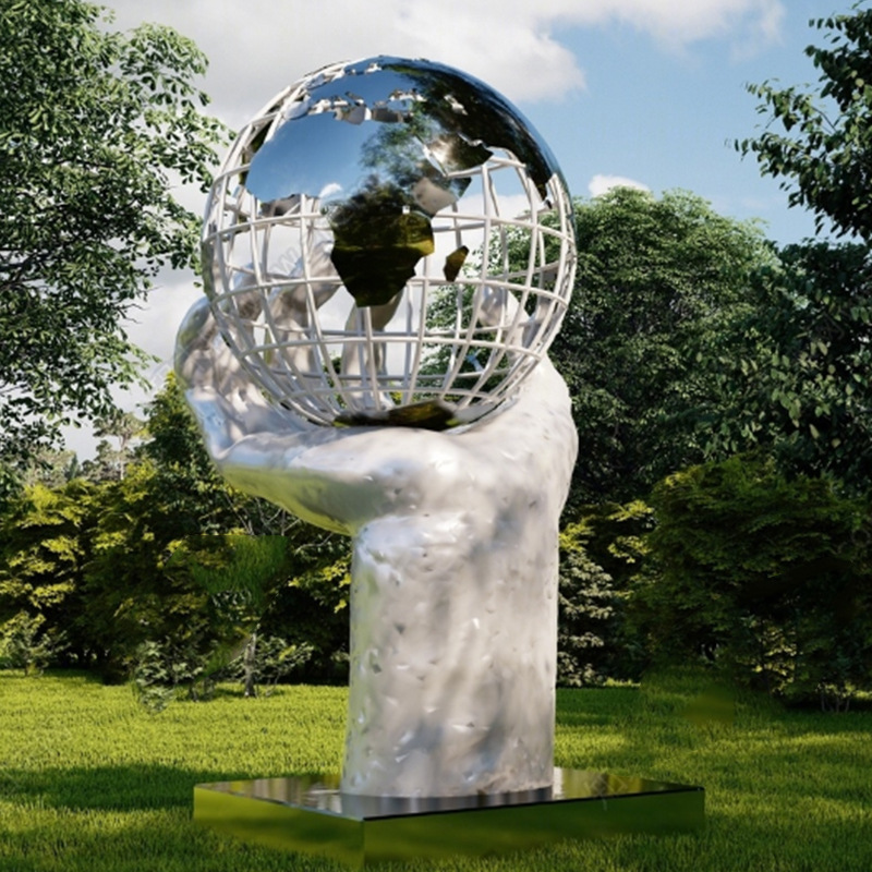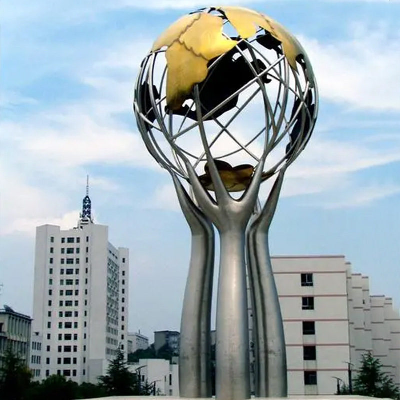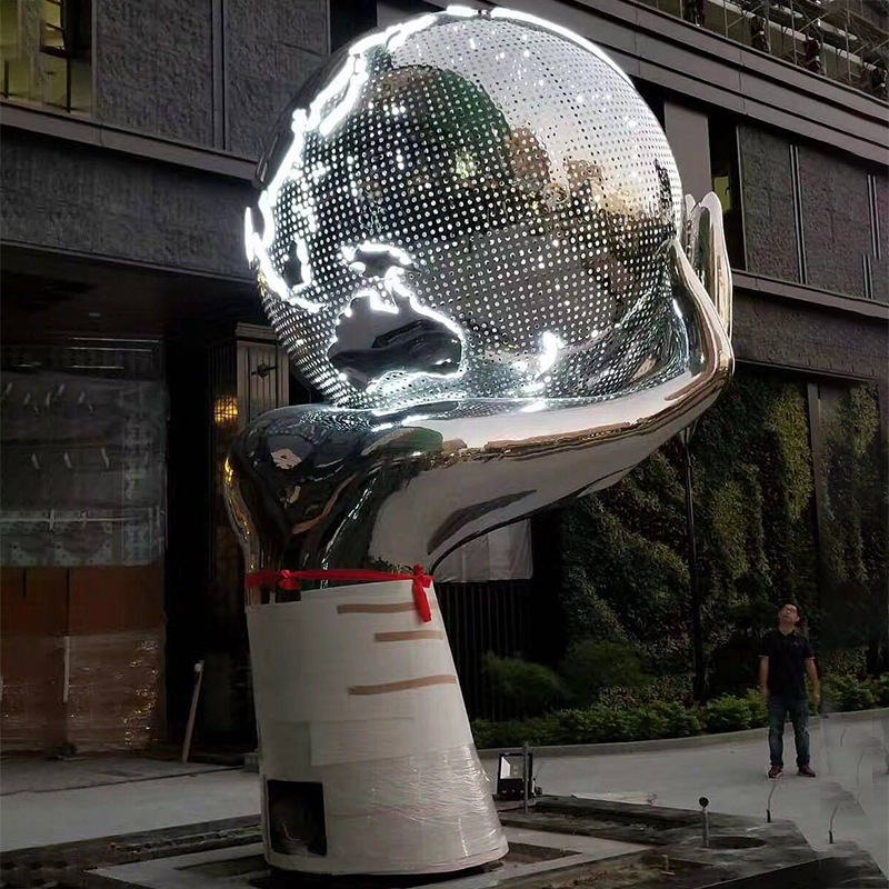 대형 스테인레스 스틸 중공 지구 조각 맞춤형 야외 조경 정원 흰색 스틸 추상 캠퍼스 테마 장식품스토어 가기
