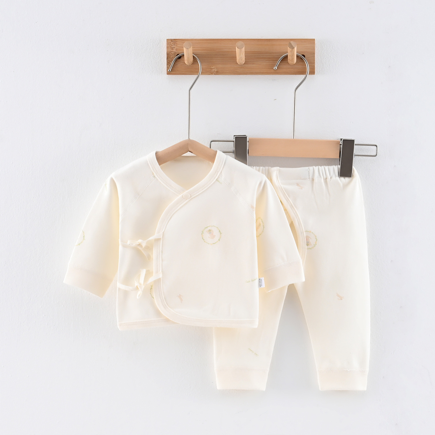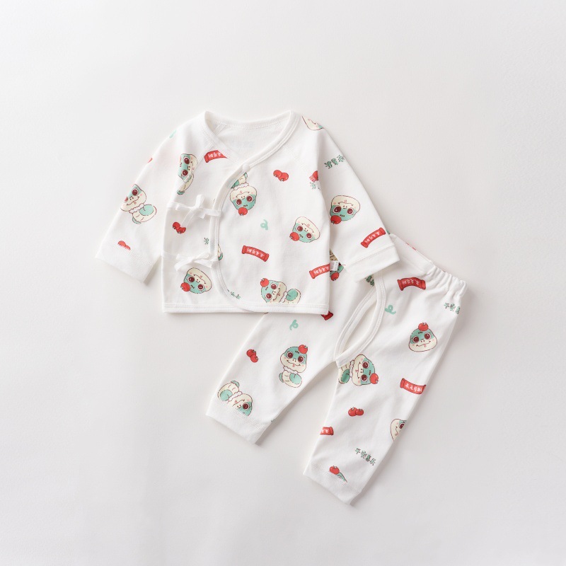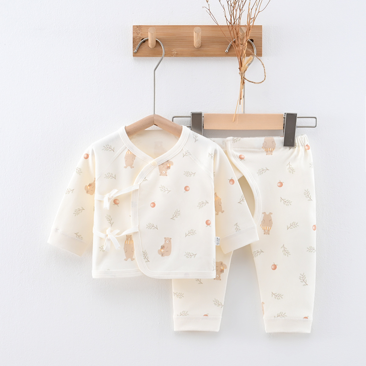 신생아 몽크 스타일 투피스 세트, 봄가을 순면 아기 벨크로 오픈형 가랑이 없는 가을옷과 가을바지, 유아 속옷 세트스토어 가기