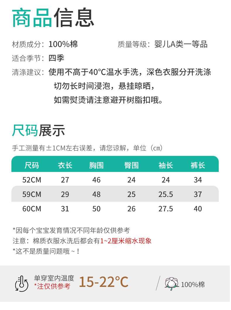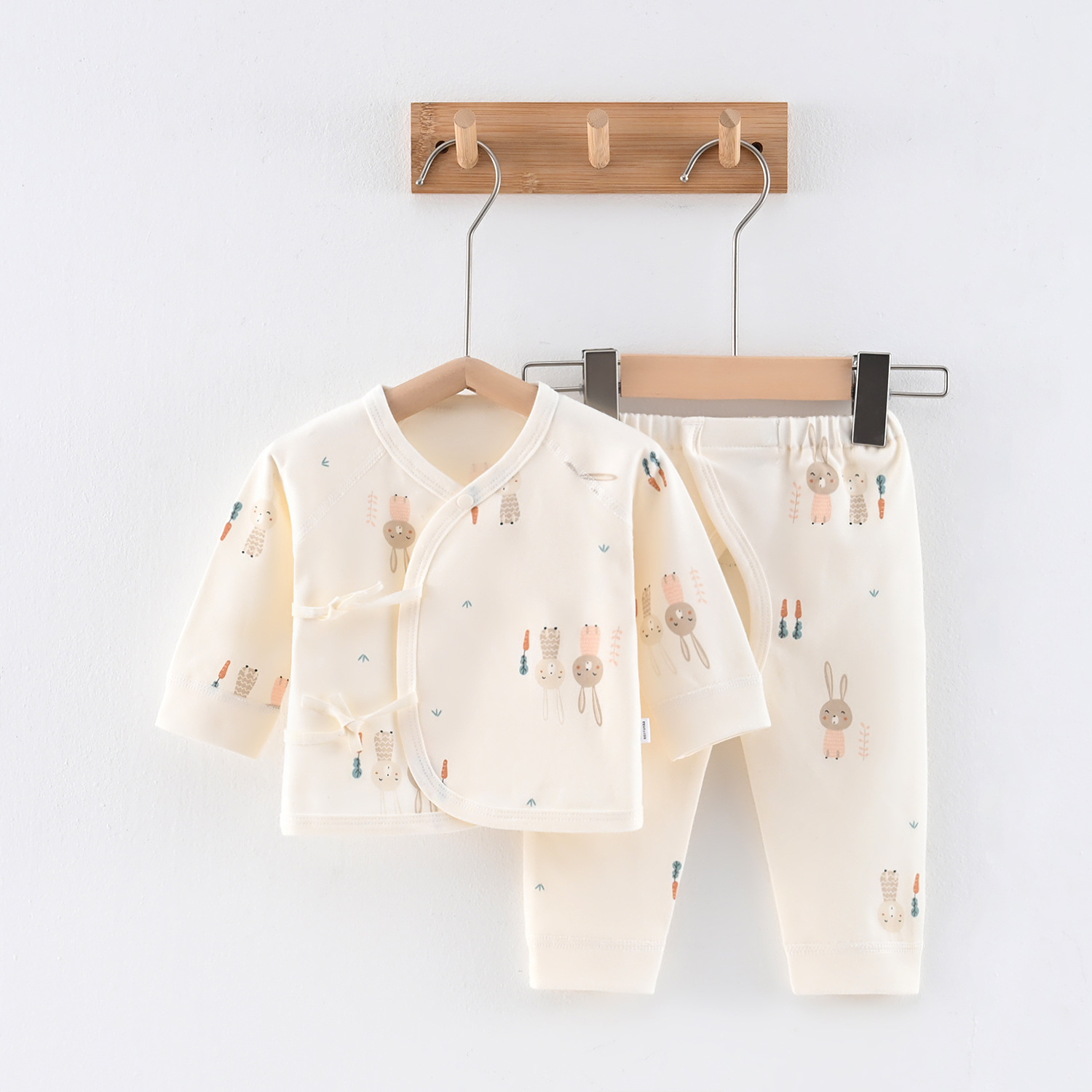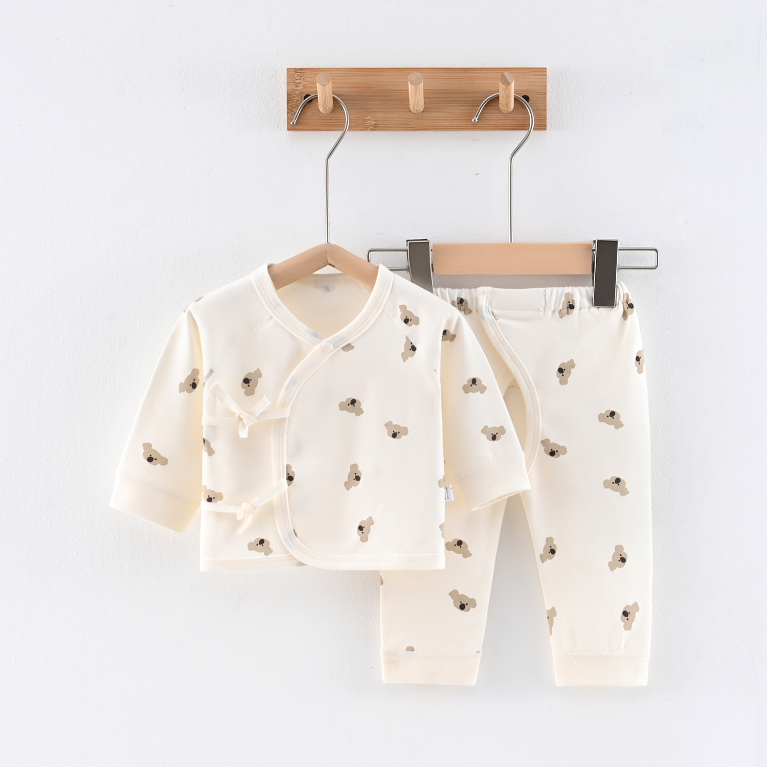 신생아 몽크 스타일 투피스 세트, 봄가을 순면 아기 벨크로 오픈형 가랑이 없는 가을옷과 가을바지, 유아 속옷 세트스토어 가기