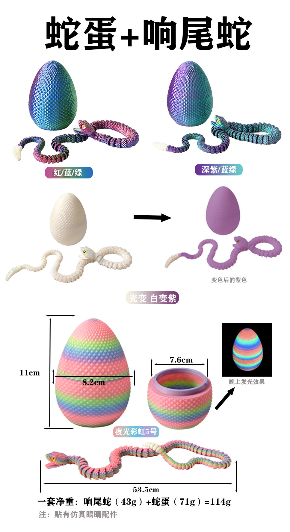 • 뱀알 + 방울뱀 세트 빛이 흰색과 보라색으로 변합니다.