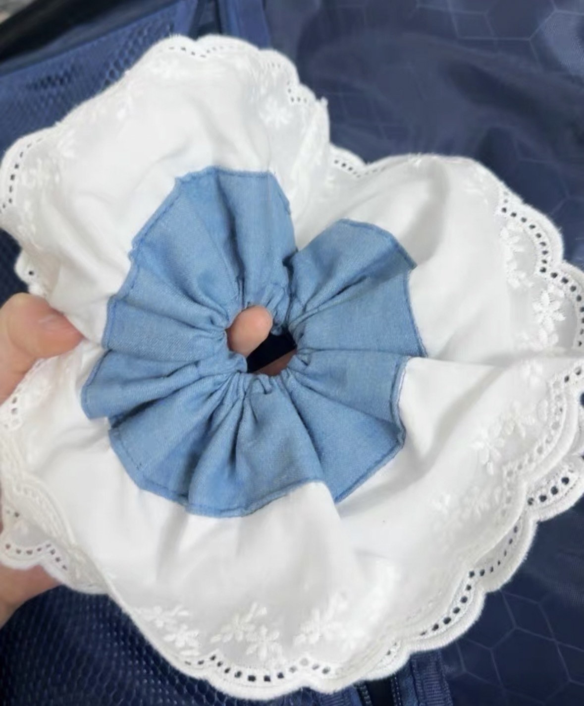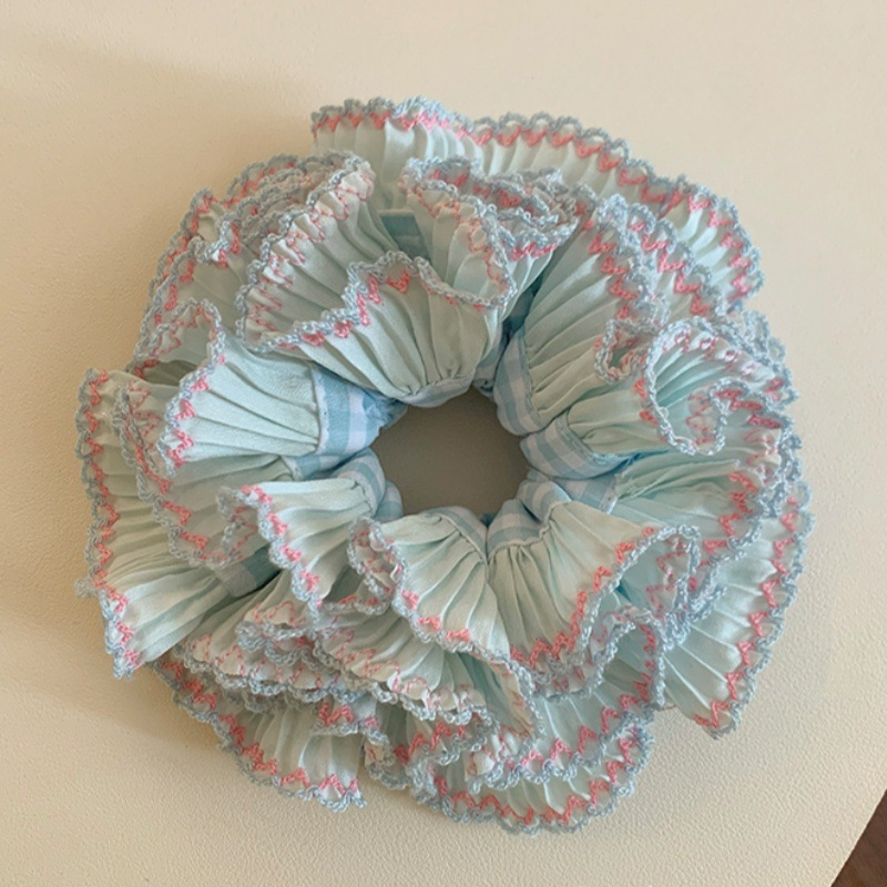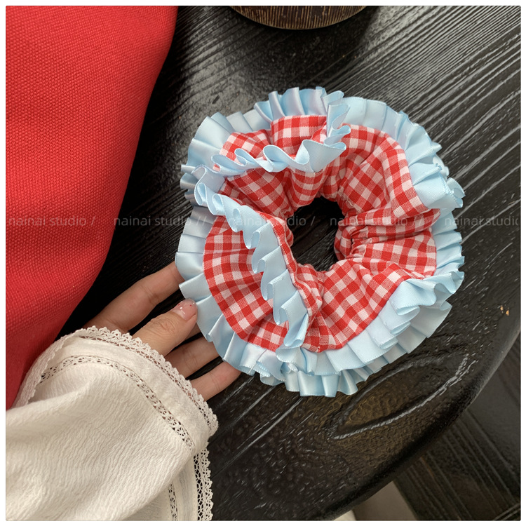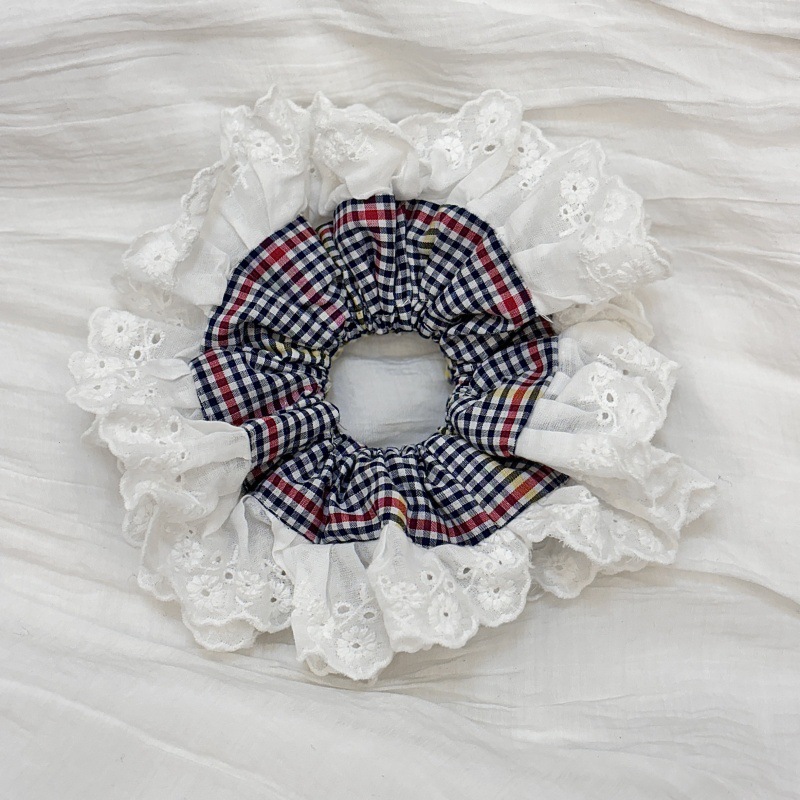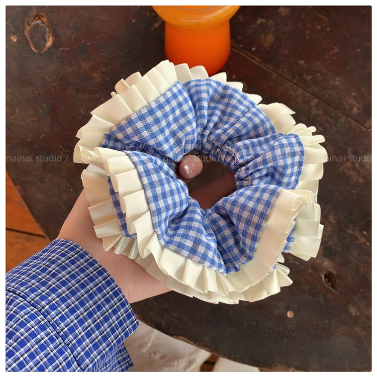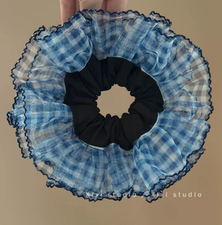 • 블루 메쉬 체크 무늬 대장 머리끈