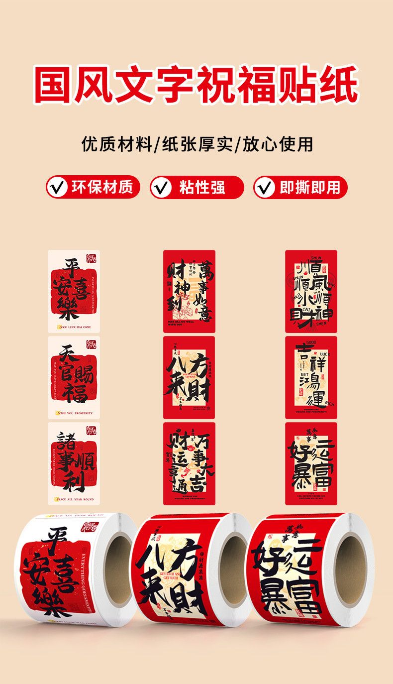 • 중국 스타일의 축복 스티커 롤 - 평화와 기쁨