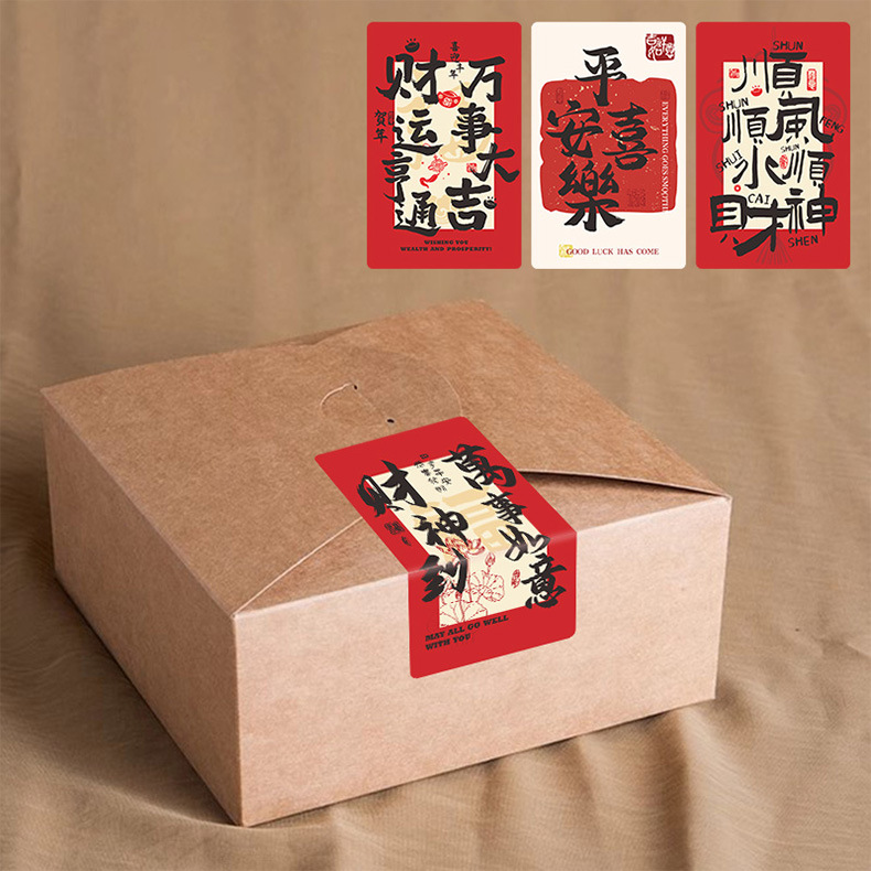 • 롤링된 중국식 크라프트지 축복 인감 스티커 - 행운과 행운을 빕니다