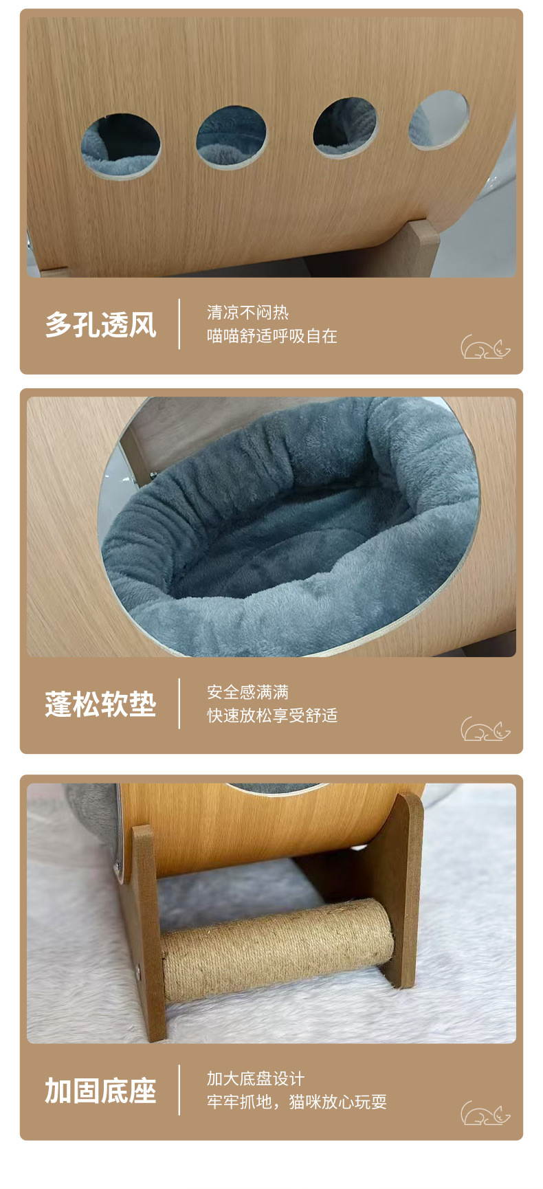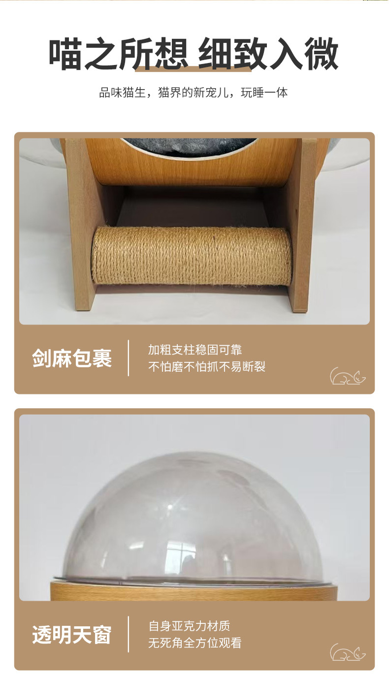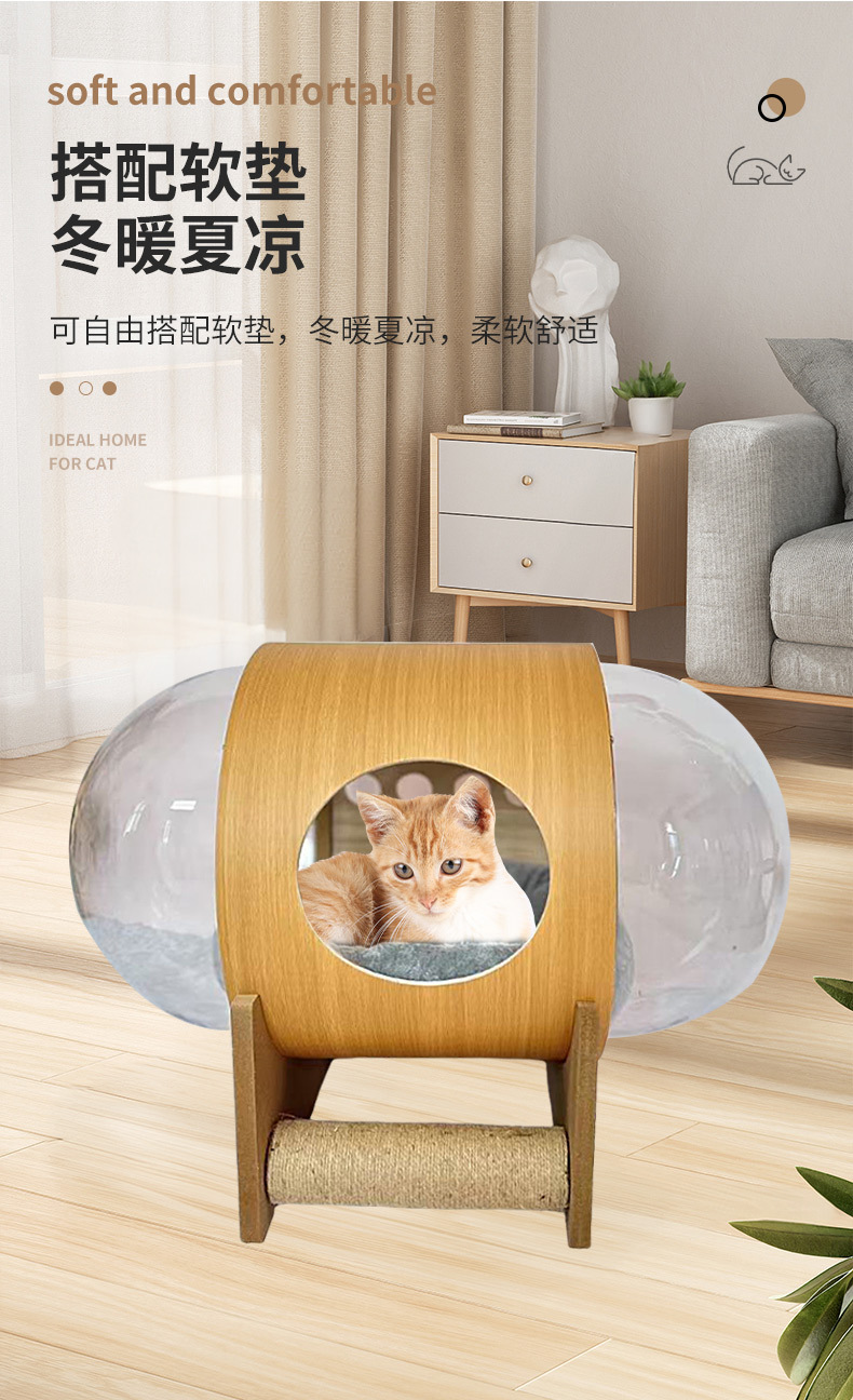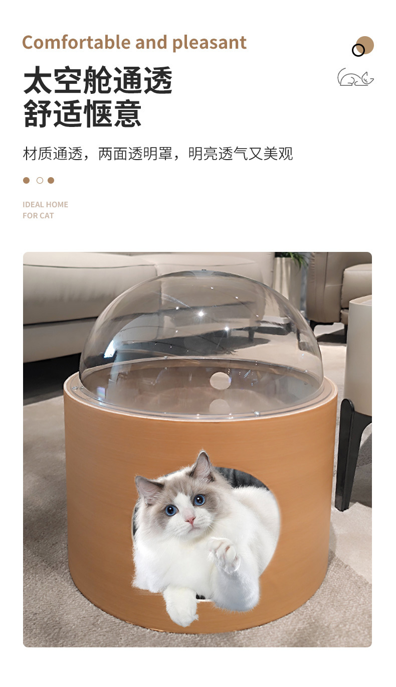 국경 간 공간 캡슐 고양이 둥지 양면 고양이 둥지 탑 둥근 캡슐 고양이 집 사계절 유니버설 솔리드 우드 편안한 고양이 집