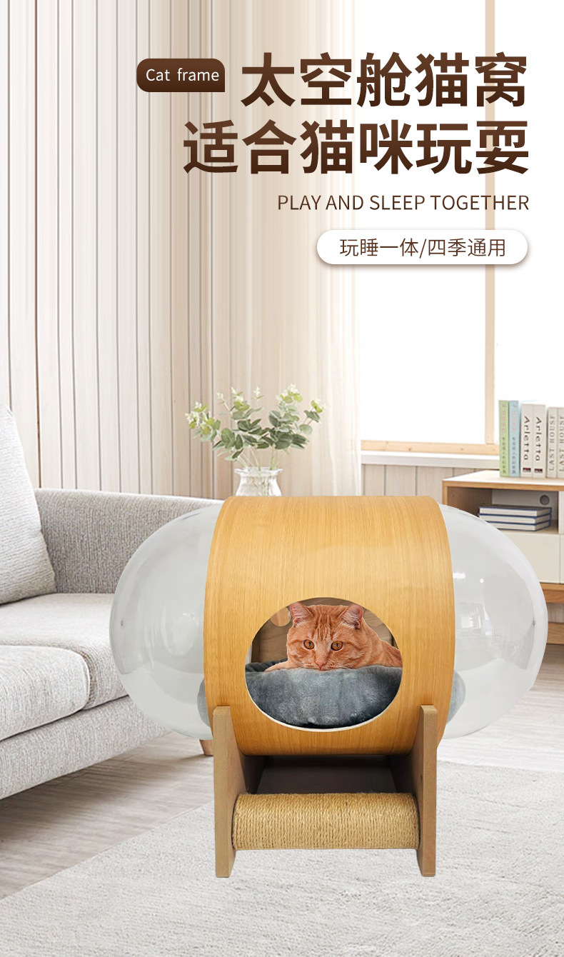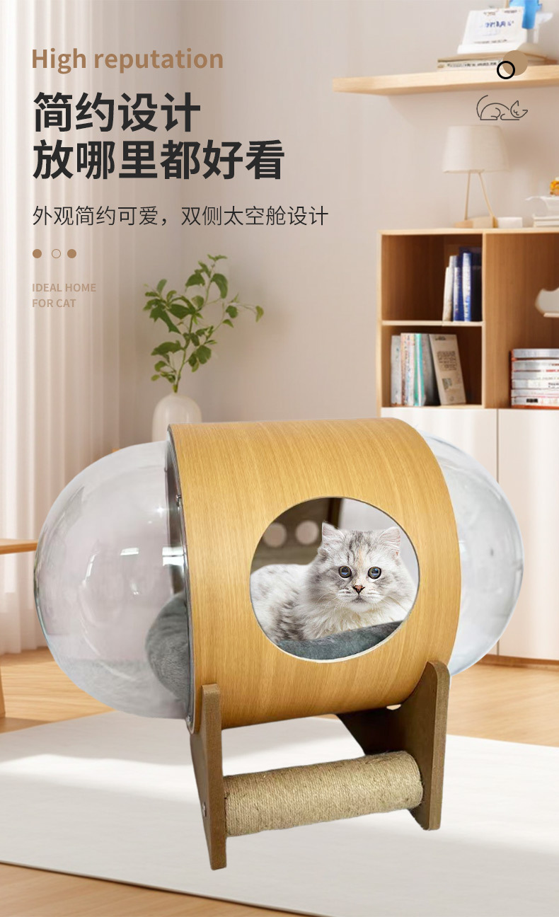 국경 간 공간 캡슐 고양이 둥지 양면 고양이 둥지 탑 둥근 캡슐 고양이 집 사계절 유니버설 솔리드 우드 편안한 고양이 집스토어 가기