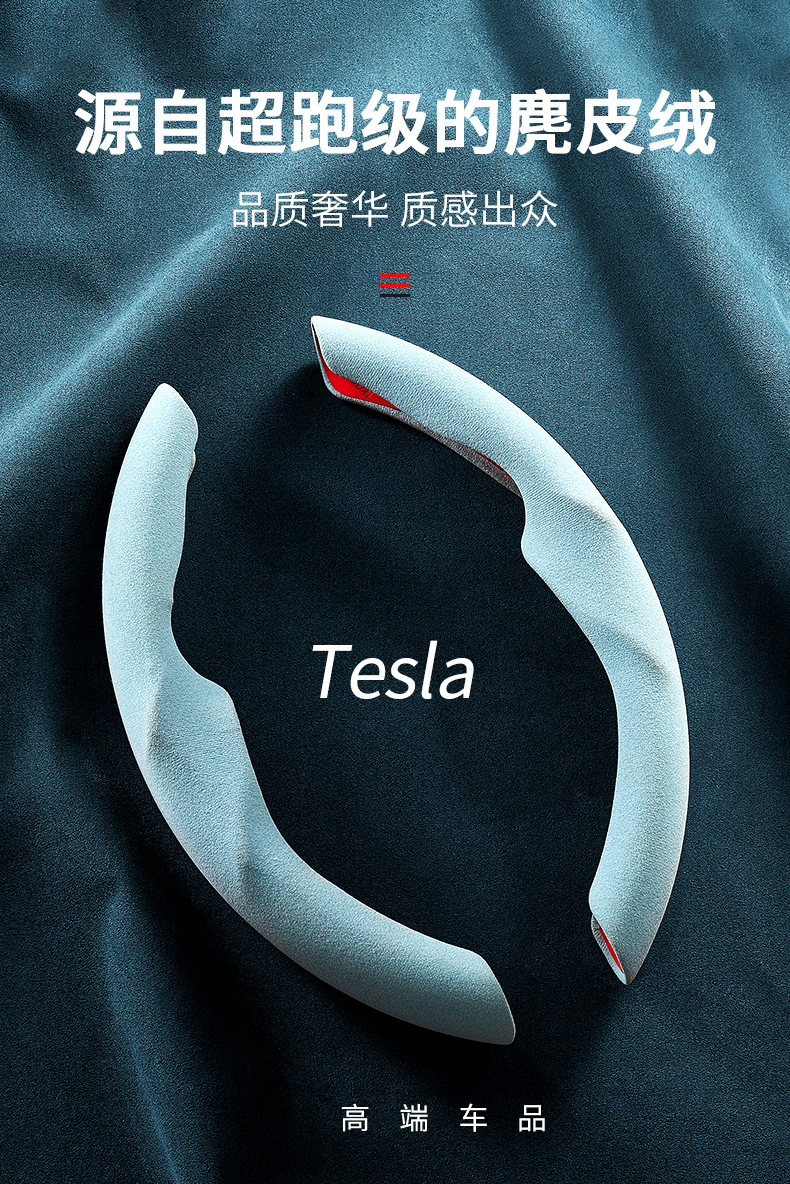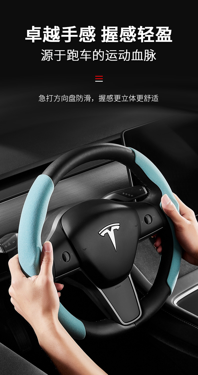 25개의 새로운 Tesla model3/y 스웨이드 가죽 스티어링 휠 커버 장식 및 액세서리에 적합