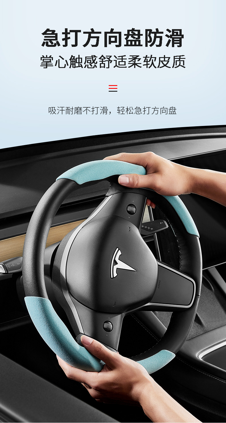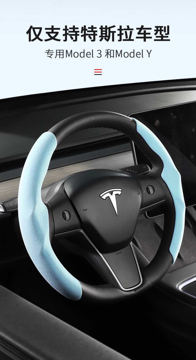25개의 새로운 Tesla model3/y 스웨이드 가죽 스티어링 휠 커버 장식 및 액세서리에 적합스토어 가기