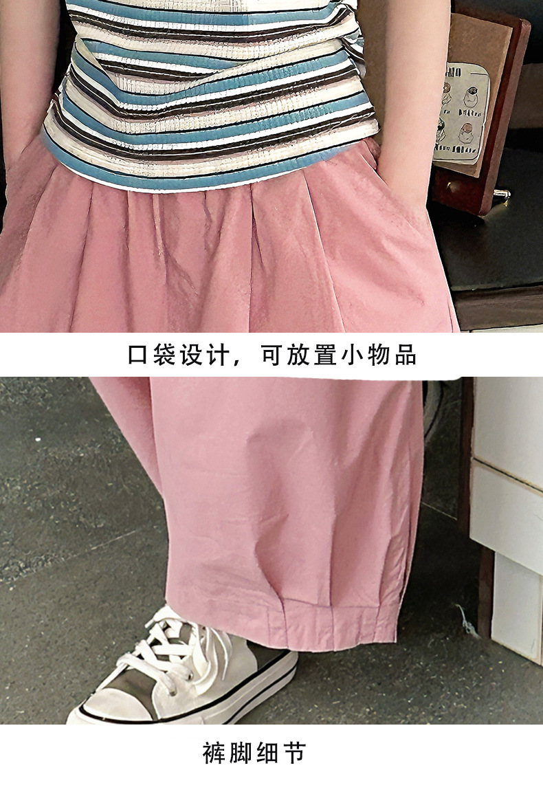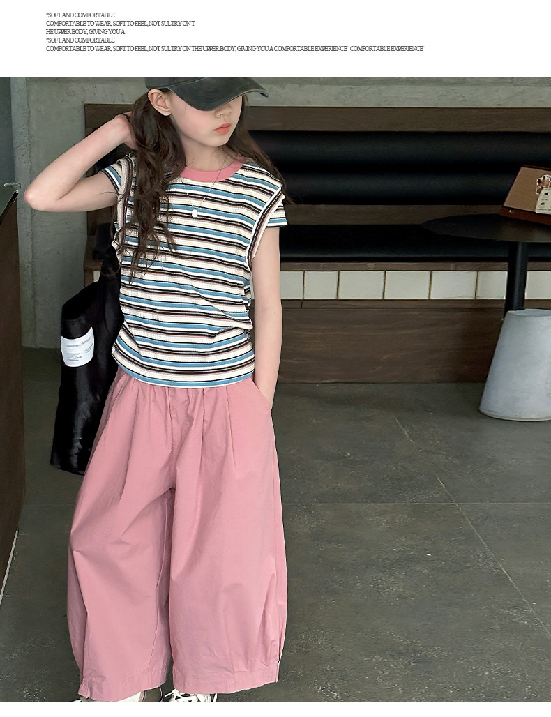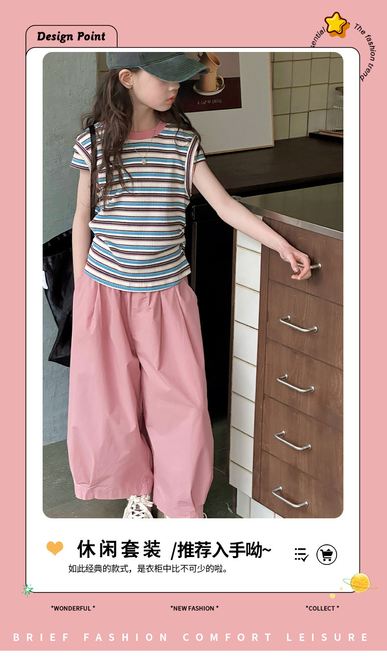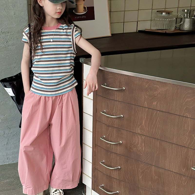여자 여름 세트 2025 스트라이프 조끼 세련된 한국 스타일 패션 당근 바지 세트 소녀 새 스타일 중 큰 아이