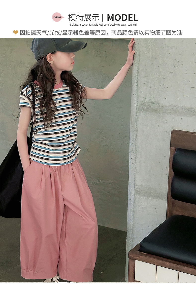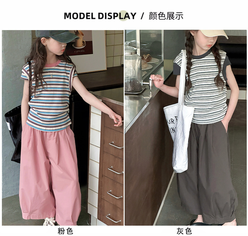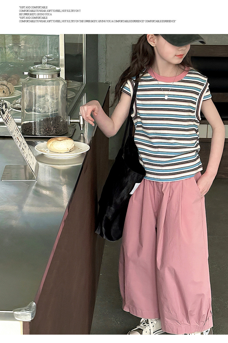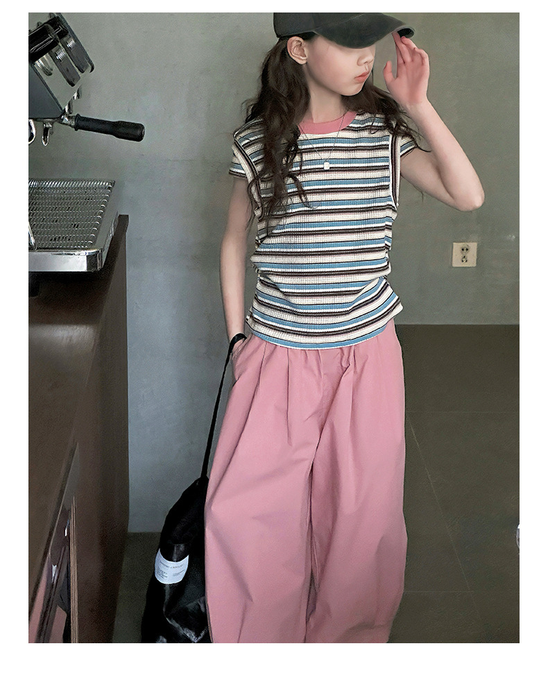 여자 여름 세트 2025 스트라이프 조끼 세련된 한국 스타일 패션 당근 바지 세트 소녀 새 스타일 중 큰 아이스토어 가기