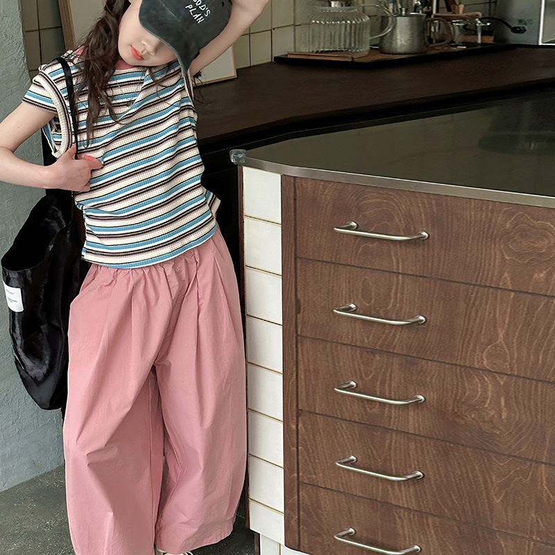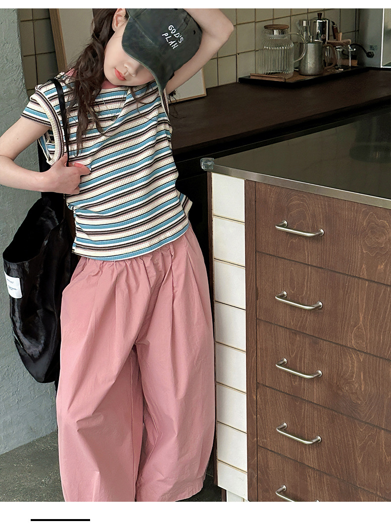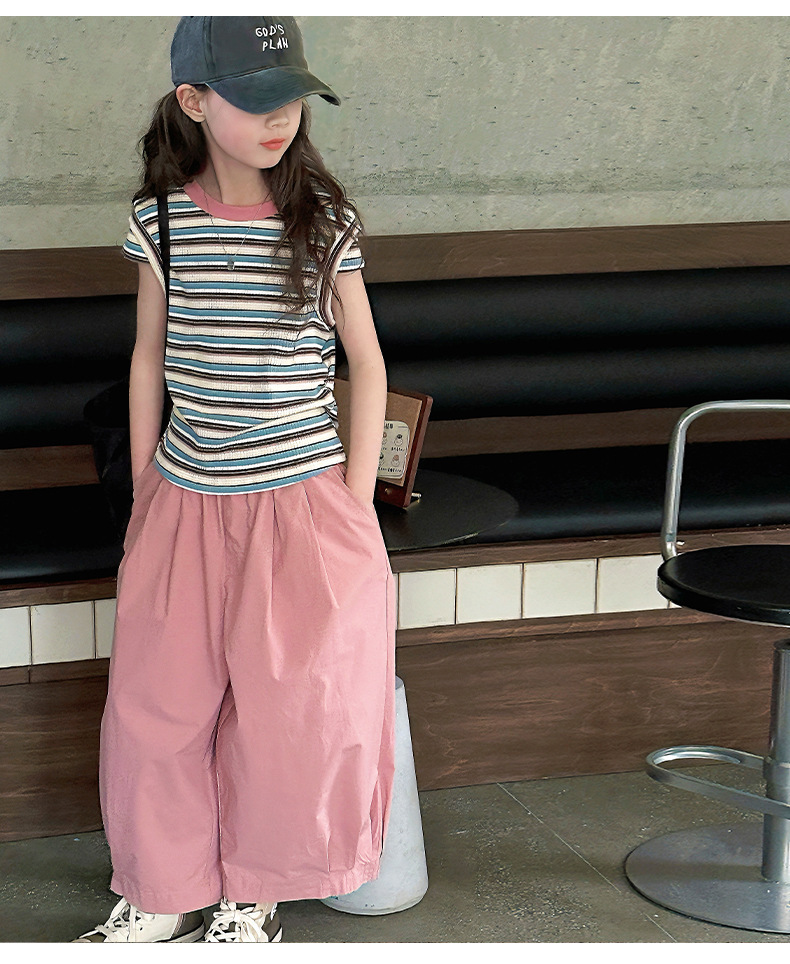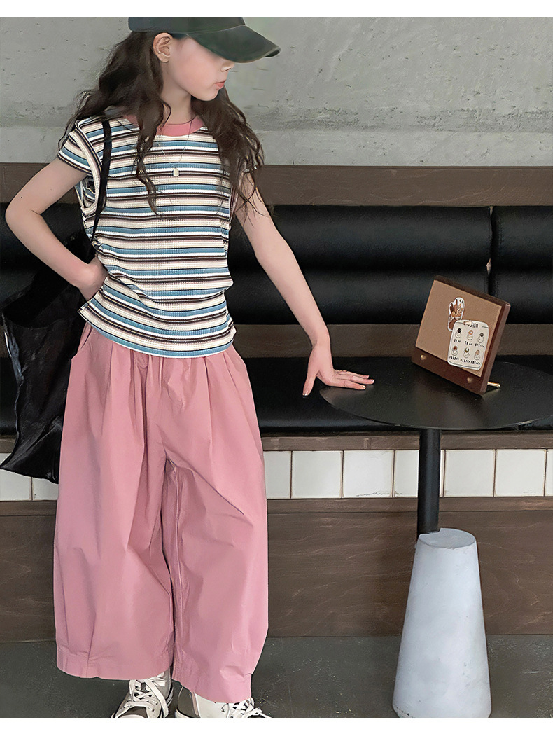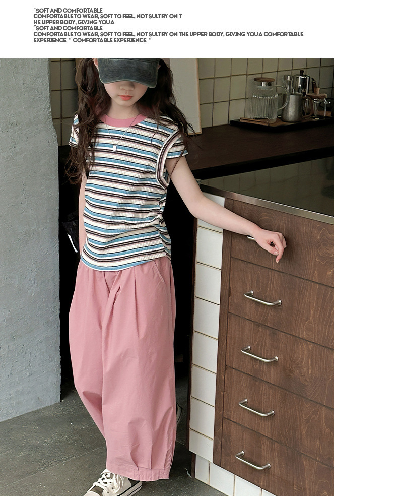여자 여름 세트 2025 스트라이프 조끼 세련된 한국 스타일 패션 당근 바지 세트 소녀 새 스타일 중 큰 아이스토어 가기
