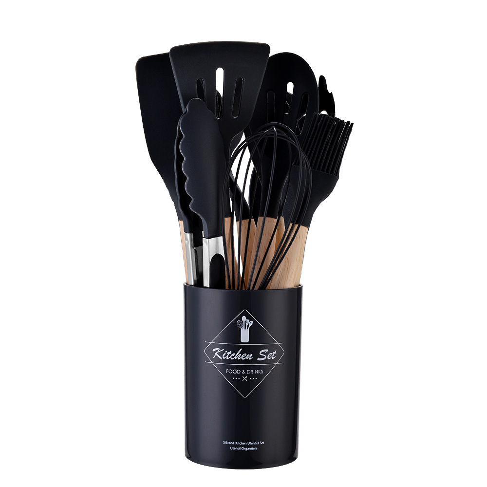 크로스보더 나무 손잡이 실리콘 주방용품 11종 세트 붙지 않는 주걱 조리도구 주방용품 주방세트