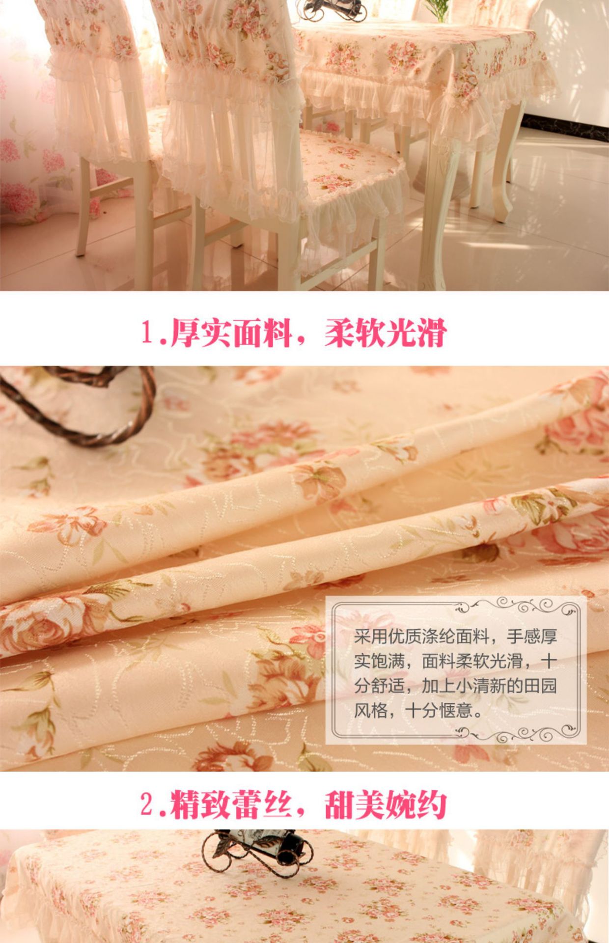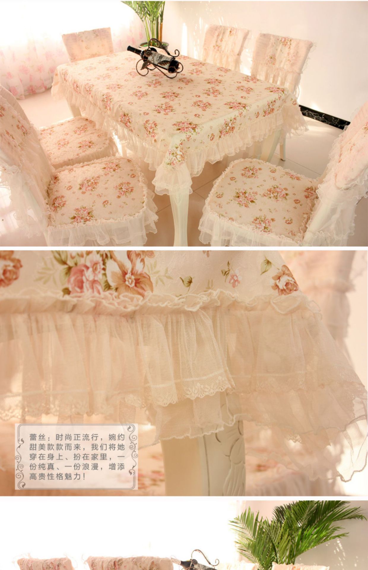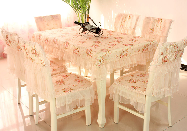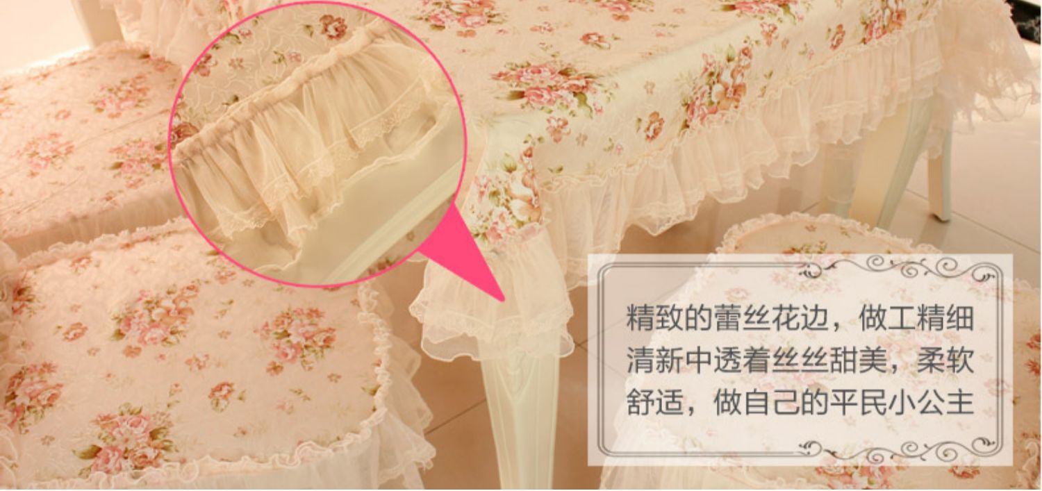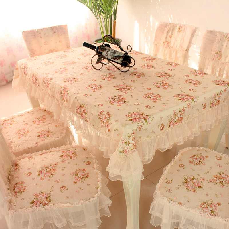 C 차 테이블 식탁보 직사각형 식탁 용 의자 쿠션 테이블 천 원단 세트 레이스 의자 커버 다이닝 의자 커버 파우더 필드