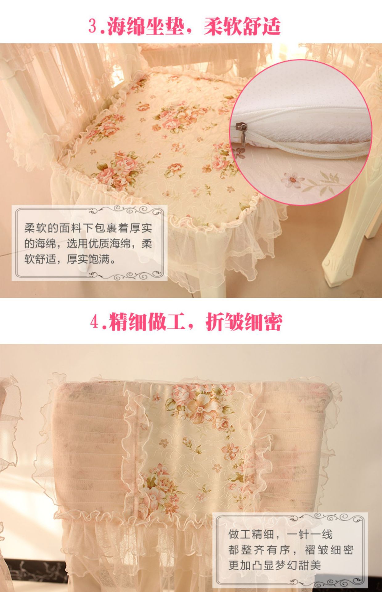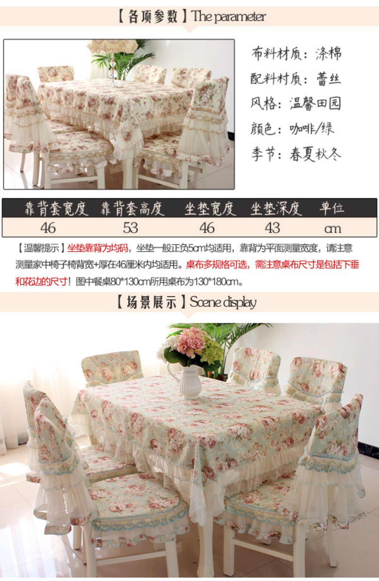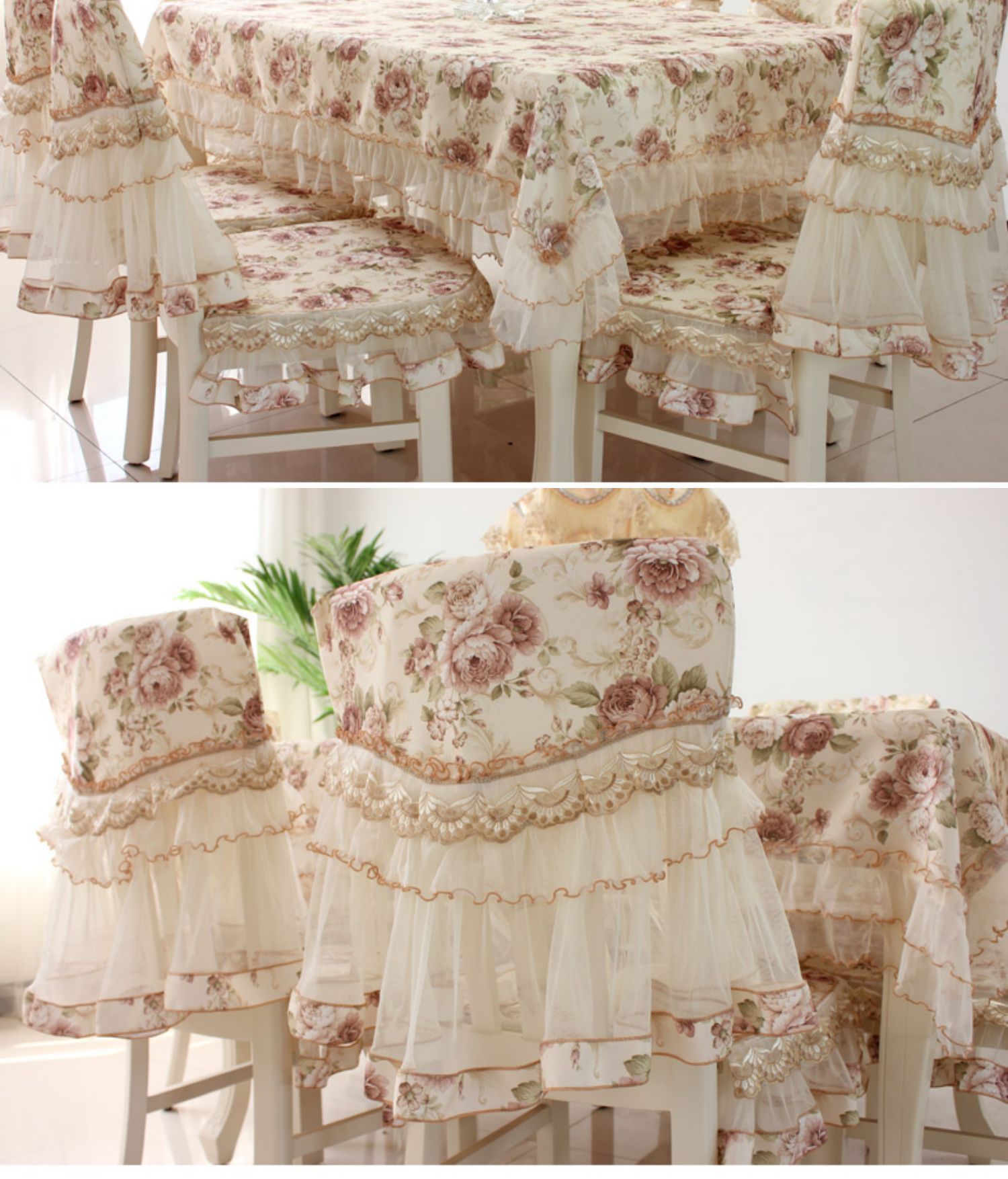 C 차 테이블 식탁보 직사각형 식탁 용 의자 쿠션 테이블 천 원단 세트 레이스 의자 커버 다이닝 의자 커버 파우더 필드