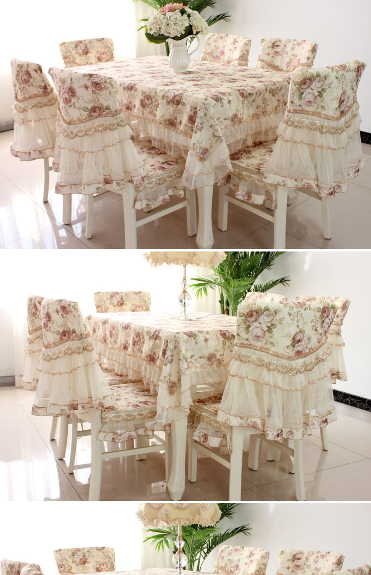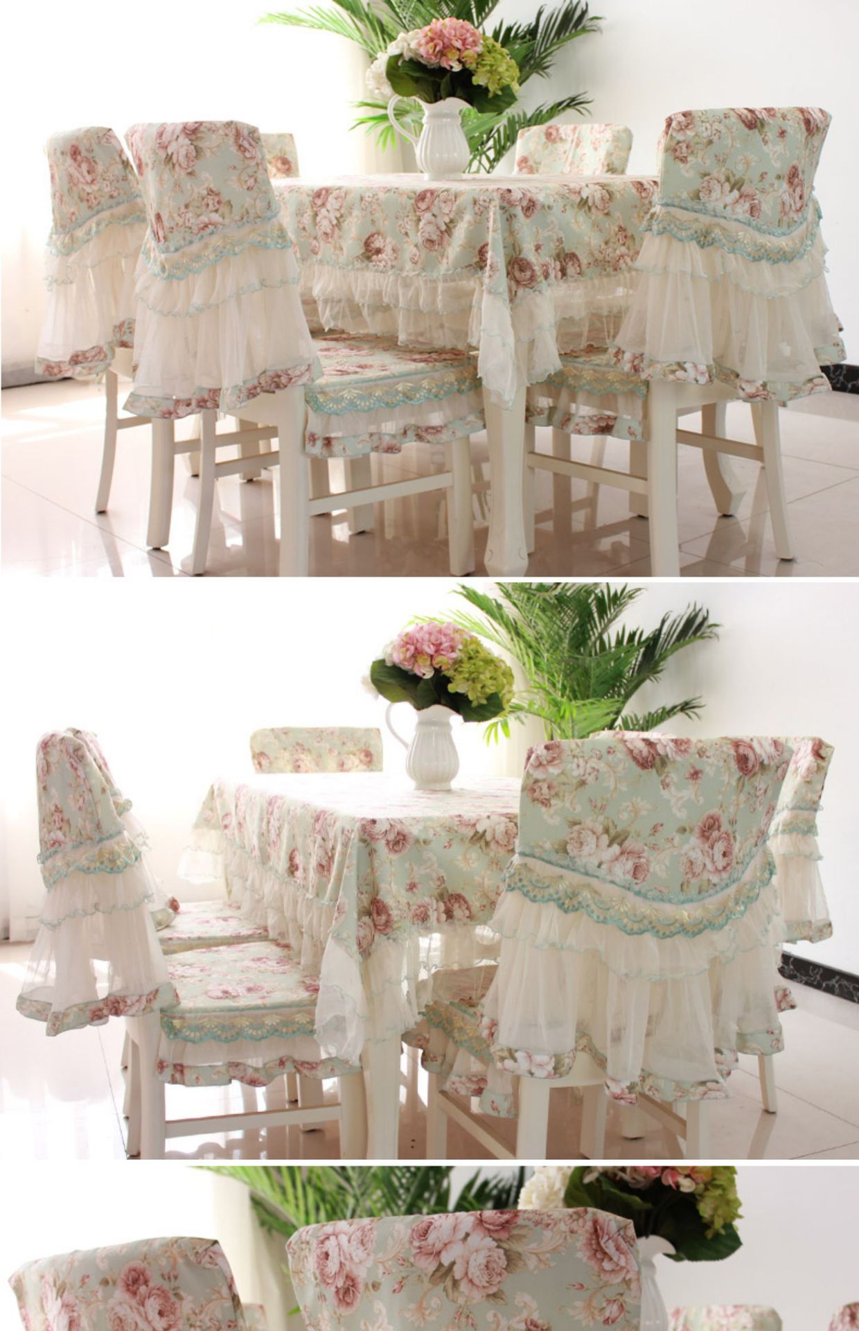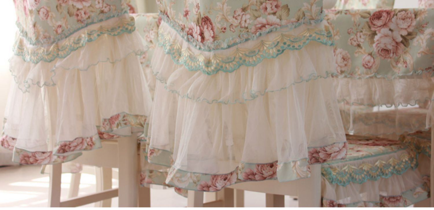 C 차 테이블 식탁보 직사각형 식탁 용 의자 쿠션 테이블 천 원단 세트 레이스 의자 커버 다이닝 의자 커버 파우더 필드스토어 가기