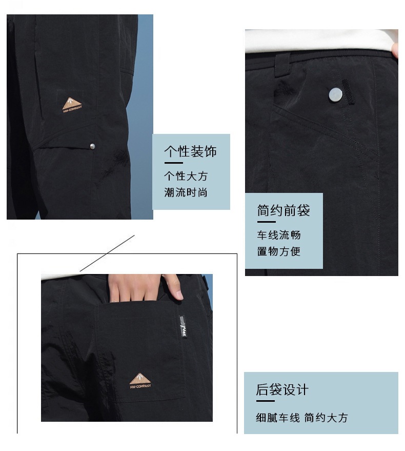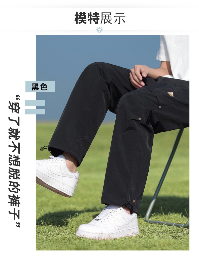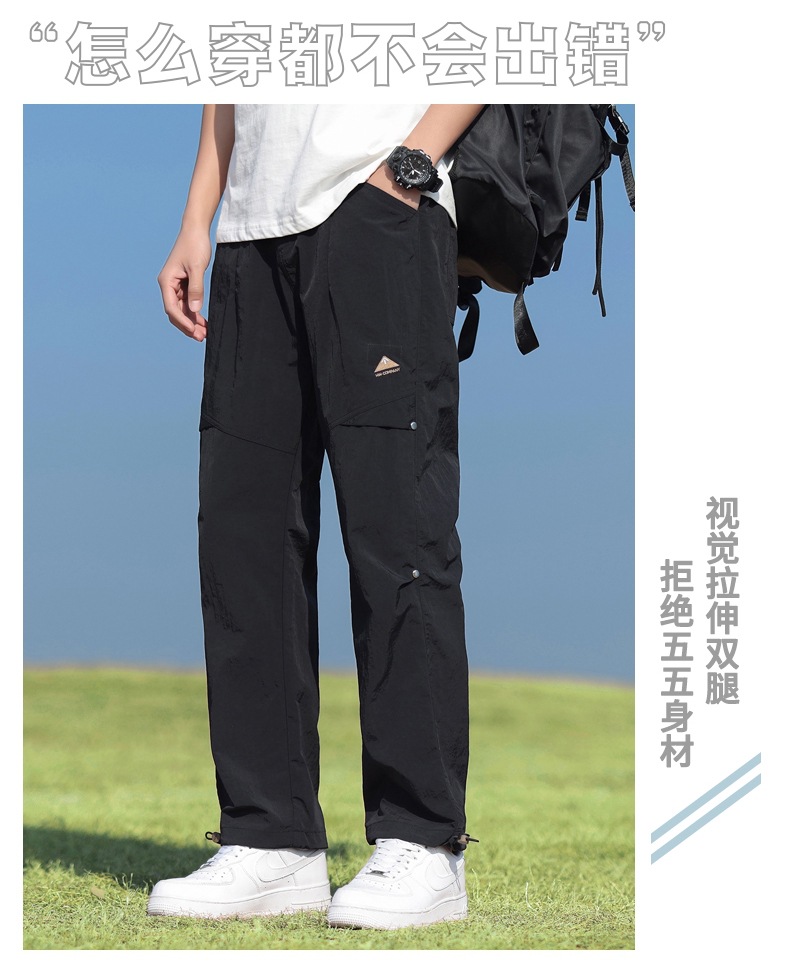 2025년 새로운 여름 스타일 남성용 루즈한 야외 3방수 캐주얼 바지, 홍콩 스타일 트렌디한 남성용 다용도 스포츠 하이킹 바지스토어 가기