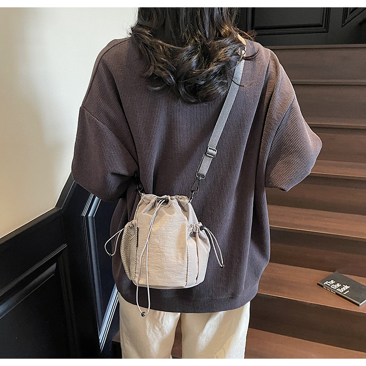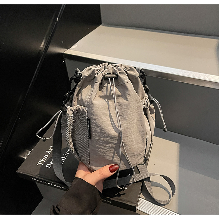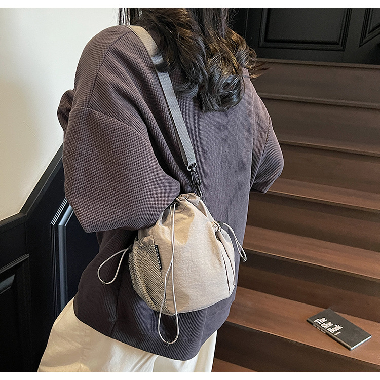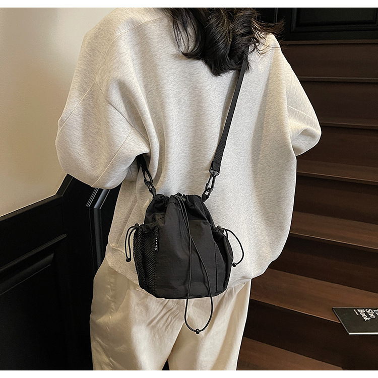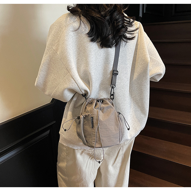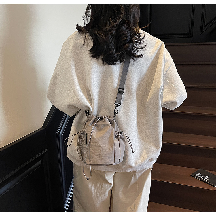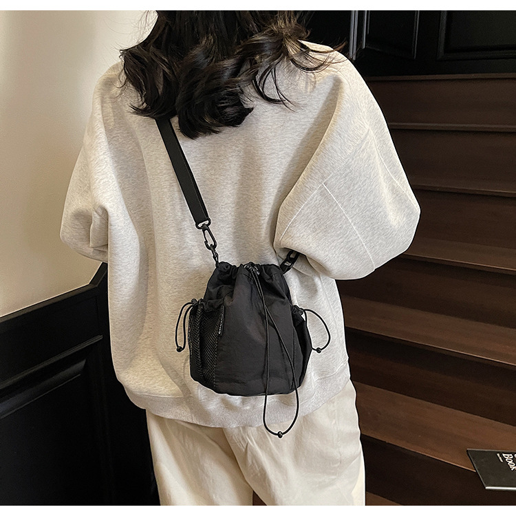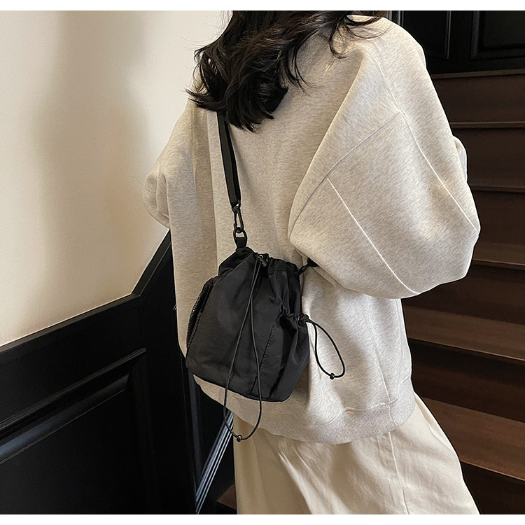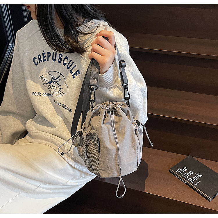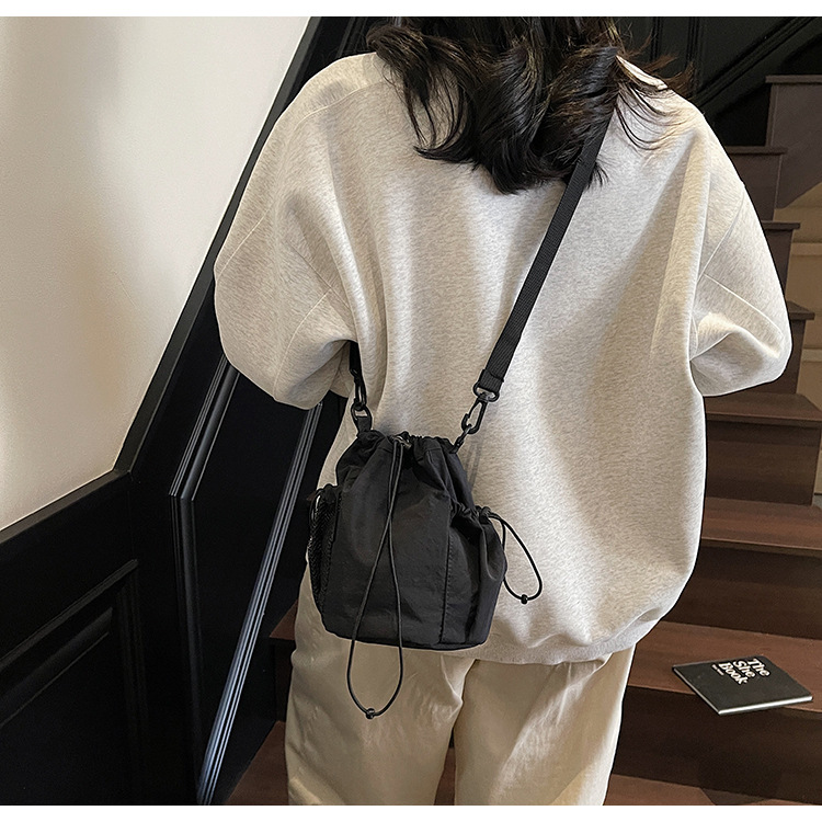 드로우 스트링 거들 새로운 캐주얼 심플 2025 유행 나일론 통근 유행 한국식 크로스 바디 버킷 숄더 백