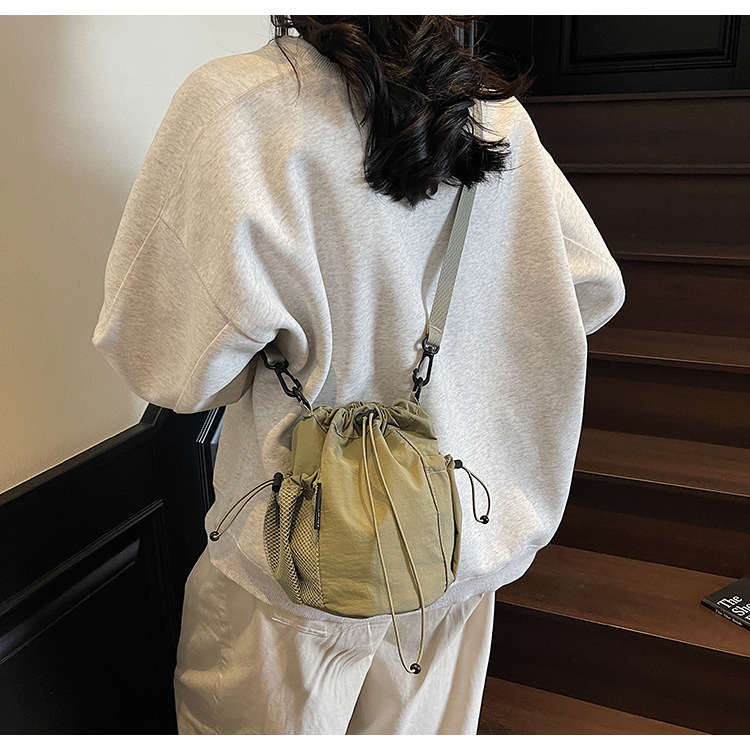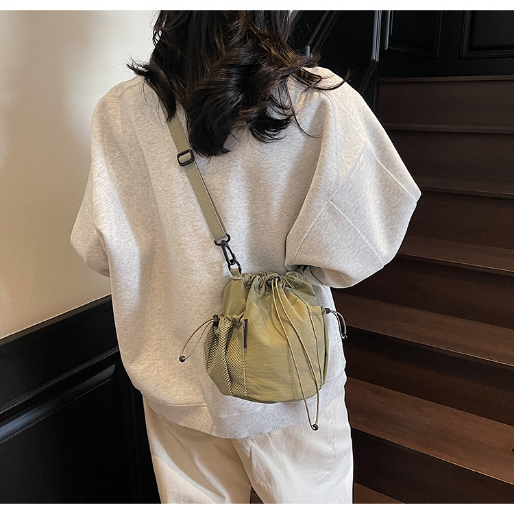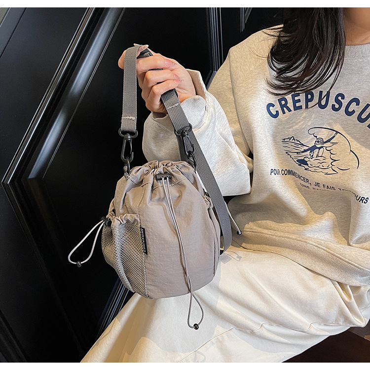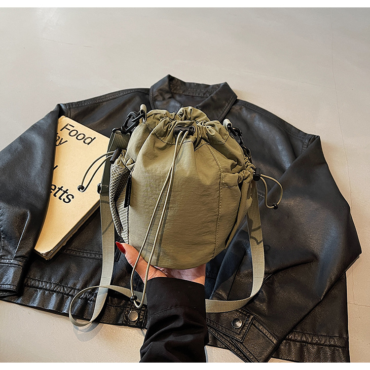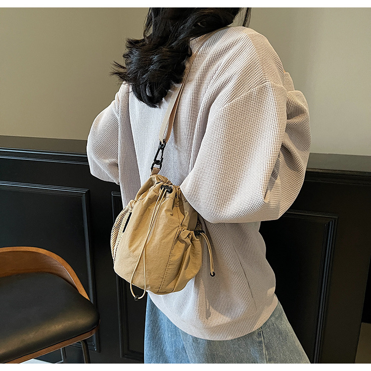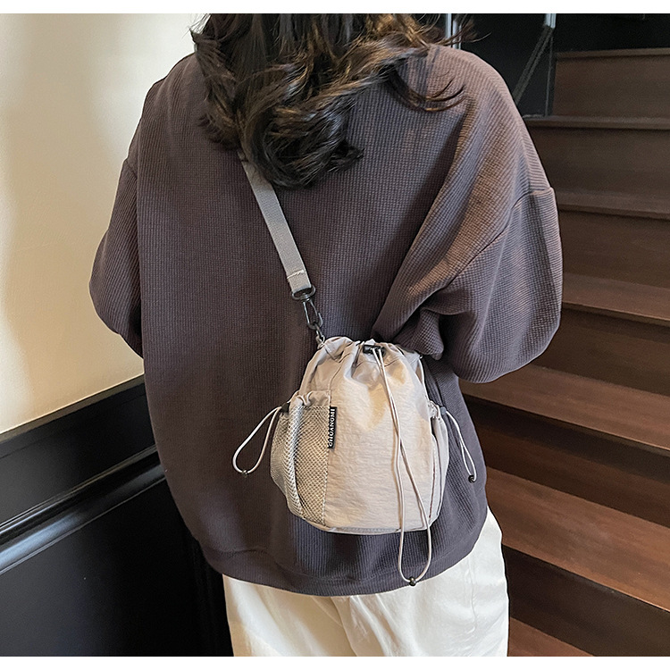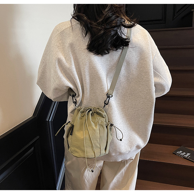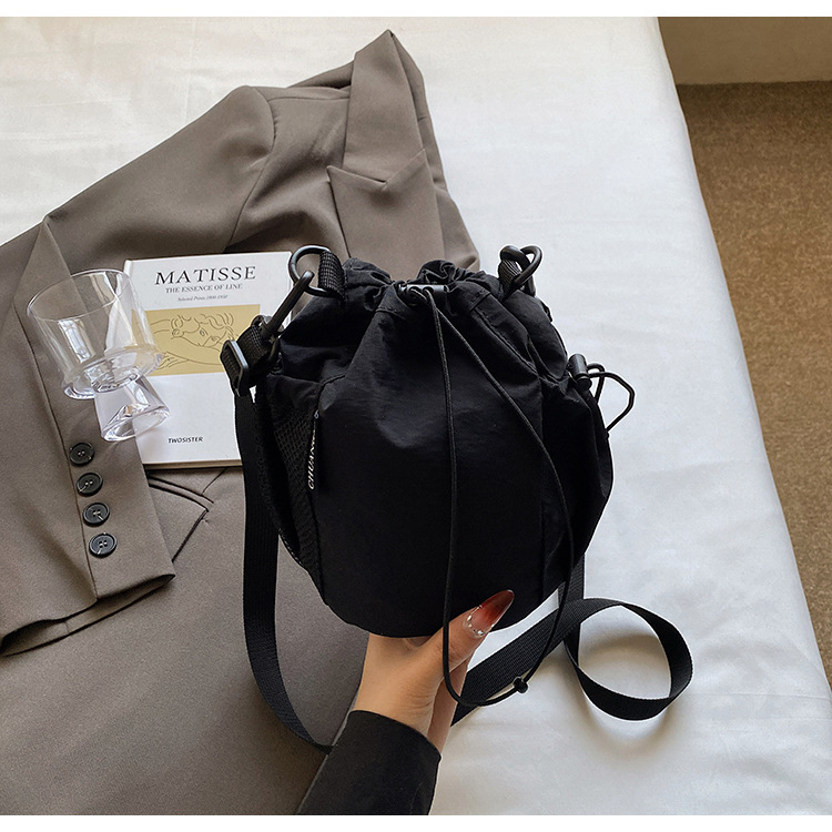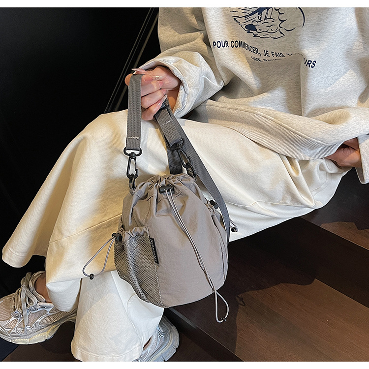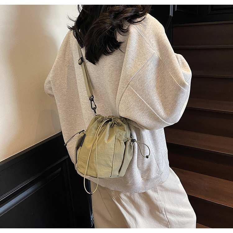 드로우 스트링 거들 새로운 캐주얼 심플 2025 유행 나일론 통근 유행 한국식 크로스 바디 버킷 숄더 백