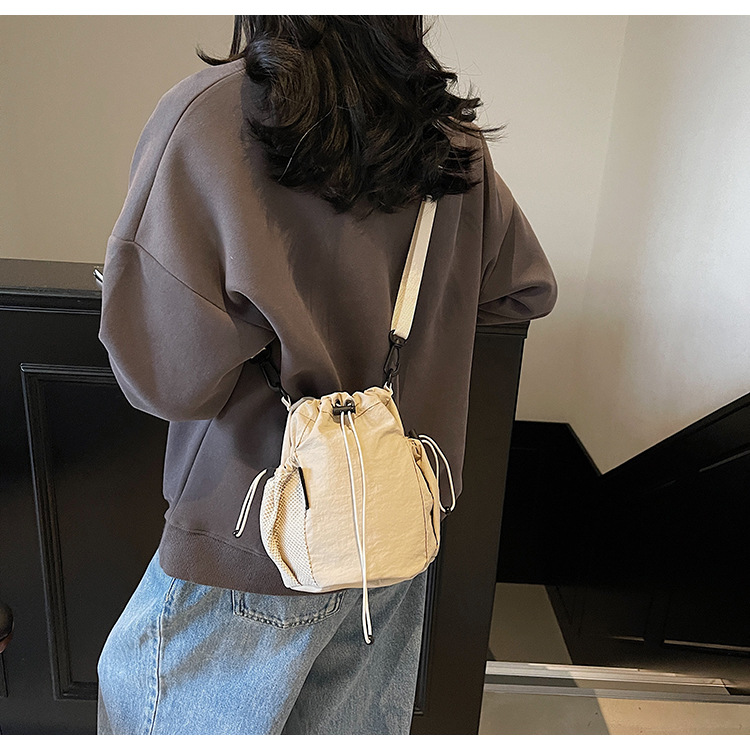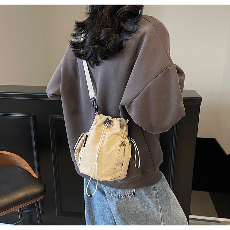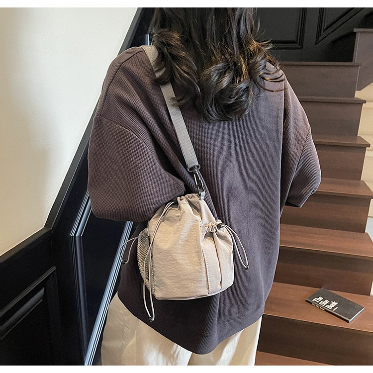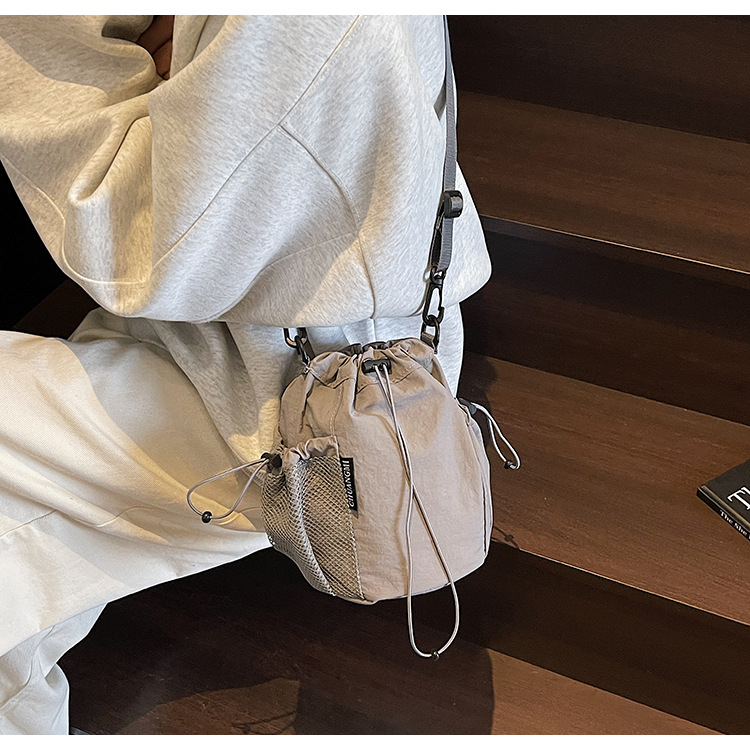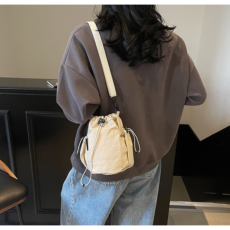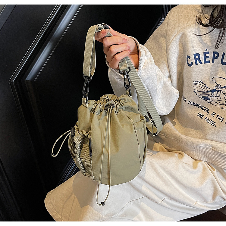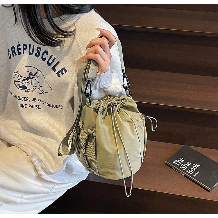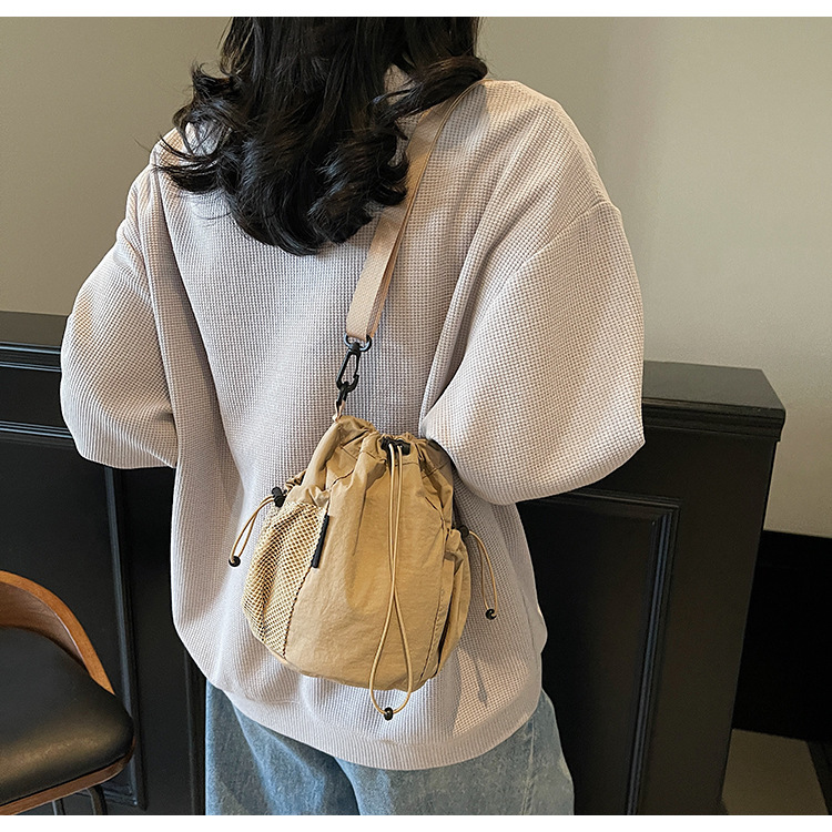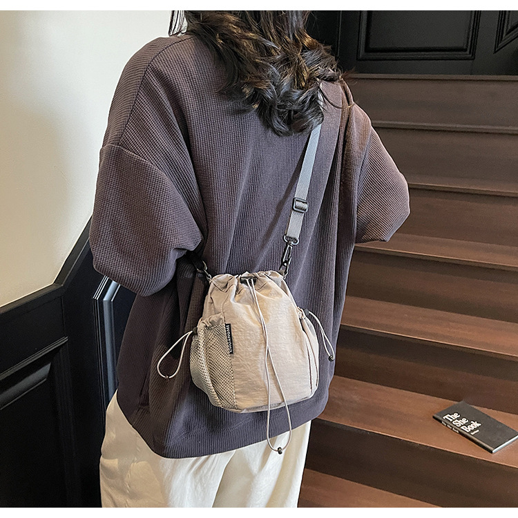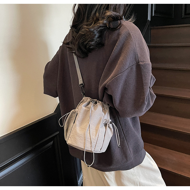 드로우 스트링 거들 새로운 캐주얼 심플 2025 유행 나일론 통근 유행 한국식 크로스 바디 버킷 숄더 백