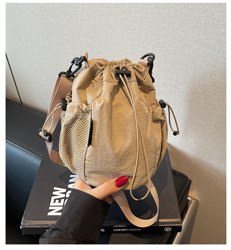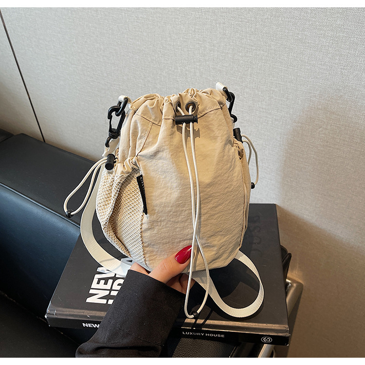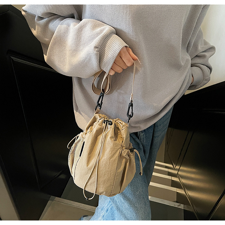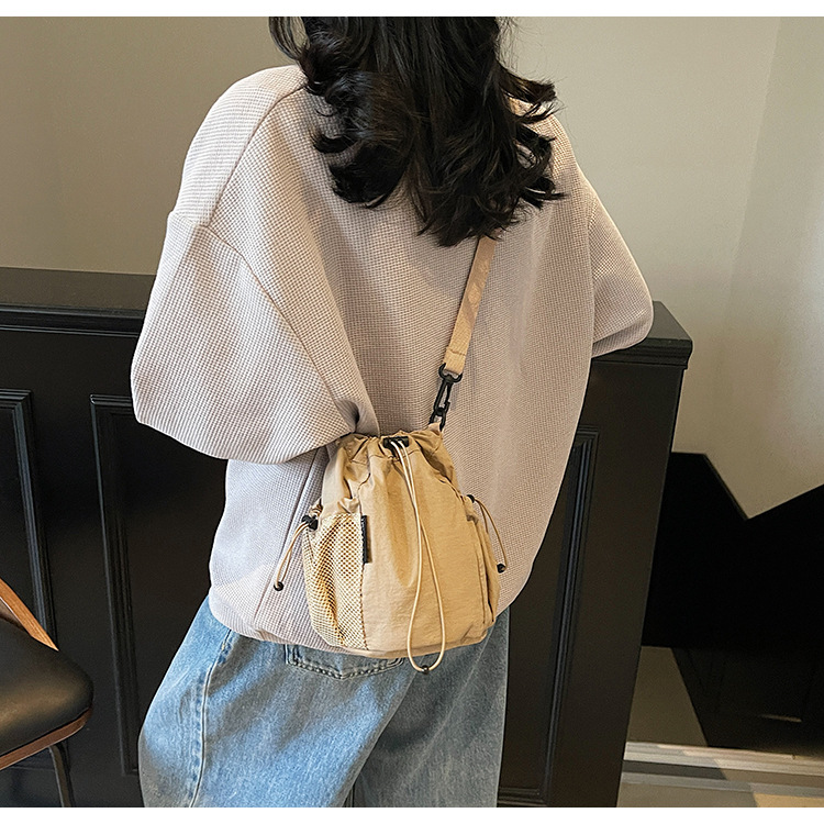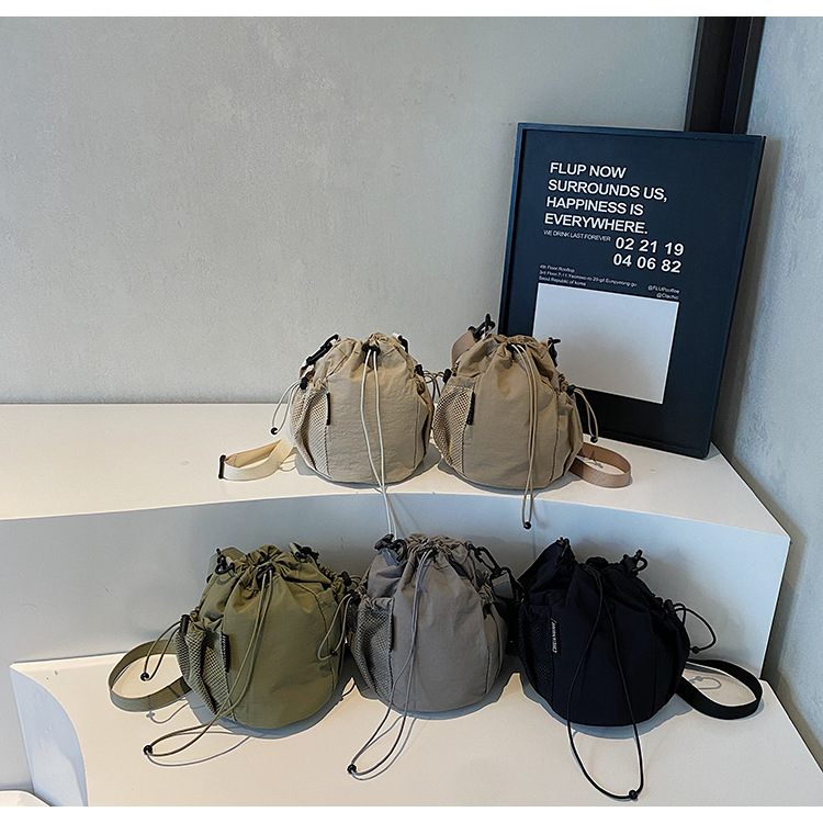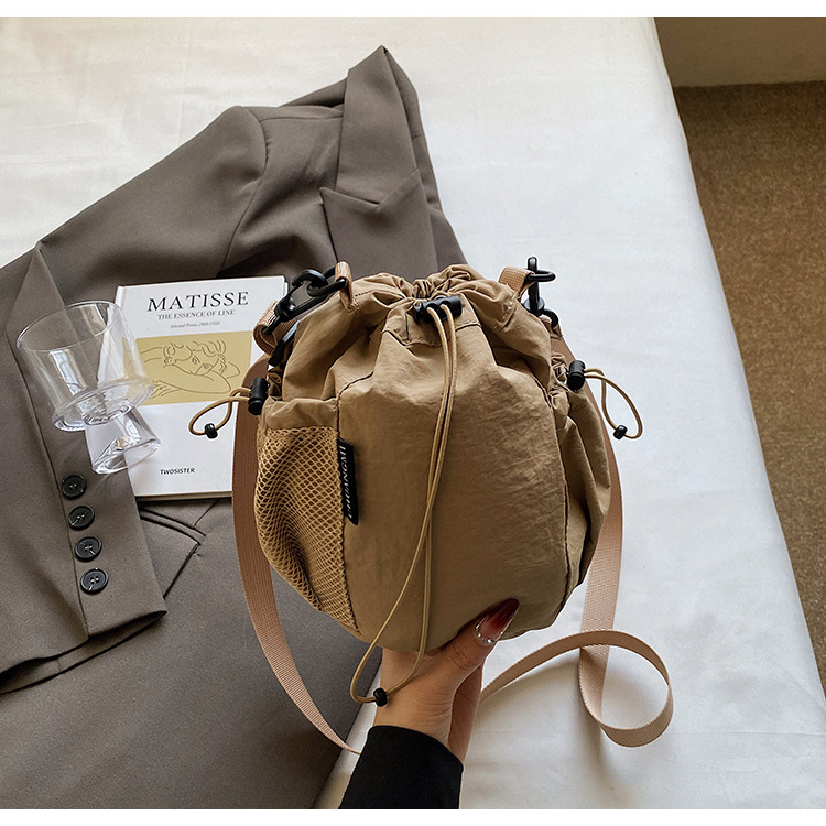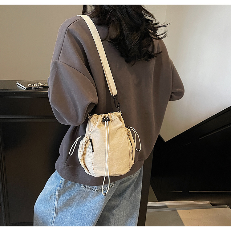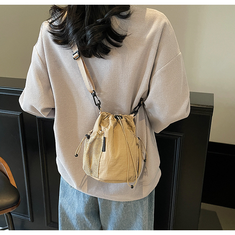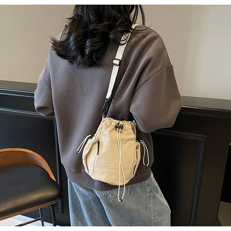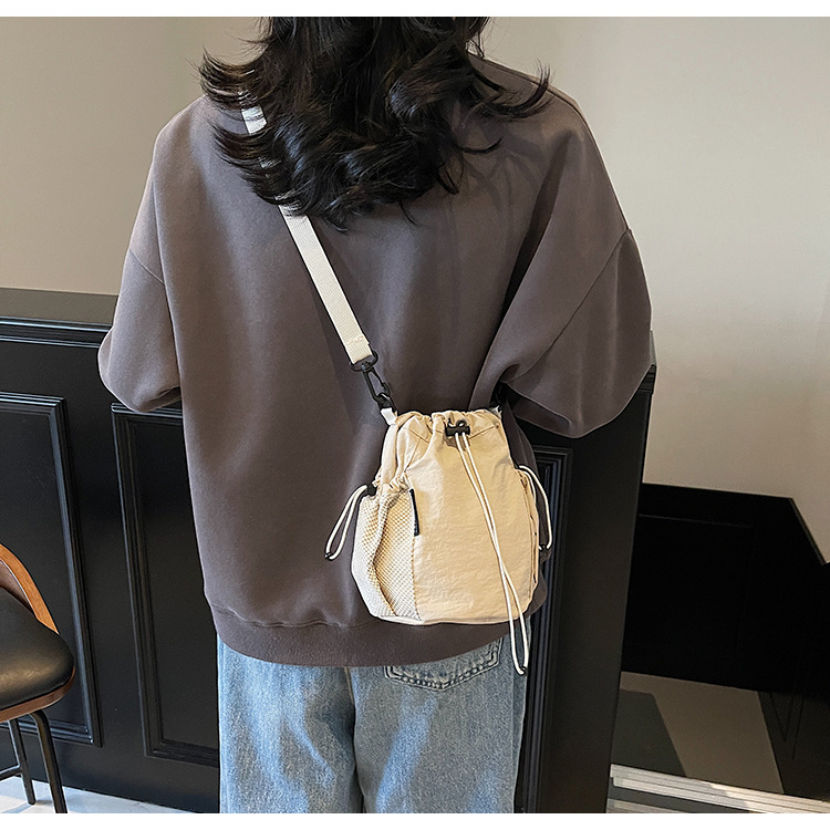 드로우 스트링 거들 새로운 캐주얼 심플 2025 유행 나일론 통근 유행 한국식 크로스 바디 버킷 숄더 백