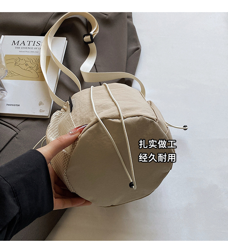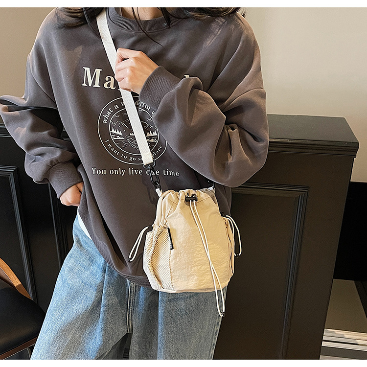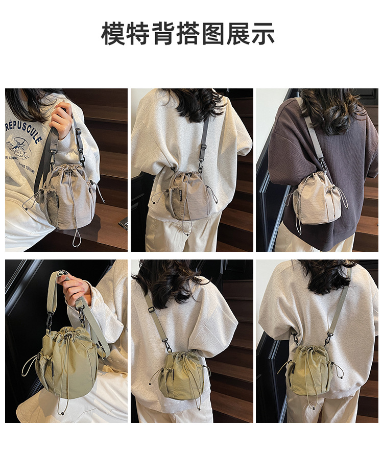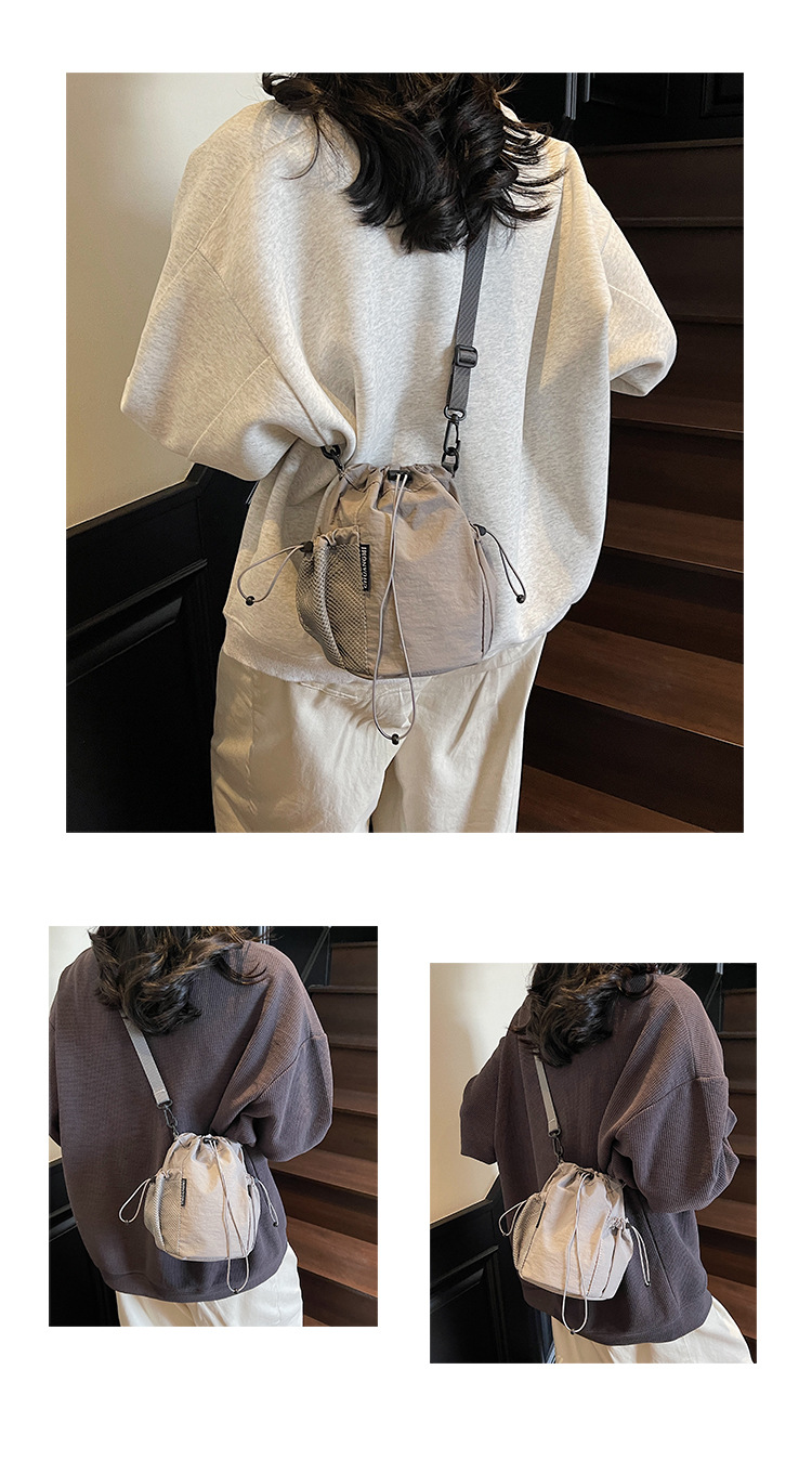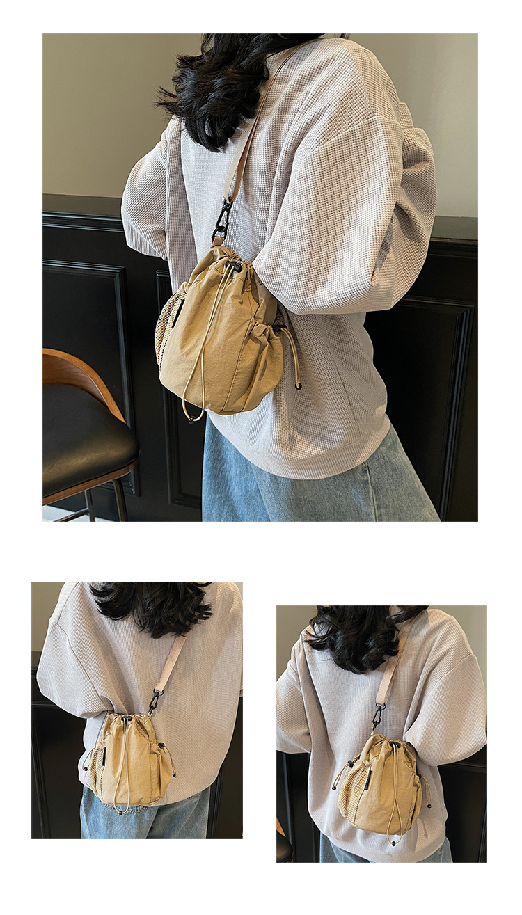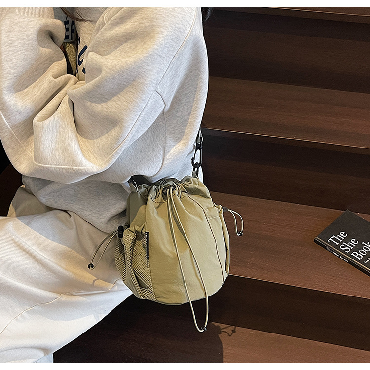 드로우 스트링 거들 새로운 캐주얼 심플 2025 유행 나일론 통근 유행 한국식 크로스 바디 버킷 숄더 백스토어 가기