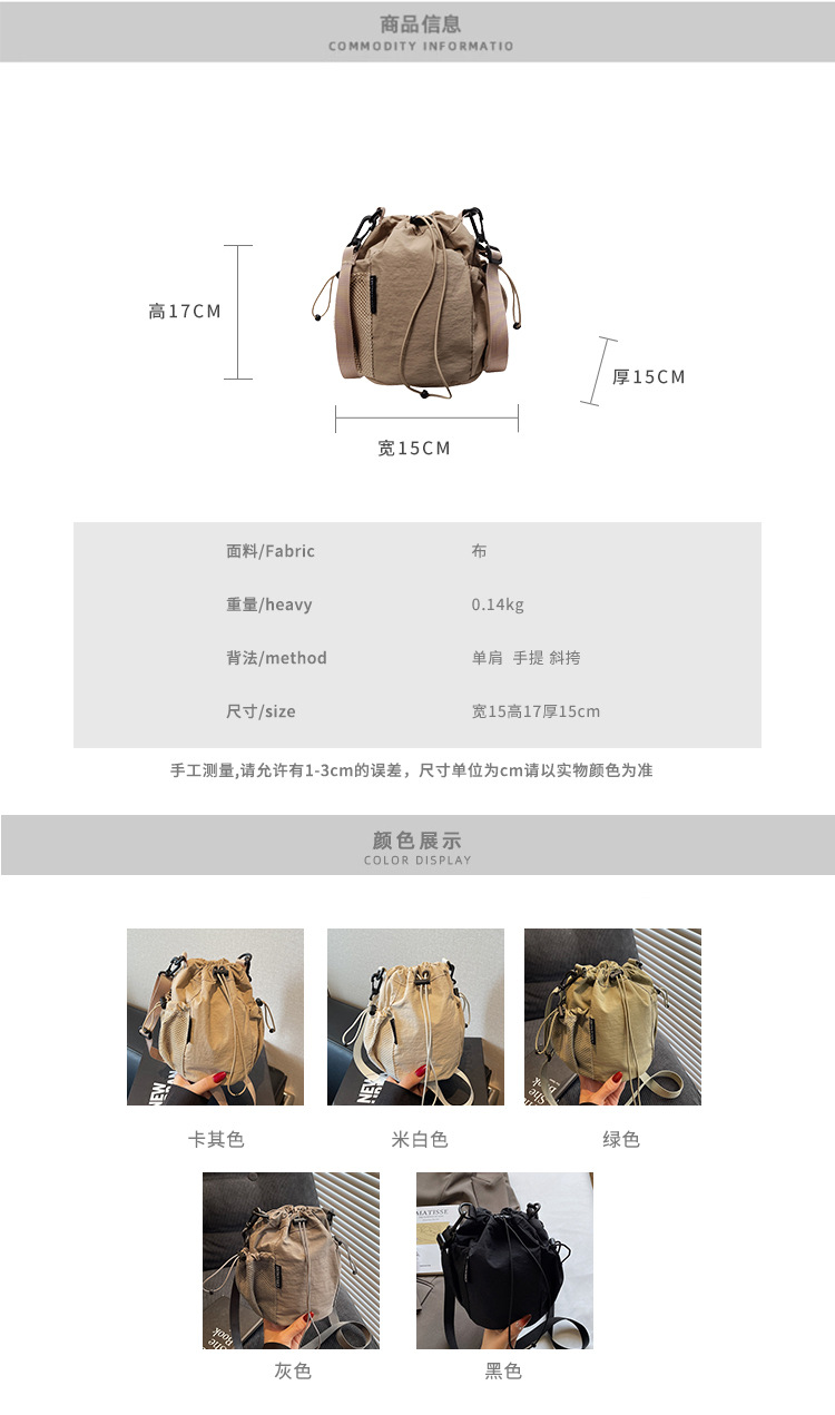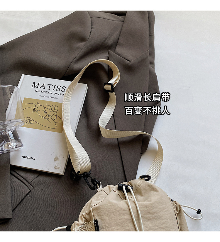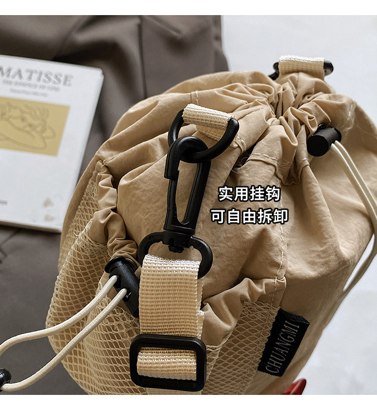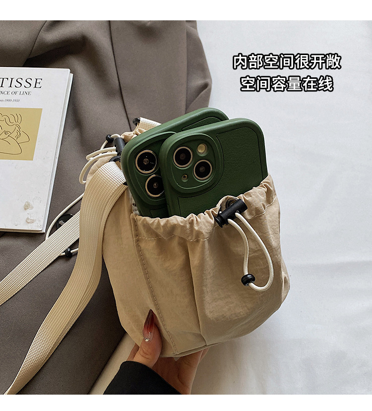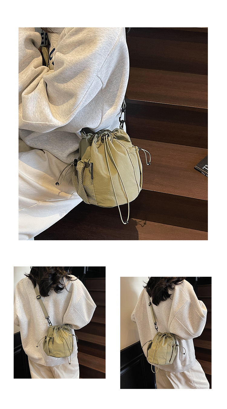 드로우 스트링 거들 새로운 캐주얼 심플 2025 유행 나일론 통근 유행 한국식 크로스 바디 버킷 숄더 백스토어 가기