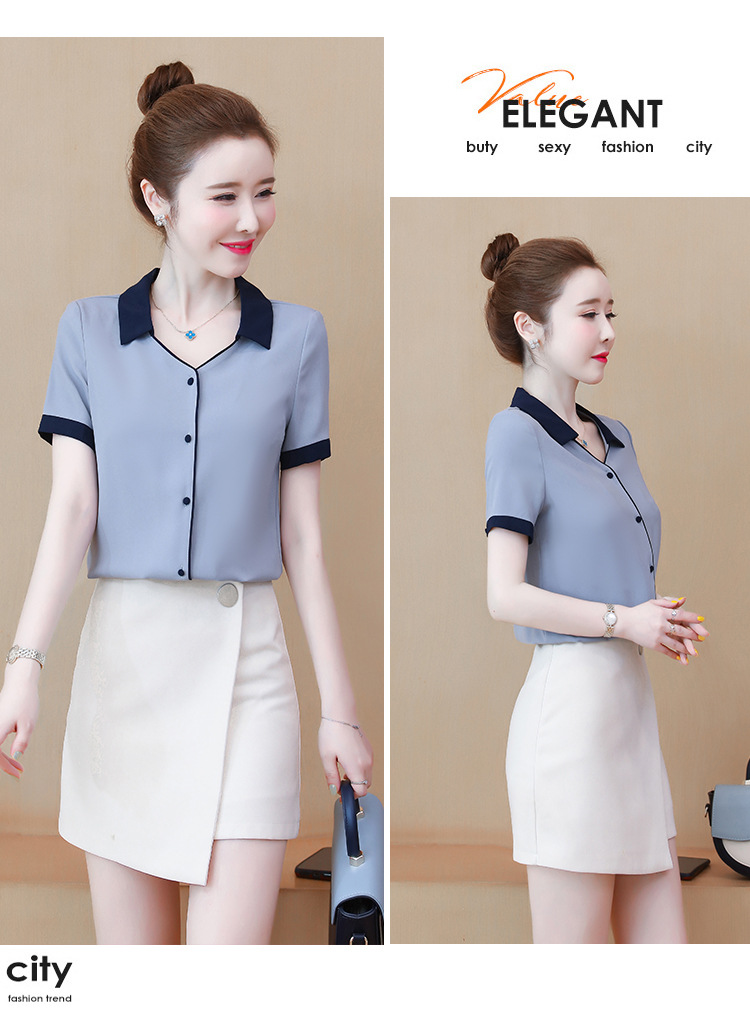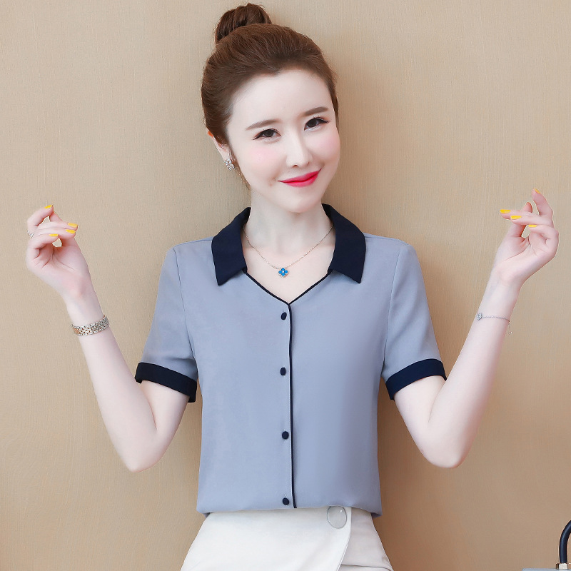 여성용 셔츠 2025 여름 새로운 디자인 틈새 복고풍 홍콩 스타일 반팔 쉬폰 셔츠 여성용 루즈 탑
