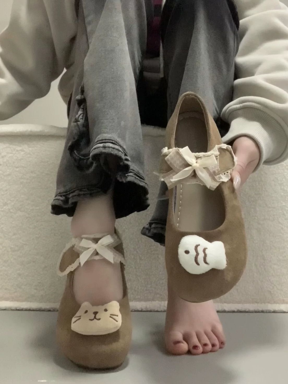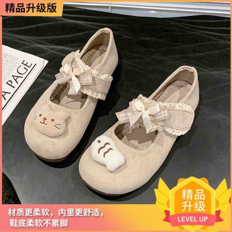 플랫 라운드 발가락 메리 제인 신발 여성 2025 년 봄과 여름 새로운 프랑스 스타일 부드러운 버칸 신발 스커트 올 매치 싱글 레이어 신발스토어 가기