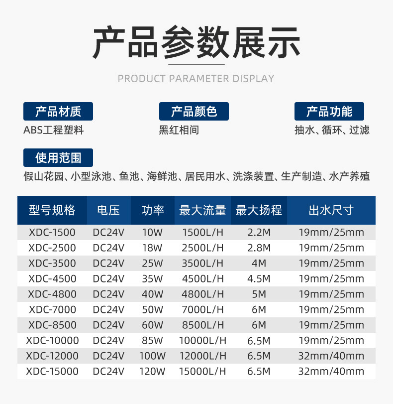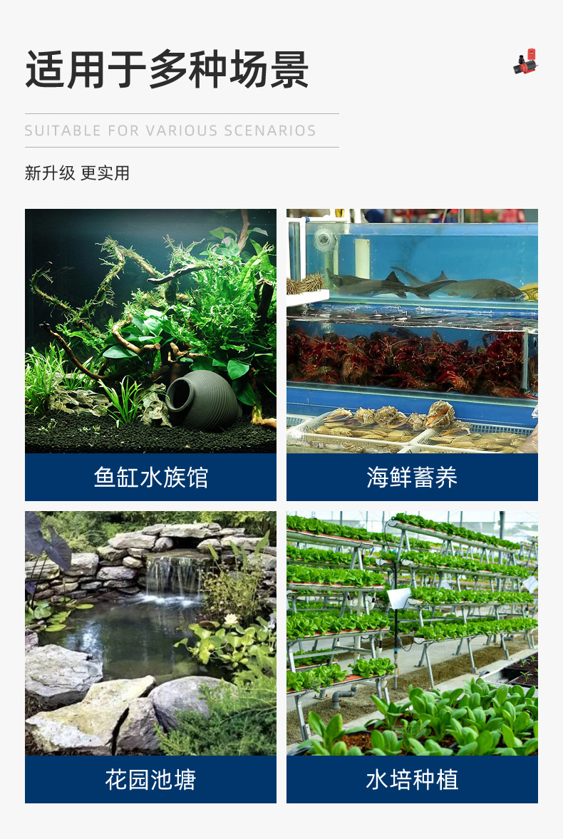 跨境可调节鱼缸水泵 鱼池循环大流量抽水泵 节能直流变频潜水泵