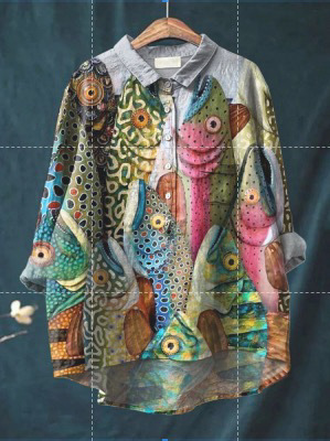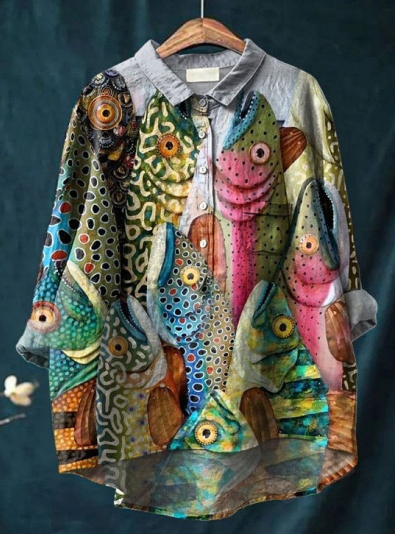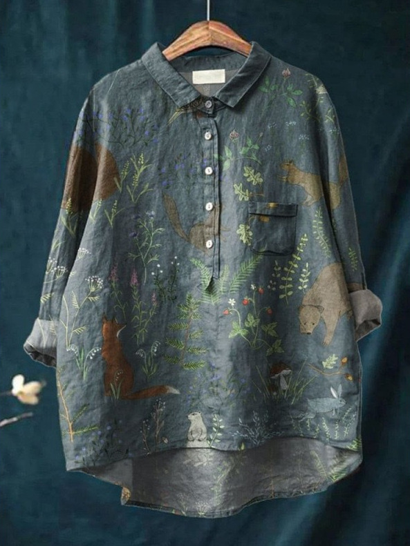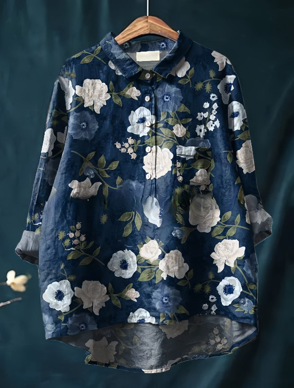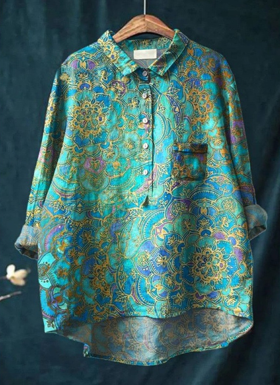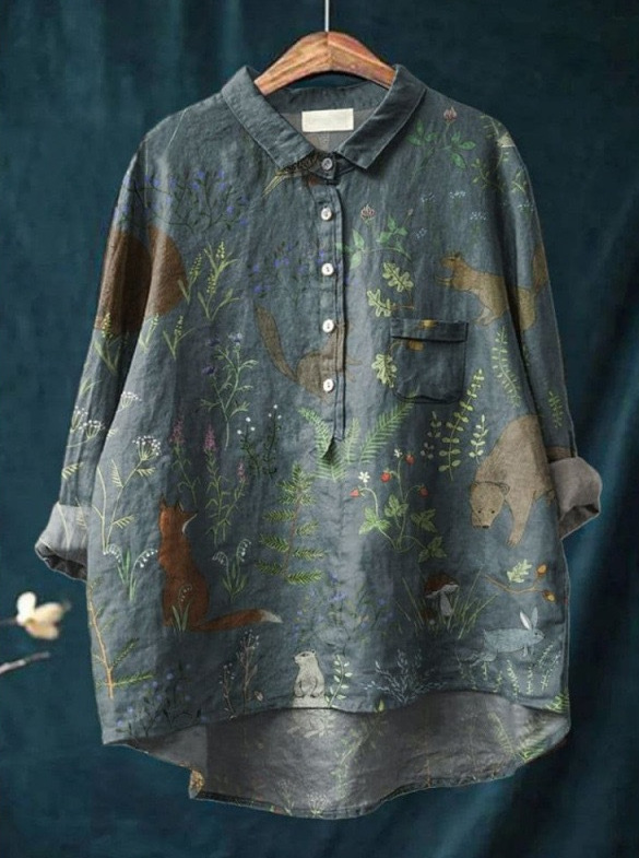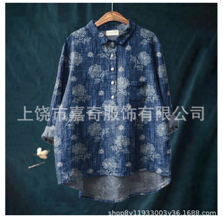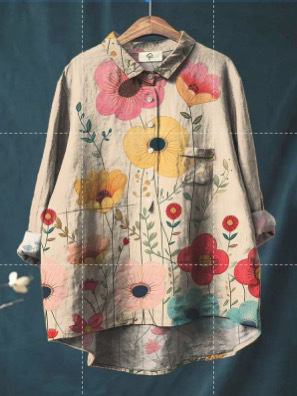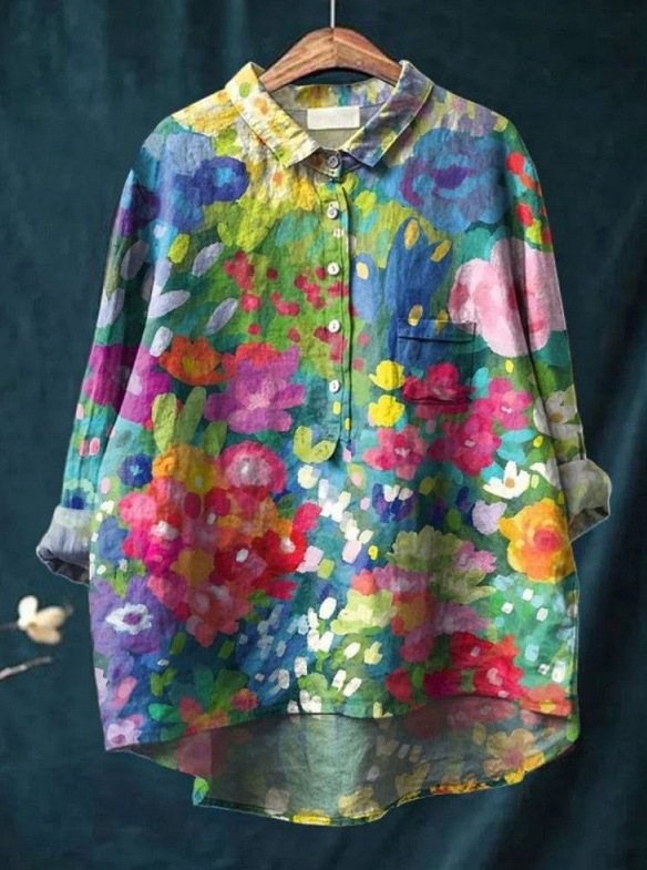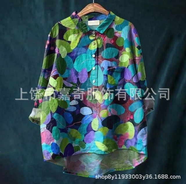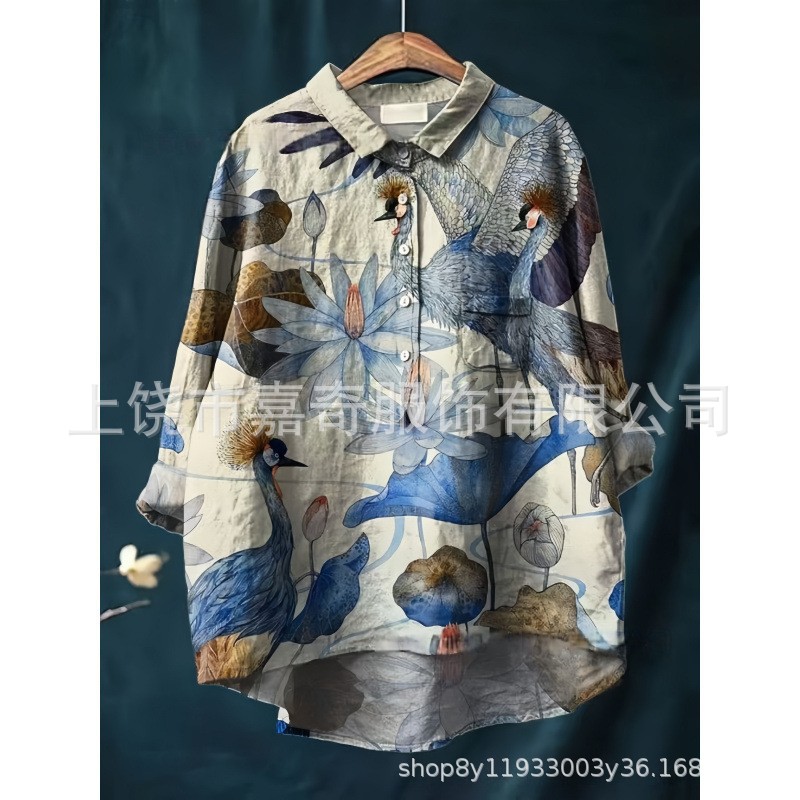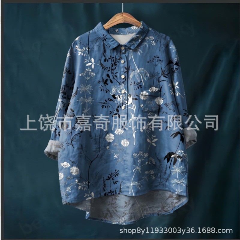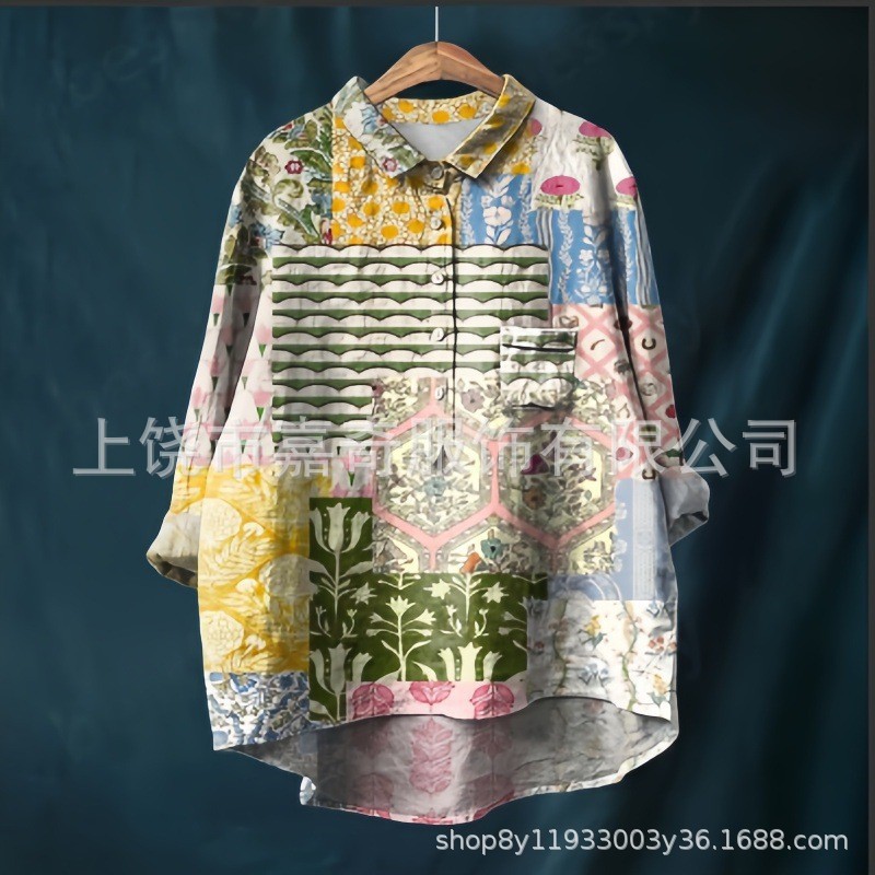 2025 새로운 인쇄 셔츠 캐주얼 루즈 탑 빈티지 틈새스토어 가기