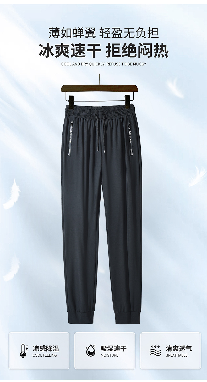 아이스 실크 캐주얼 바지 남자 바지 여름 얇은 다리 느슨한 플러스 사이즈 탄성 빠른 건조 스포츠 바지 바지 남자 바지