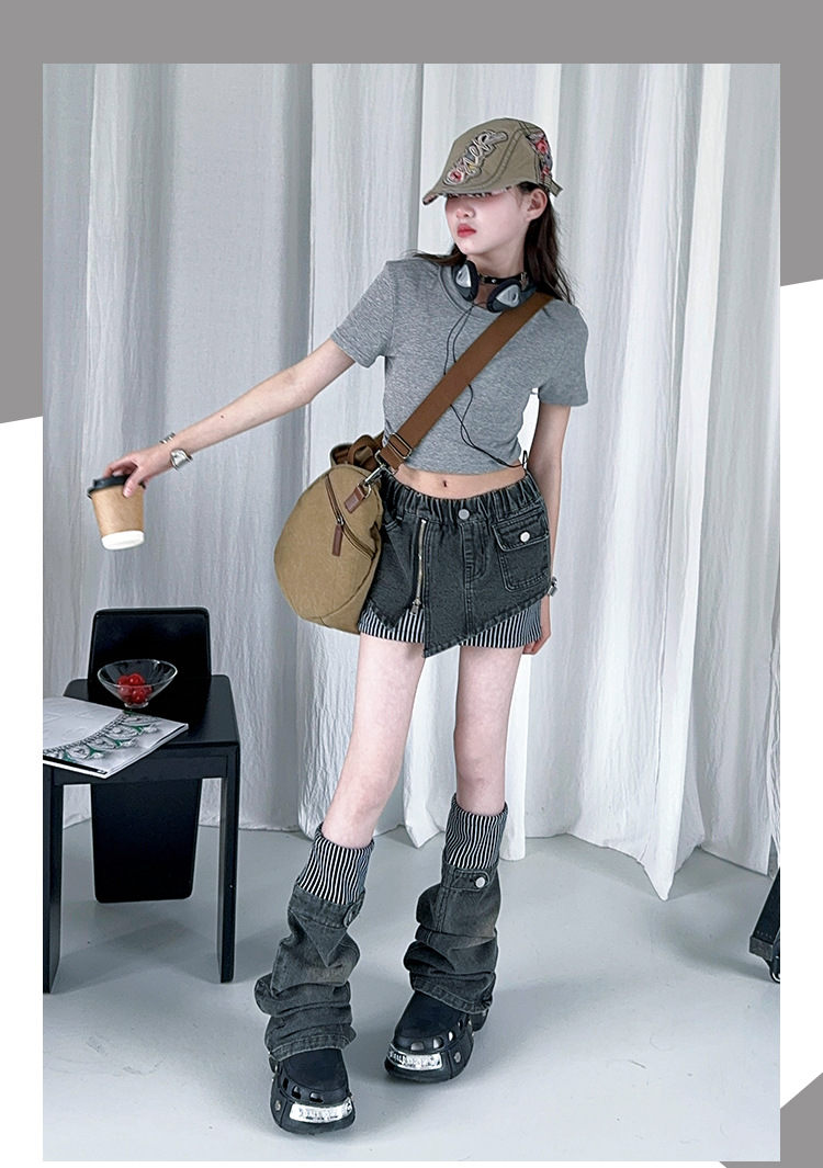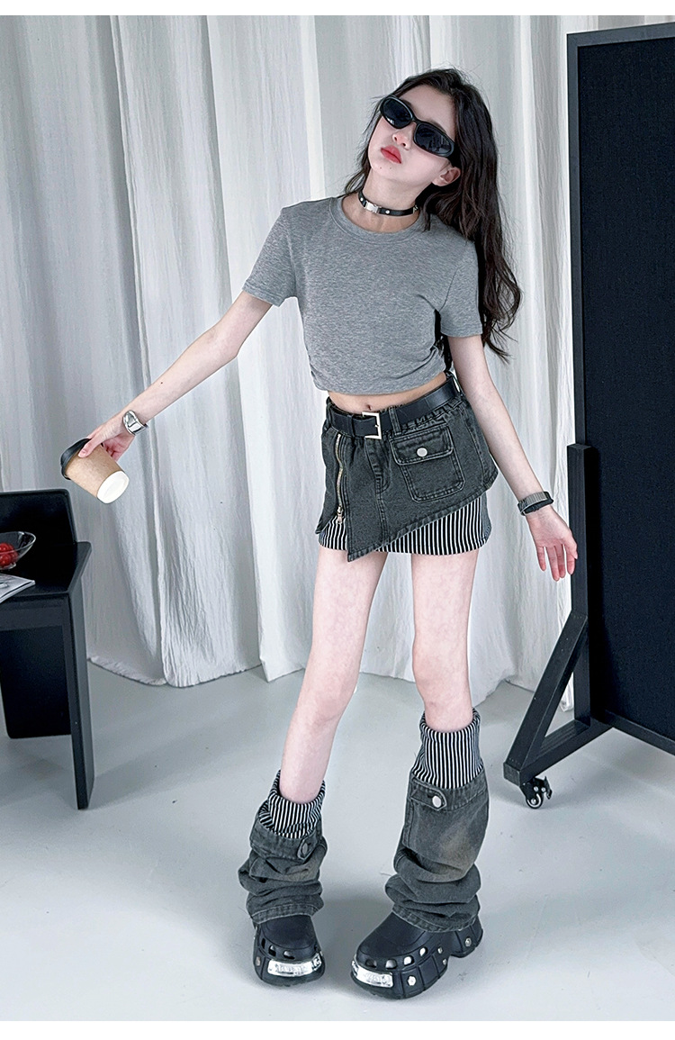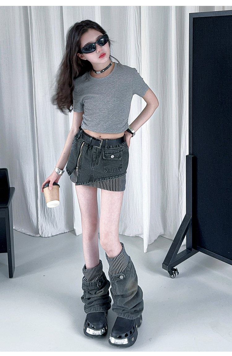 국경 간 소녀 여름 세트 2025 새로운 큰 어린이 패션 힙합 스커트 발 커버 미국 빈티지 커버스토어 가기