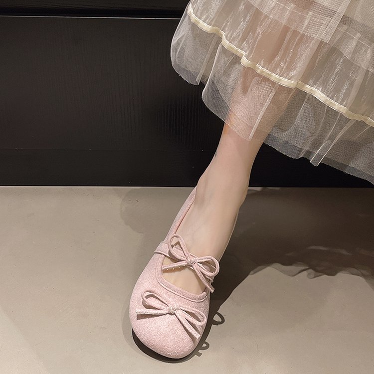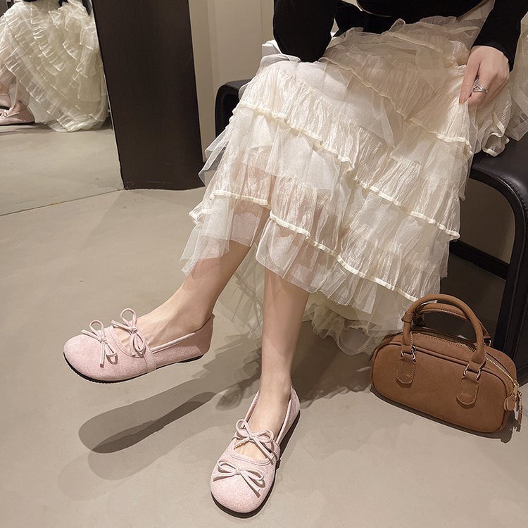 부드러운 요정 스타일 메리 제인 신발 2025 새로운 프렌치 슈즈 스커트와 매치하는 리본매듭 라운드 투 펌프 이브닝 슈즈