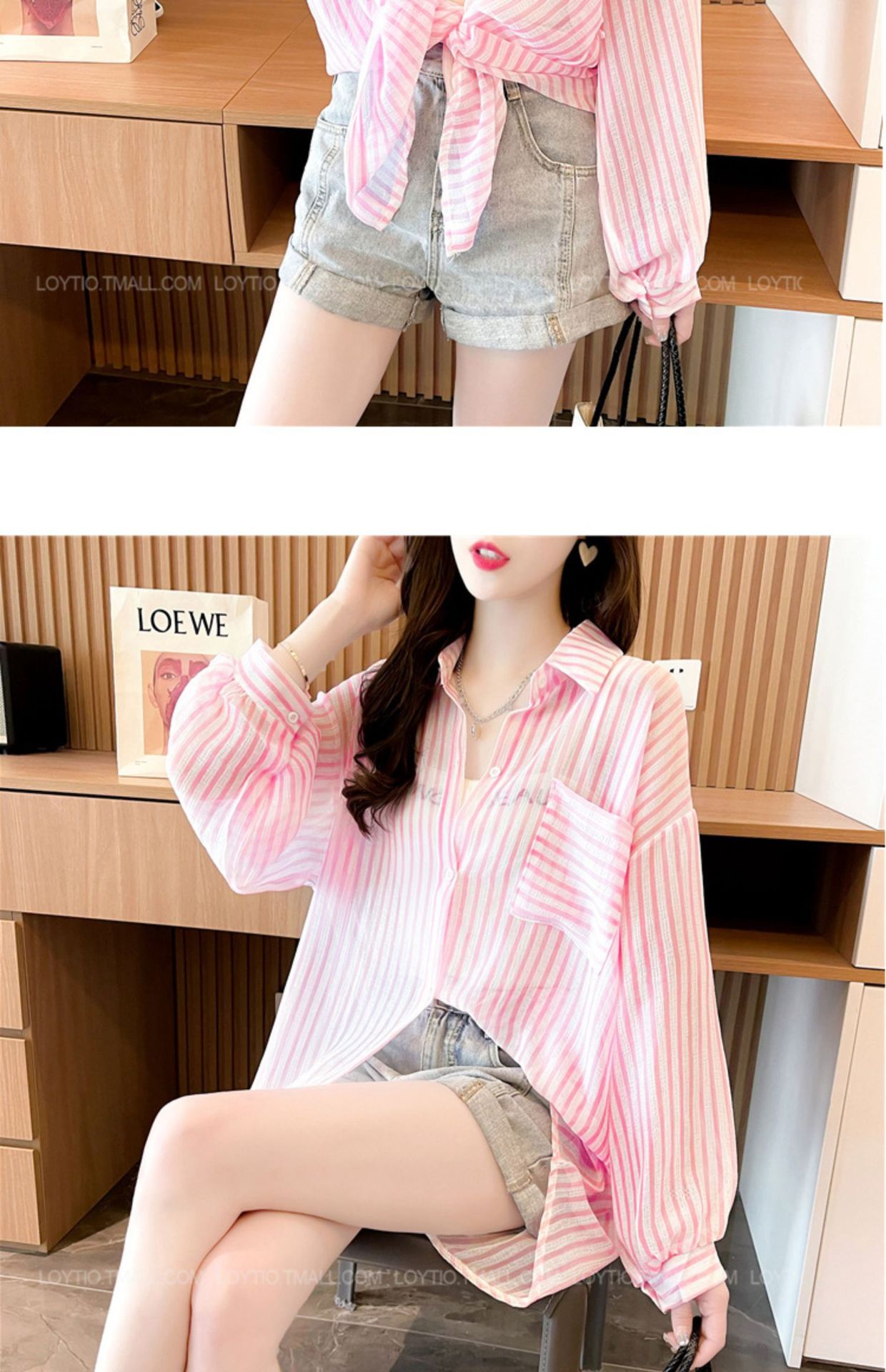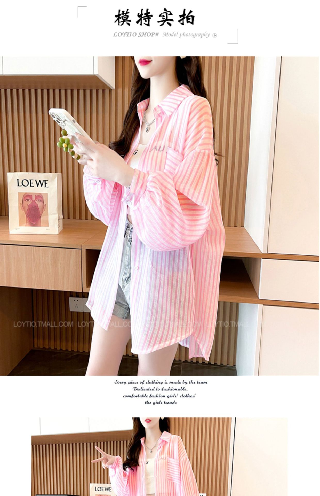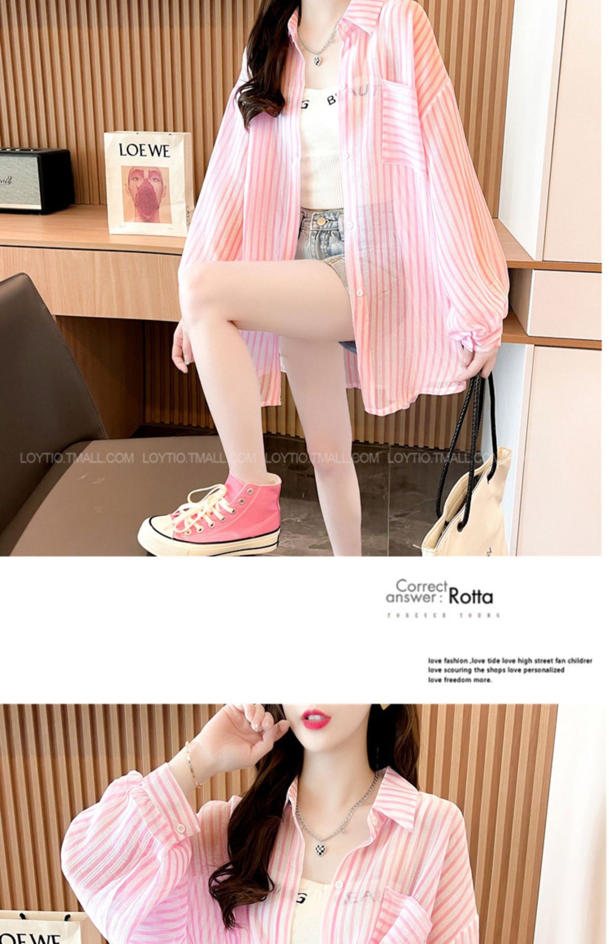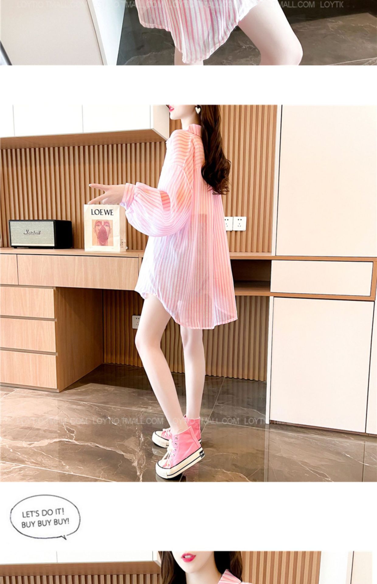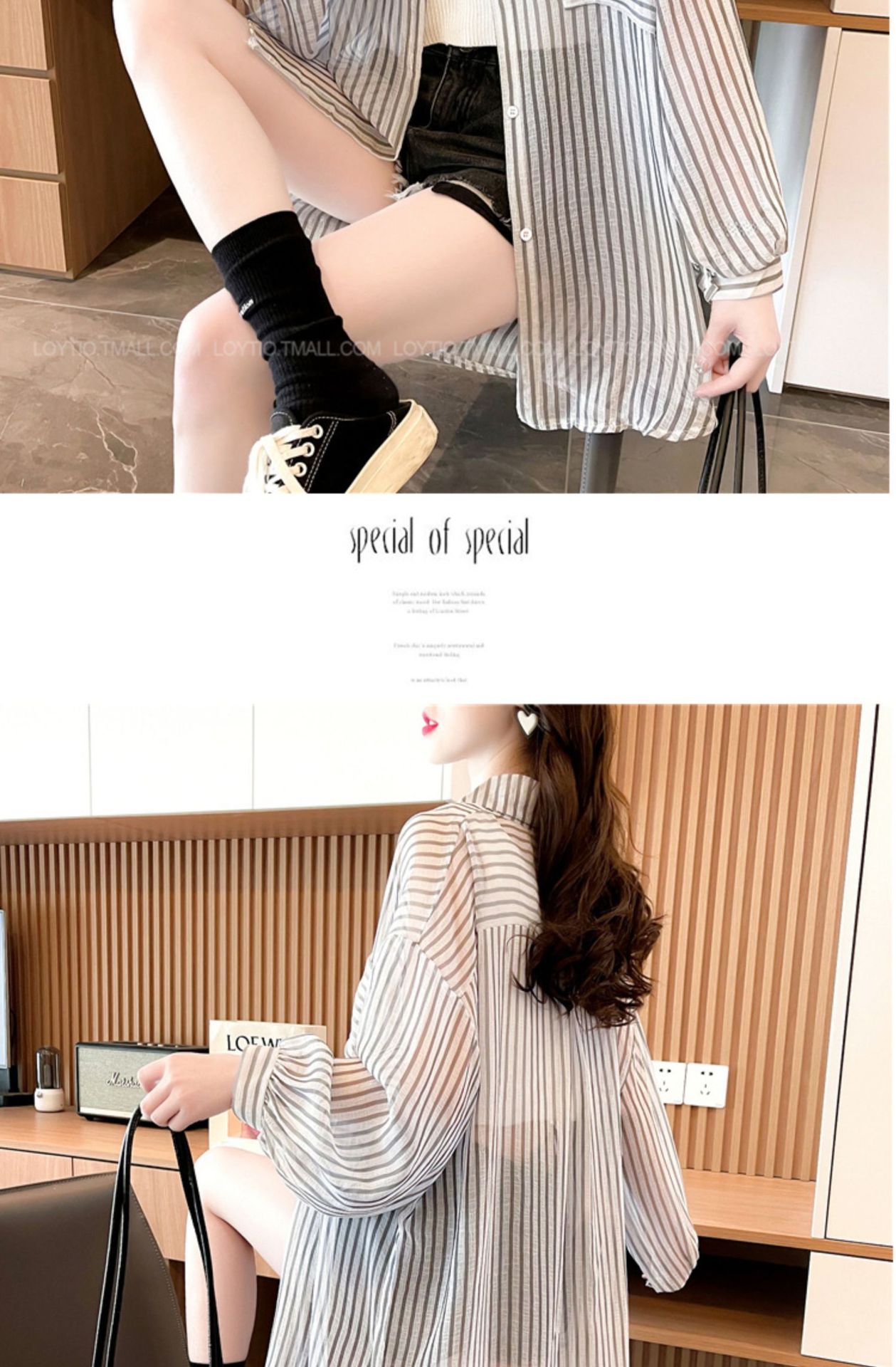 시폰 스트라이프 긴소매 중장 태양 보호 의류 여성 봄 가을 플러스 사이즈 셔츠 코트 한국식 루즈 패션 올매치스토어 가기
