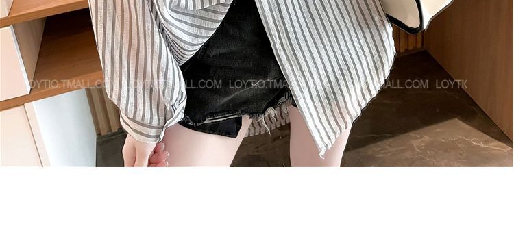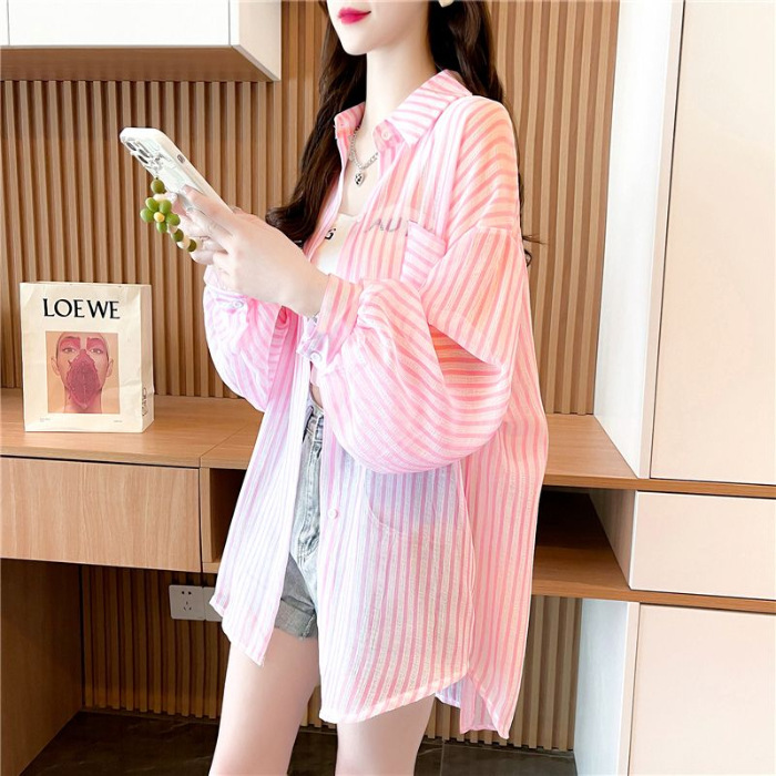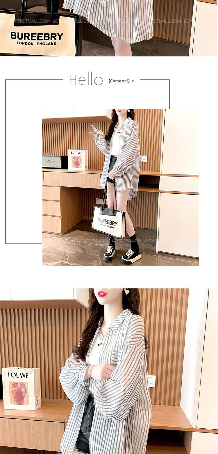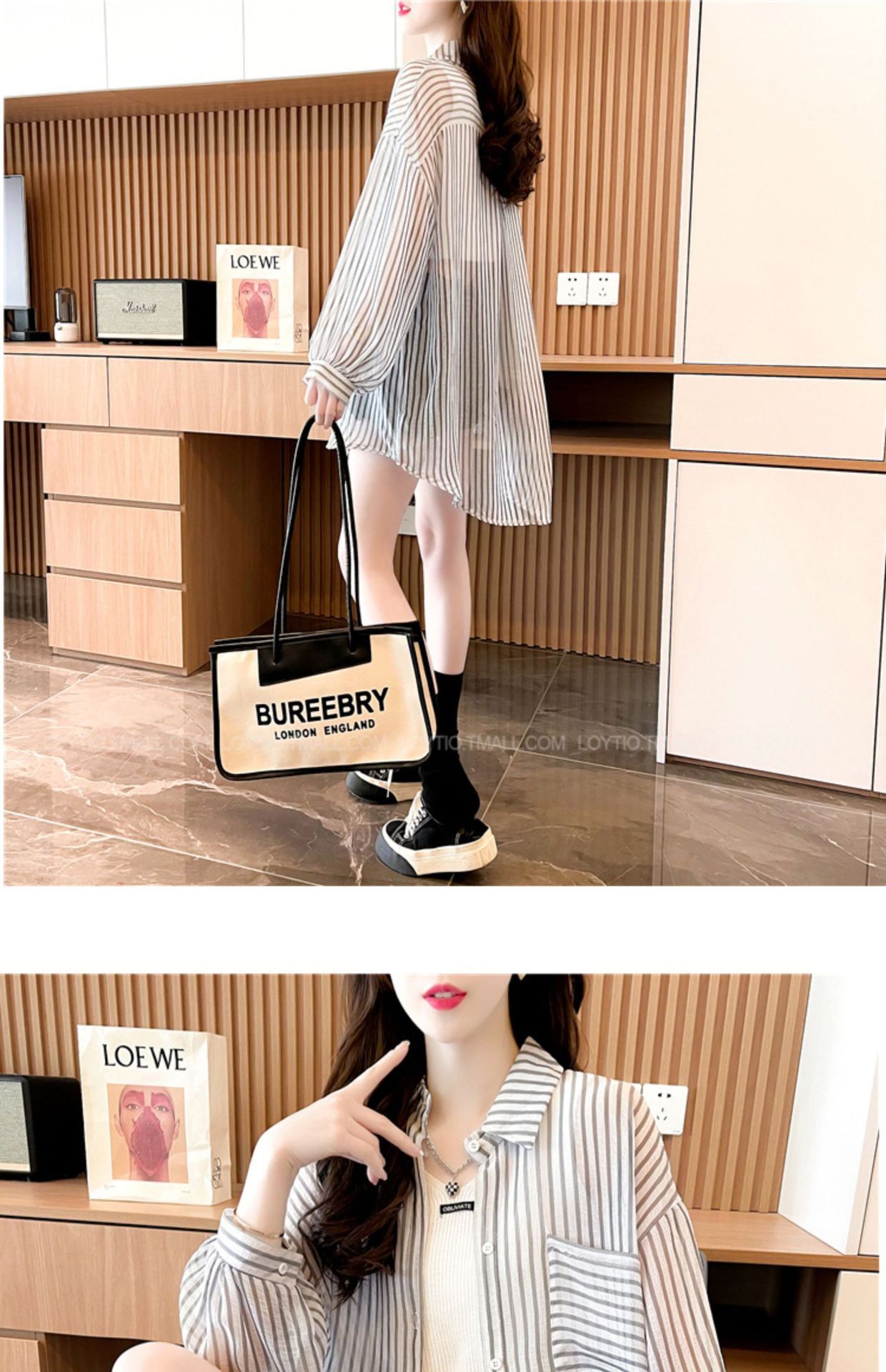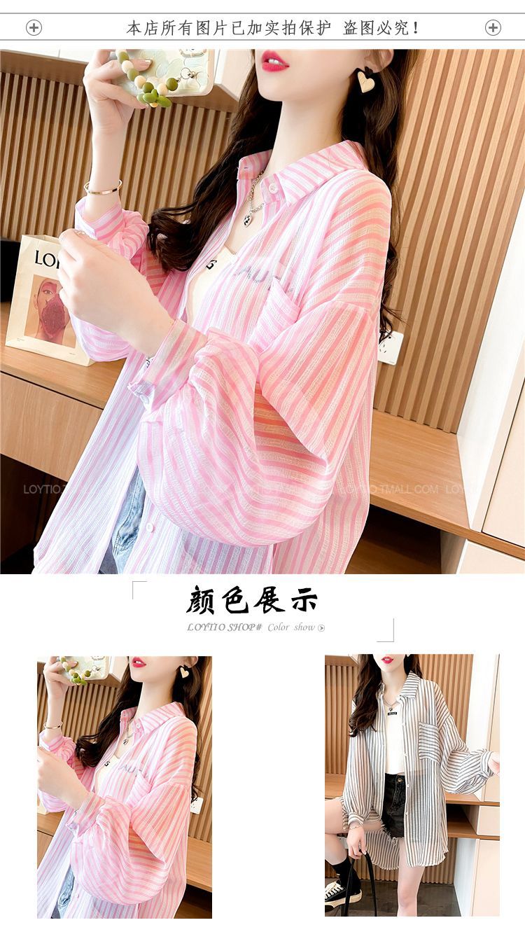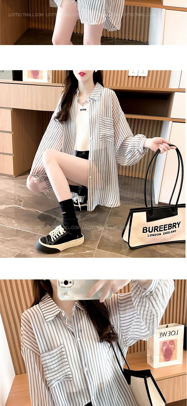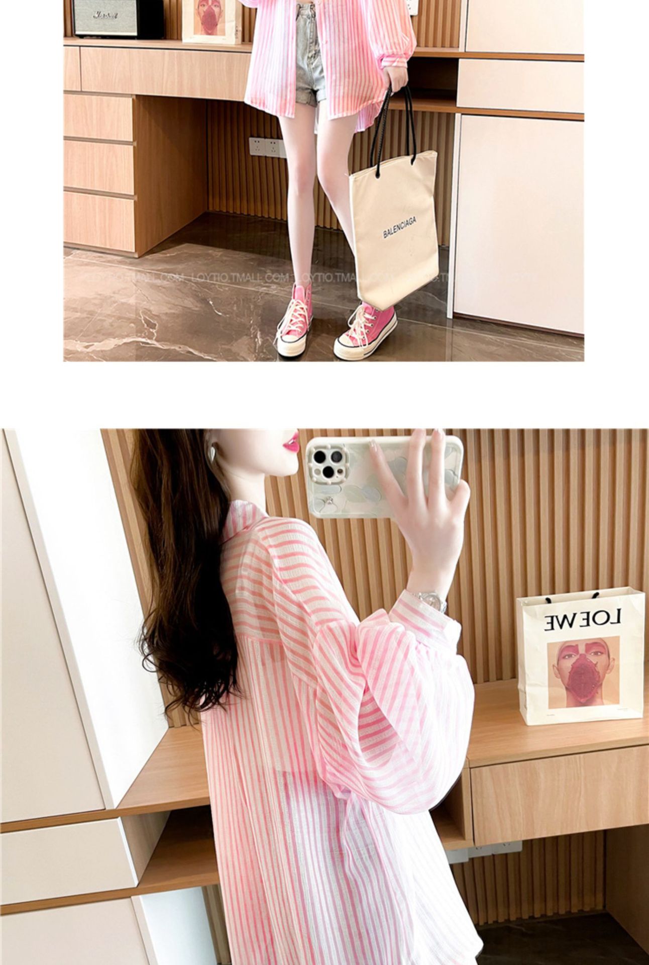 시폰 스트라이프 긴소매 중장 태양 보호 의류 여성 봄 가을 플러스 사이즈 셔츠 코트 한국식 루즈 패션 올매치스토어 가기