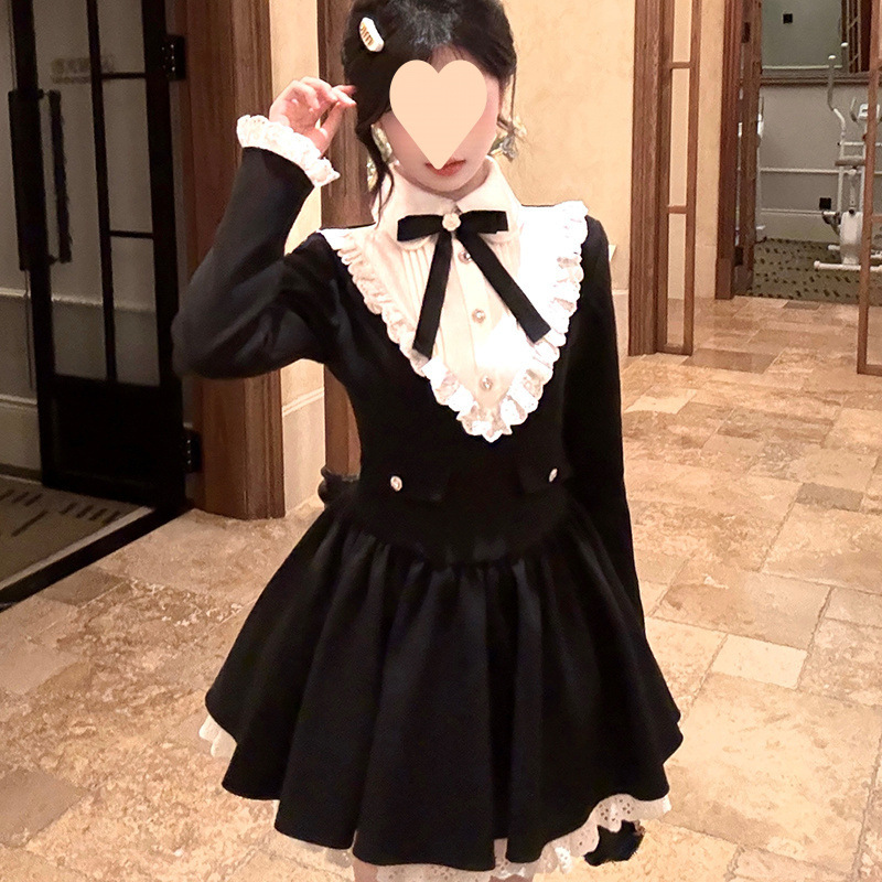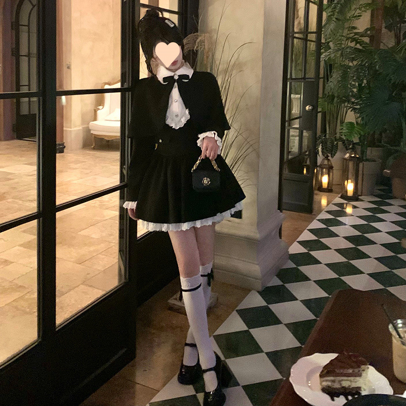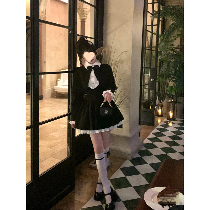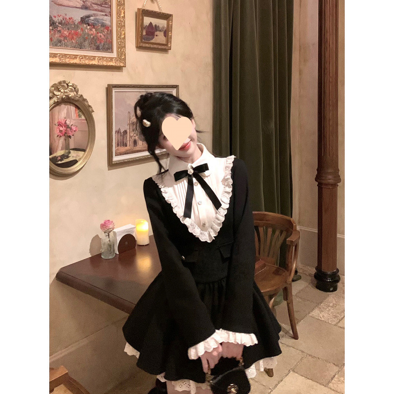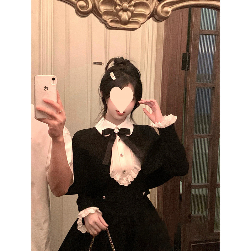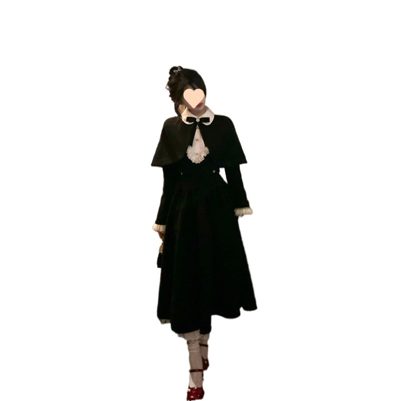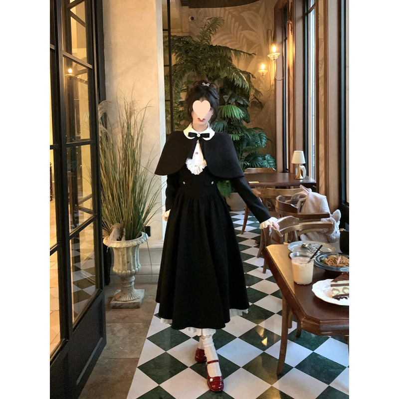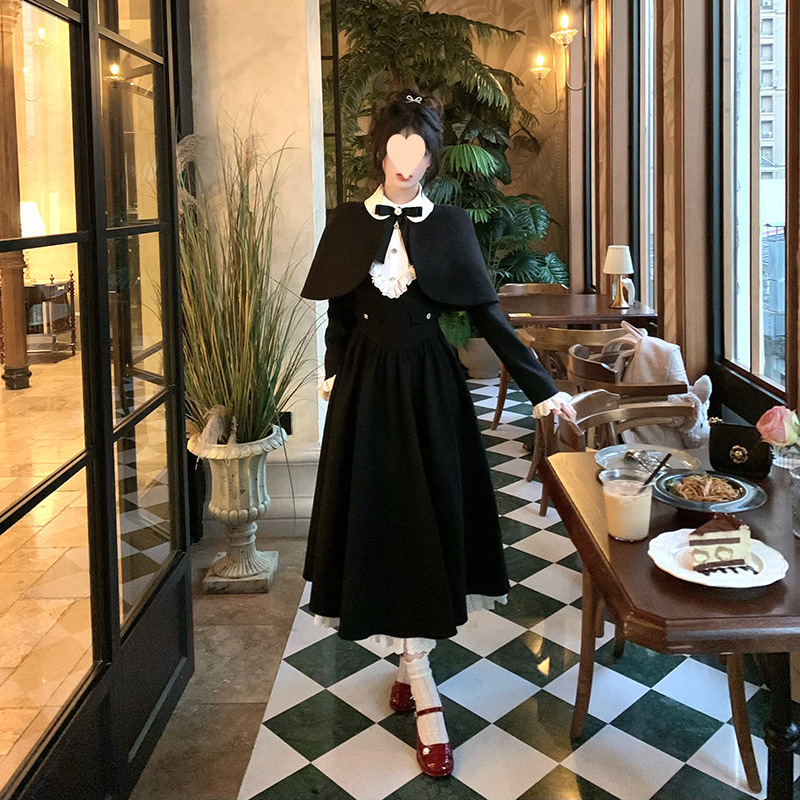 Yuye Poetry 프렌치 레트로 젠틀 골드 스타일 여성용 허리 슬리밍 퓨어 러스 울 숄 드레스 투피스 트렌디 세트스토어 가기