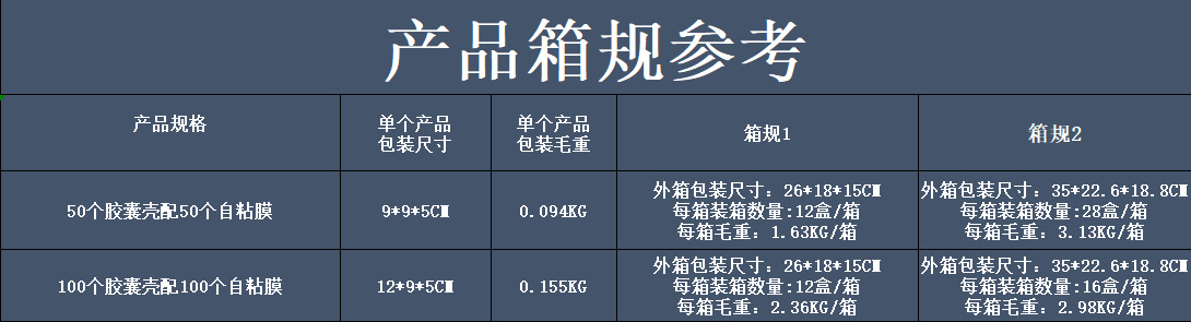 • 50개의 캡슐 껍질과 50개의 자체 접착 필름(모델: Y258012-H50)